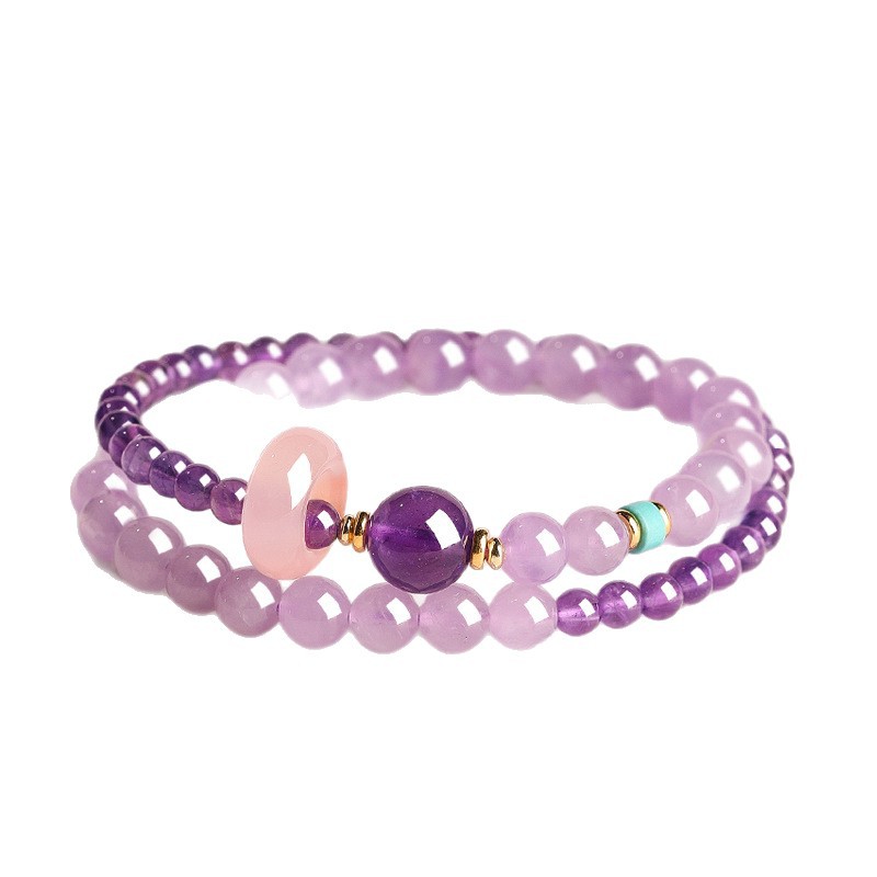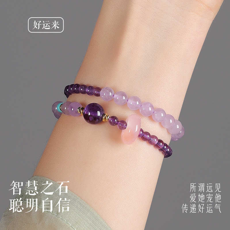 仿上岸紫水晶双圈手串女轻奢设计薰衣草叠戴手链好运寓意闺蜜礼物