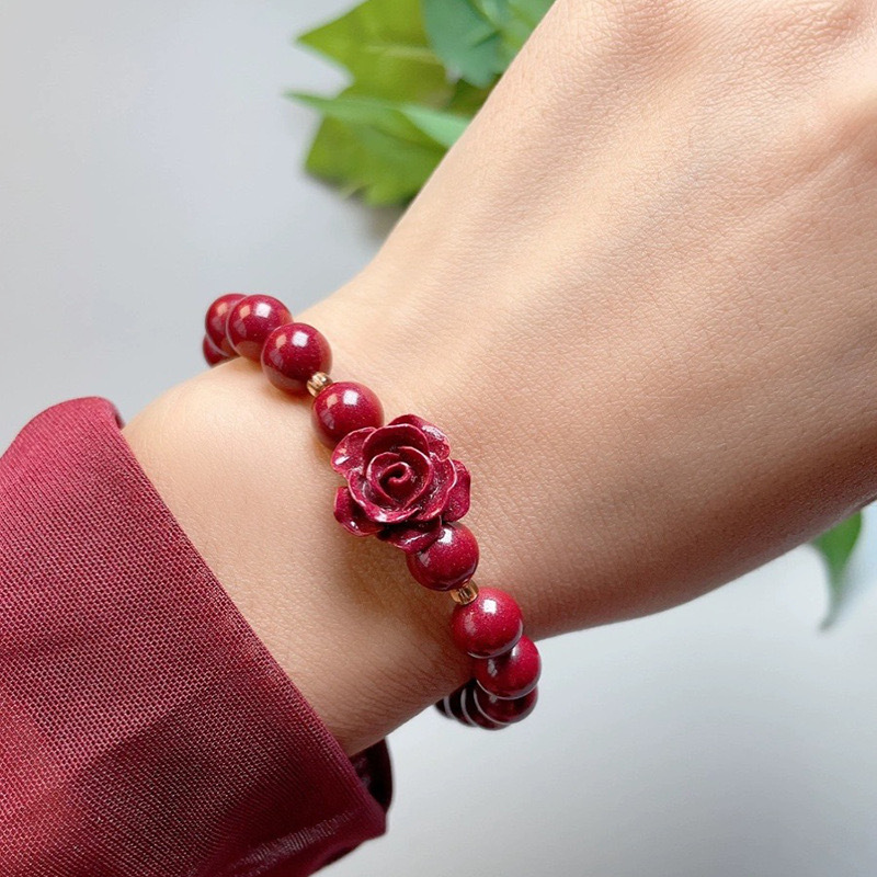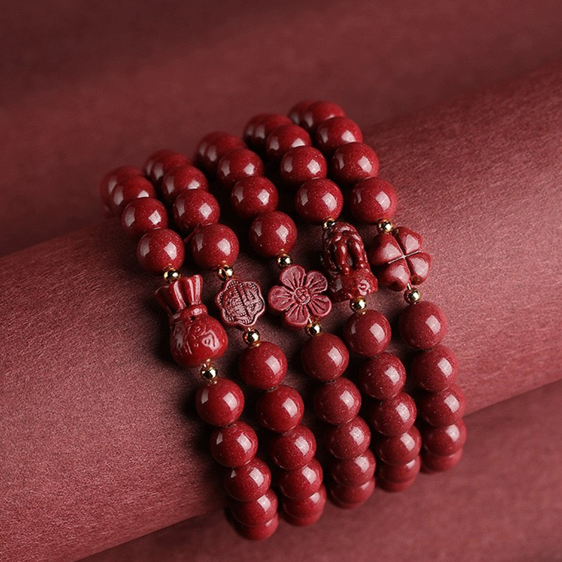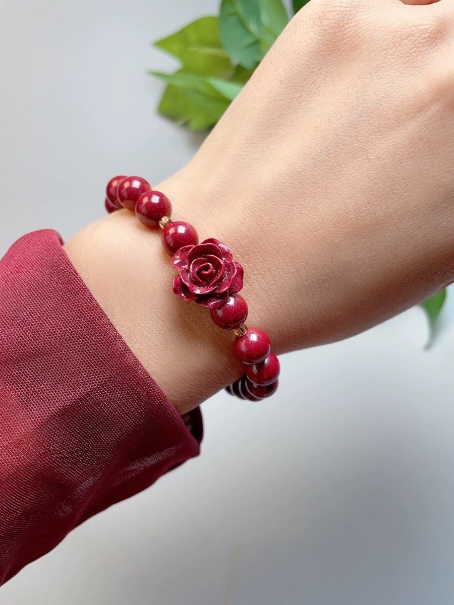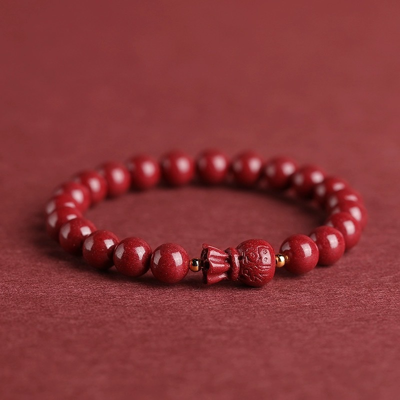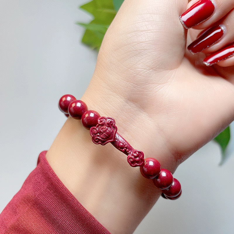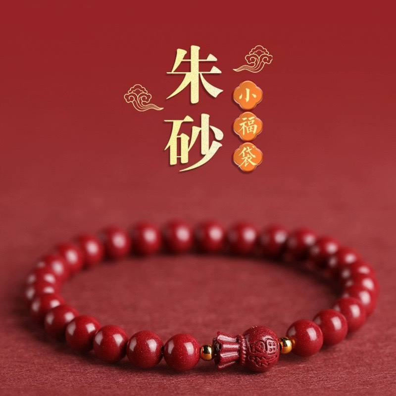 朱砂紫金砂本命年低含量朱砂手链钱袋玫瑰花小花貔貅手链如意手串