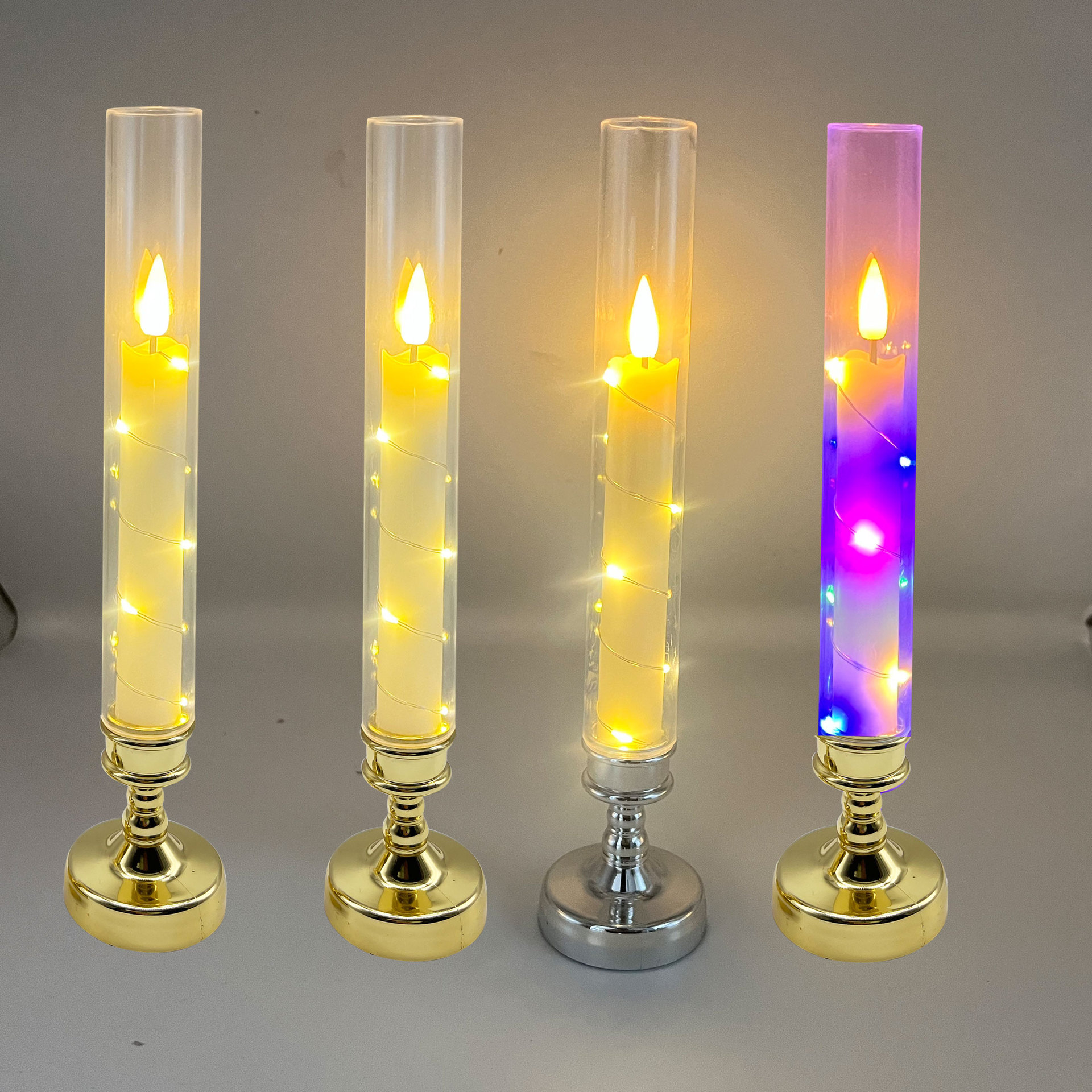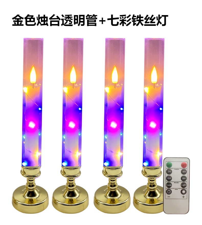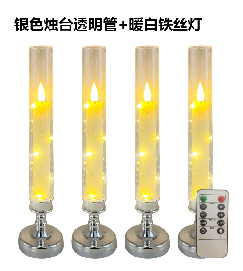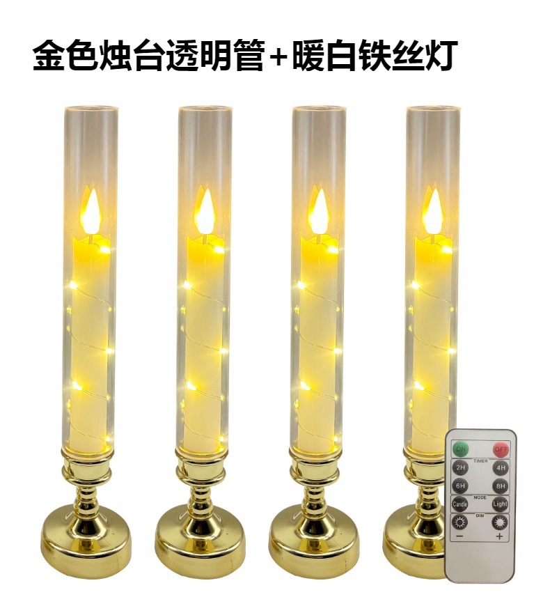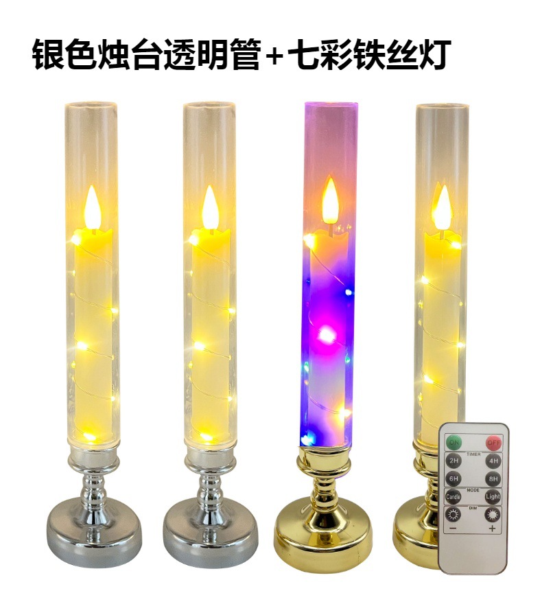 跨境新款烛台LED电子遥控蜡烛 烛光浪漫晚餐圣诞装饰仿真火焰杆蜡