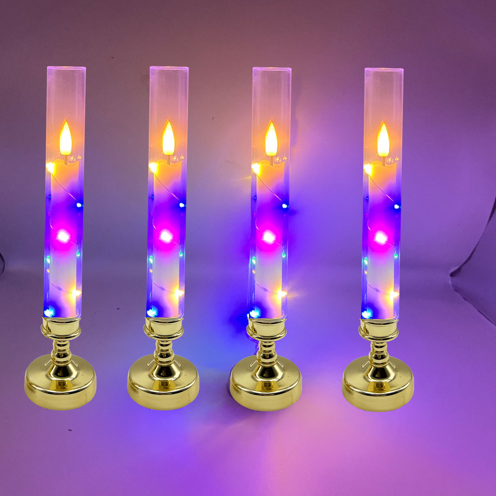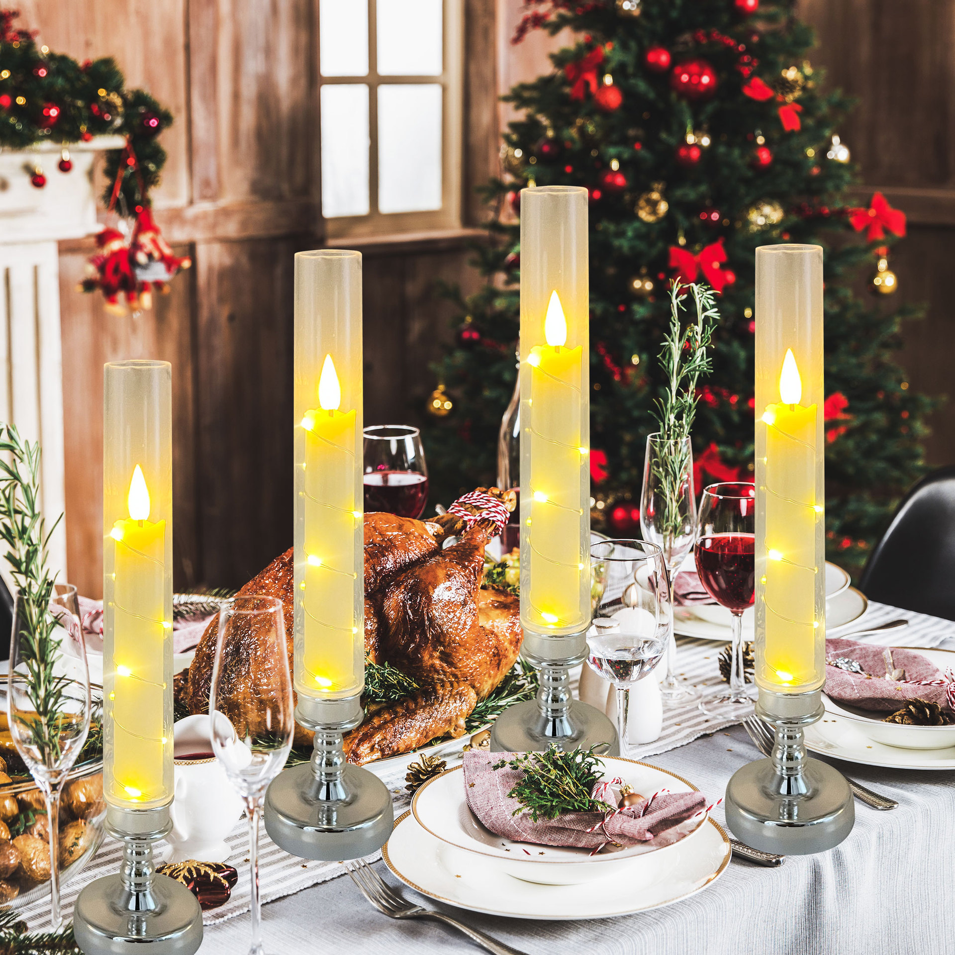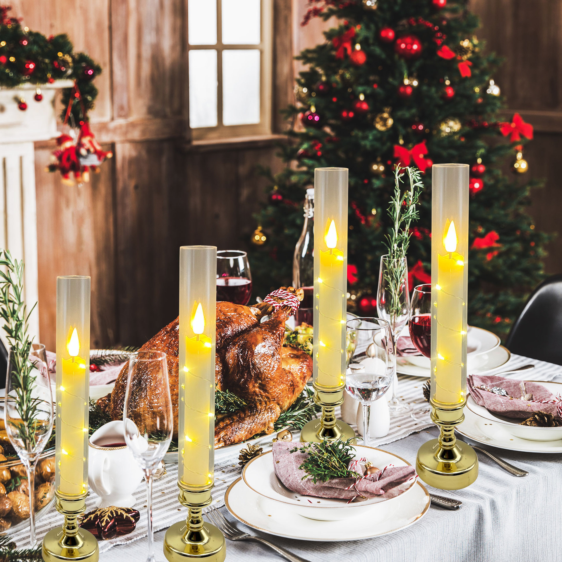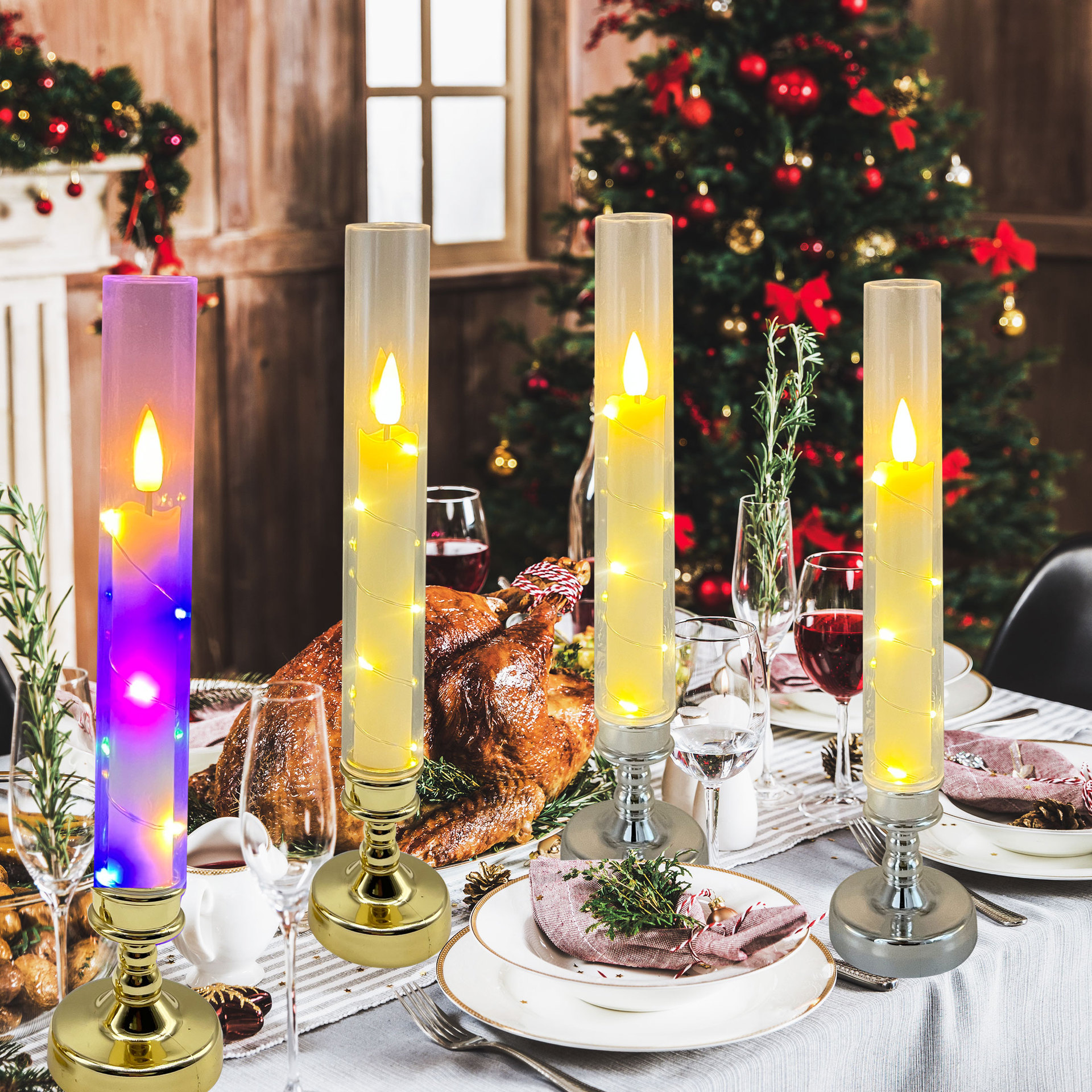 跨境新款烛台LED电子遥控蜡烛 烛光浪漫晚餐圣诞装饰仿真火焰杆蜡