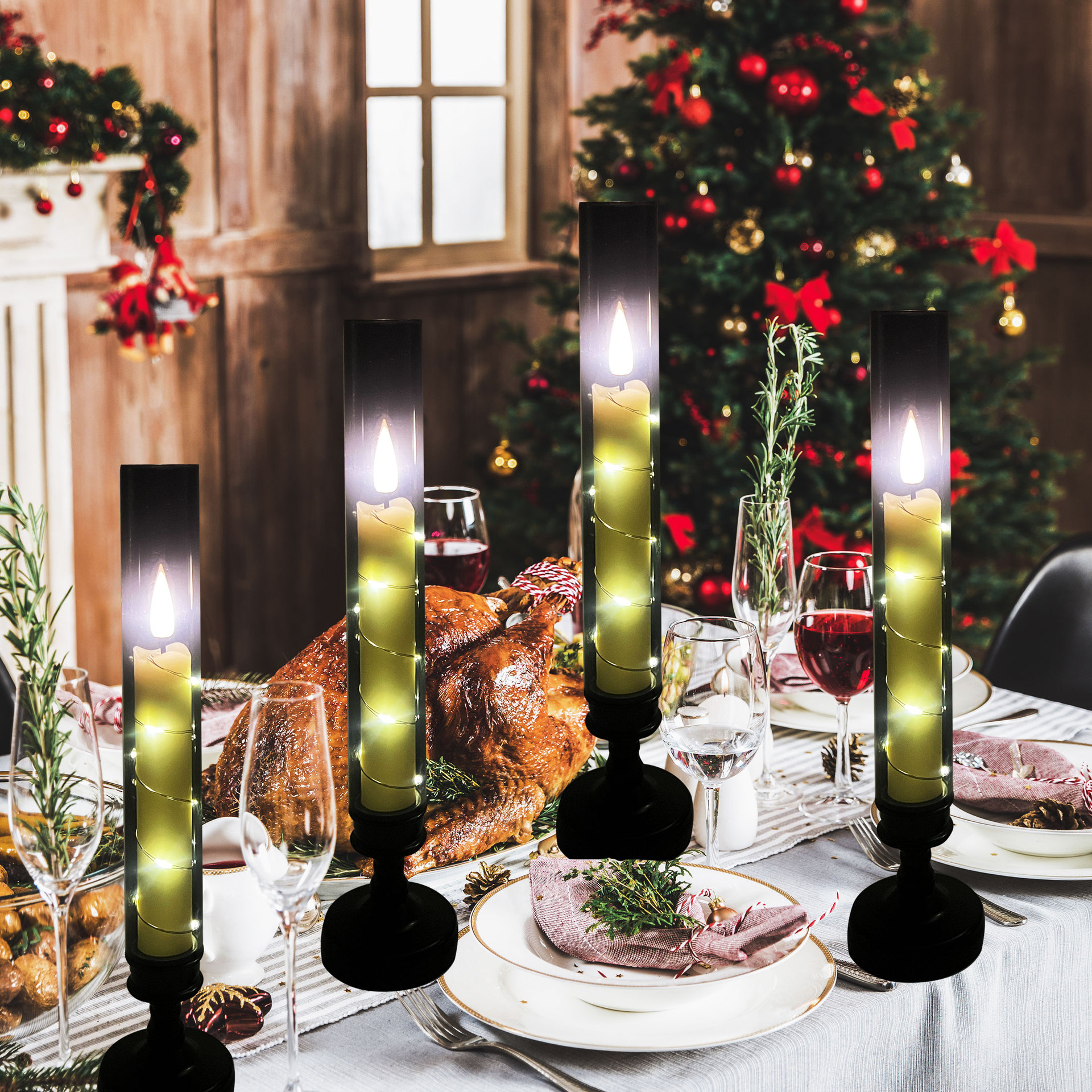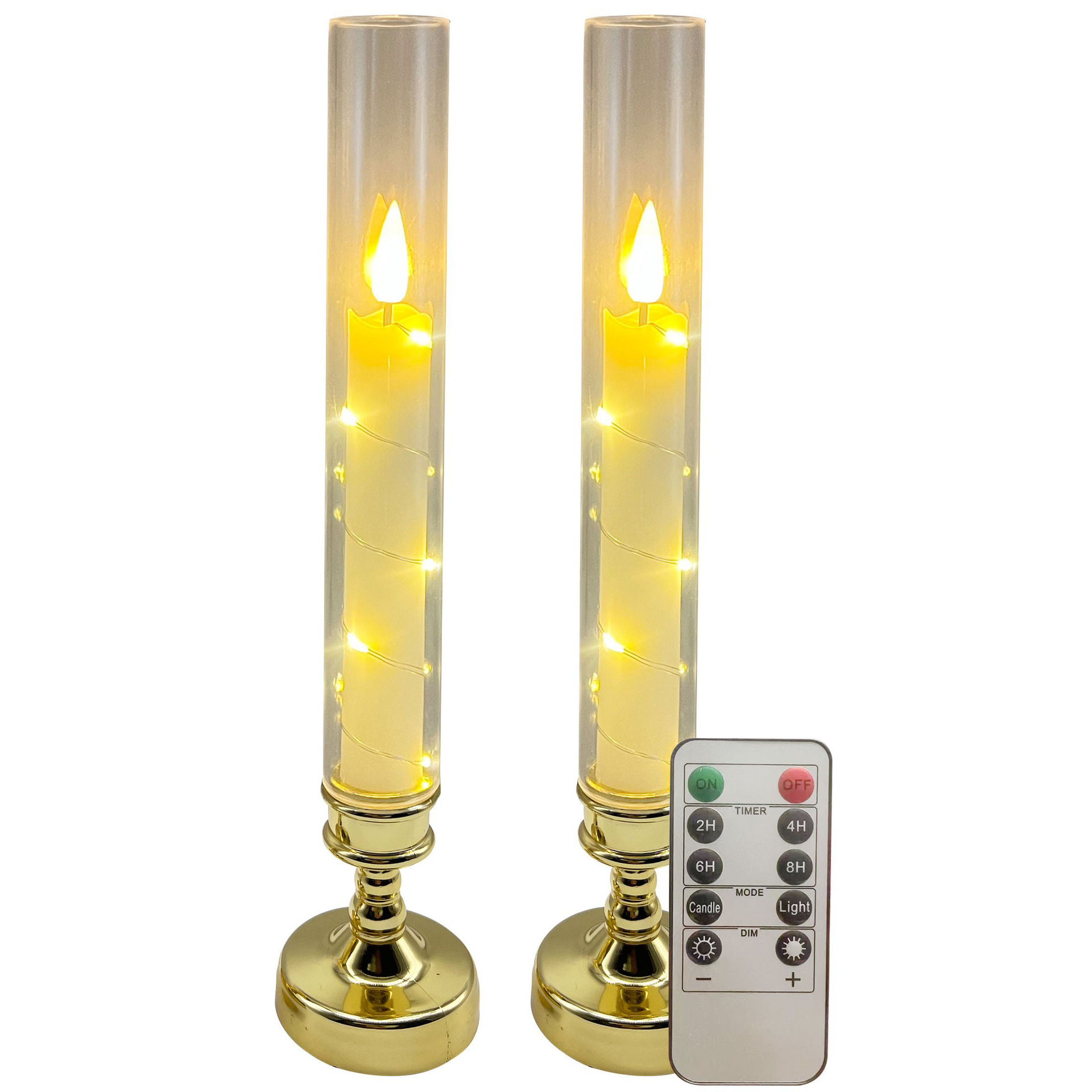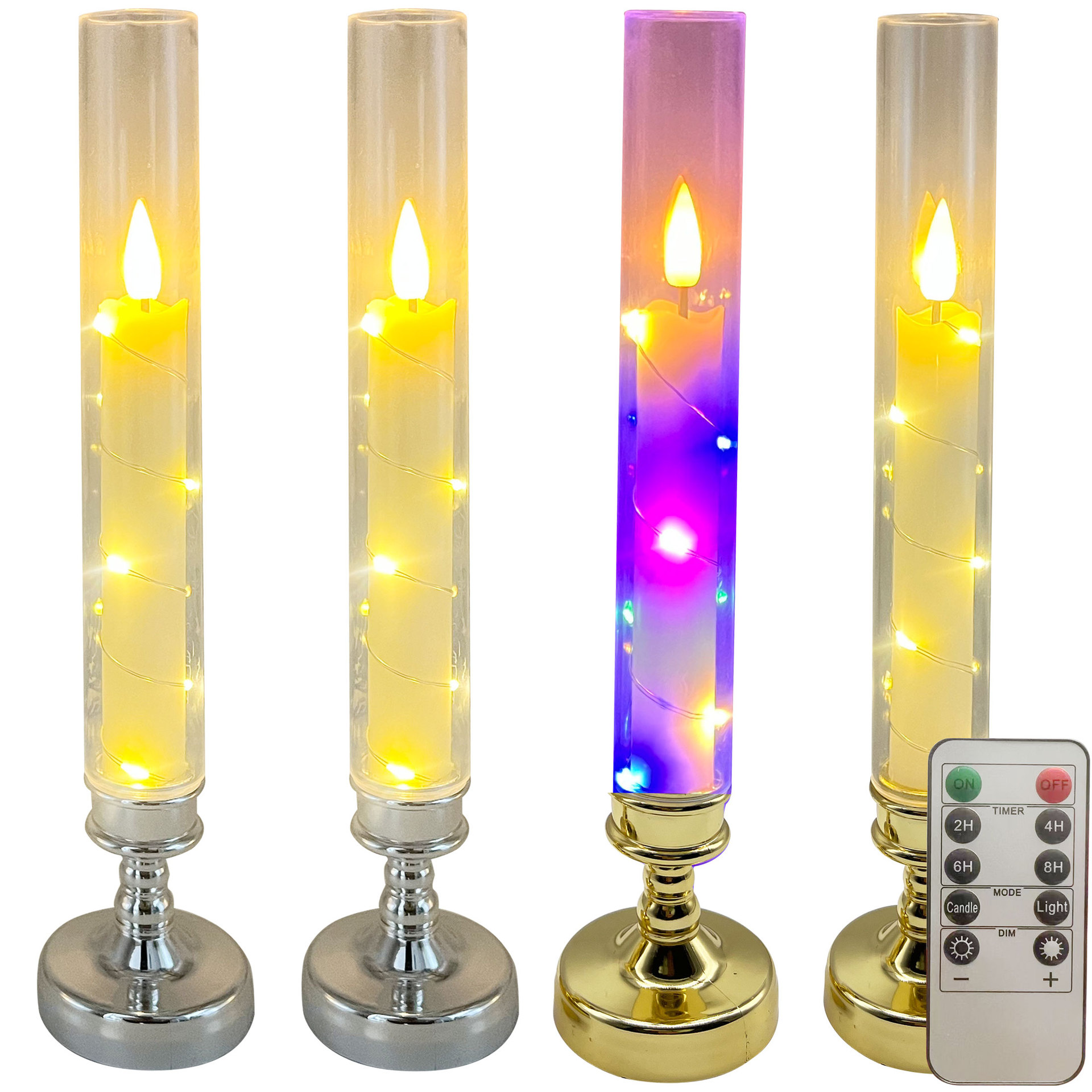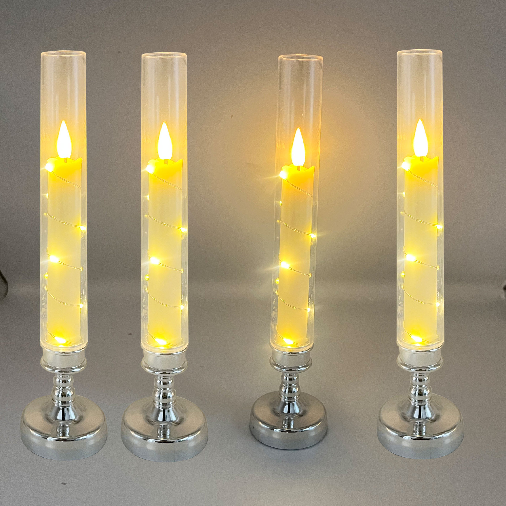 跨境新款烛台LED电子遥控蜡烛 烛光浪漫晚餐圣诞装饰仿真火焰杆蜡