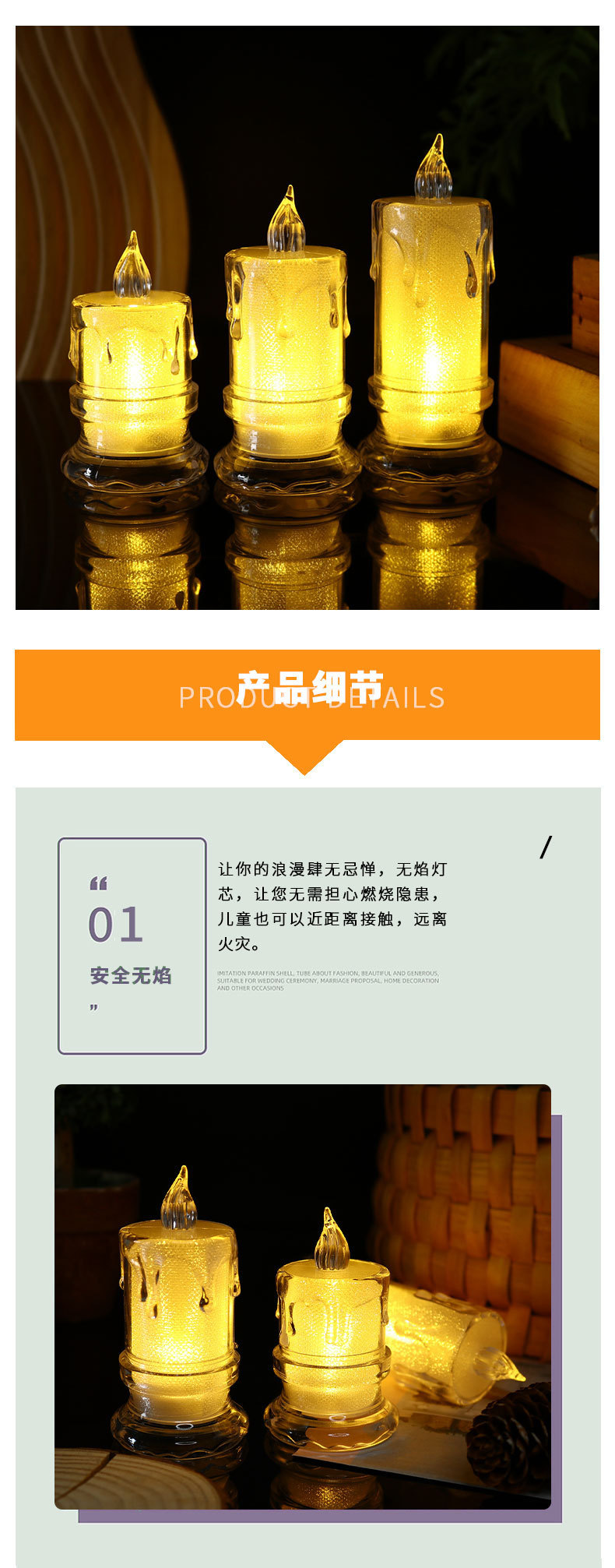 迷你仿真透明led电子蜡烛灯水晶蜡烛灯圣诞无烟茶蜡浪漫生日蜡烛