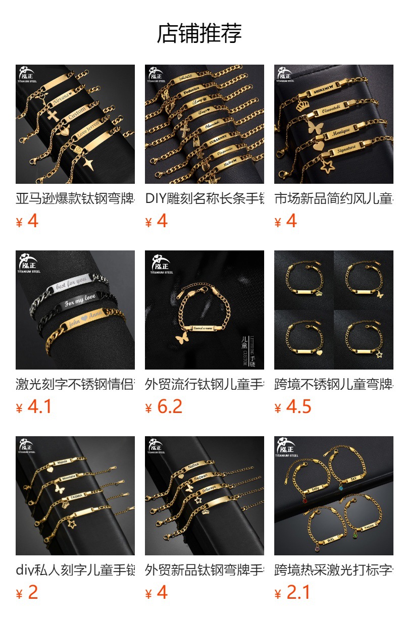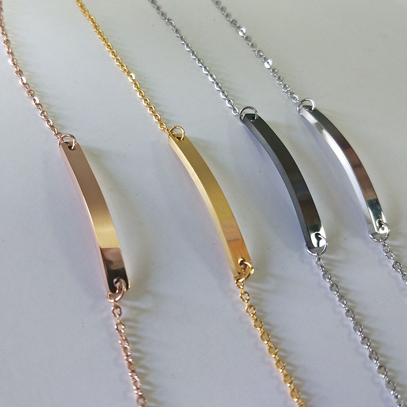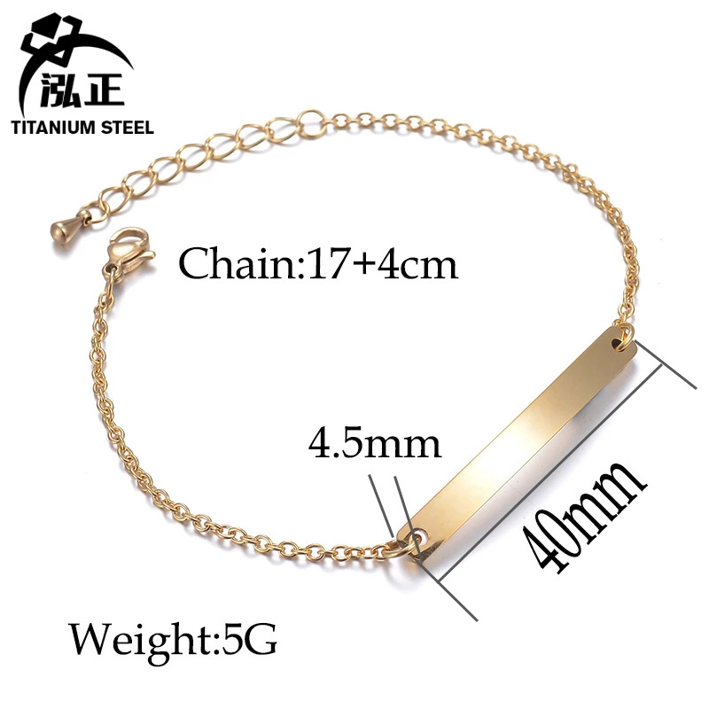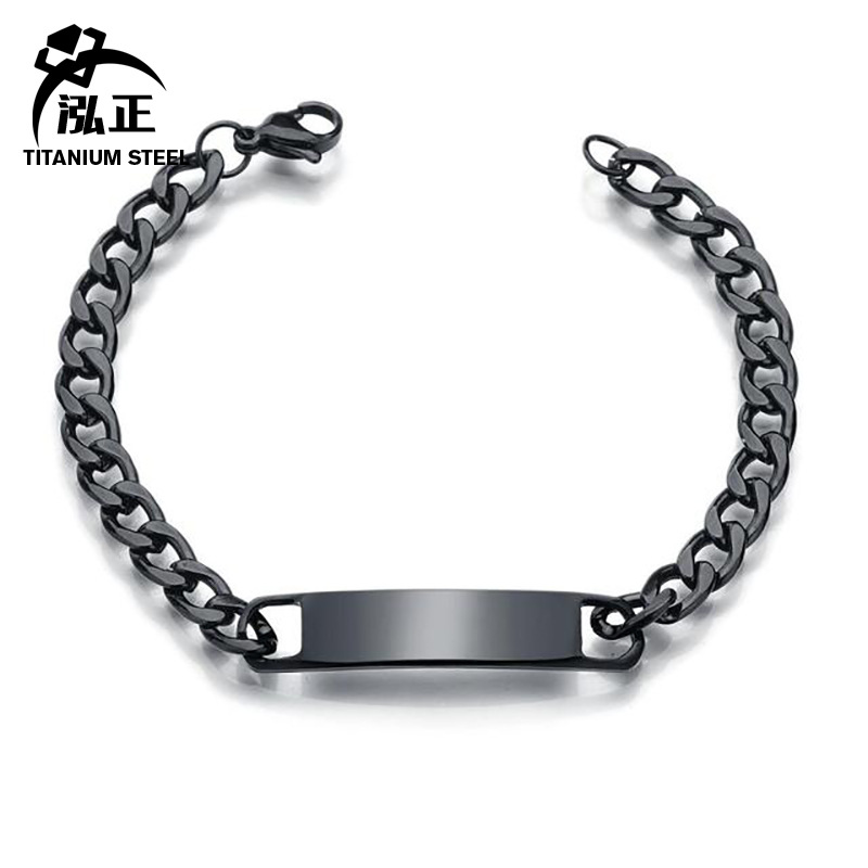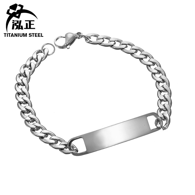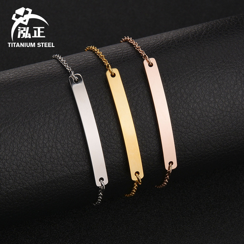 diy激光刻字不锈钢弯牌手链 欧美个性简约长条钛钢手链男士手饰品