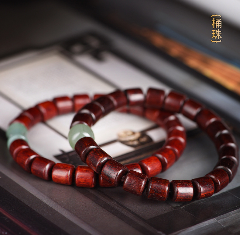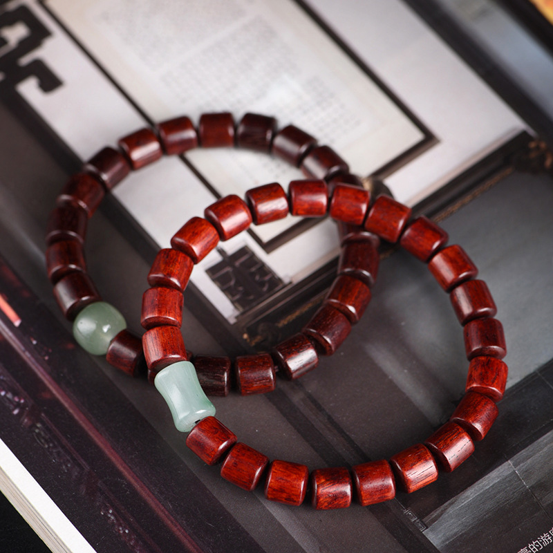 非洲小叶紫檀血檀桶珠DIY单圈佛珠手链夜光竹节老型珠文玩木串