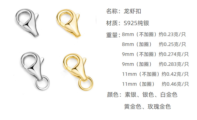 S925纯银龙虾扣弹簧扣 项链手链扣头连接扣 手工DIY饰品配件材料