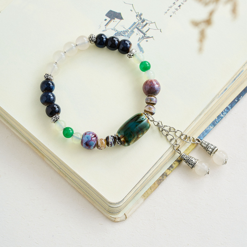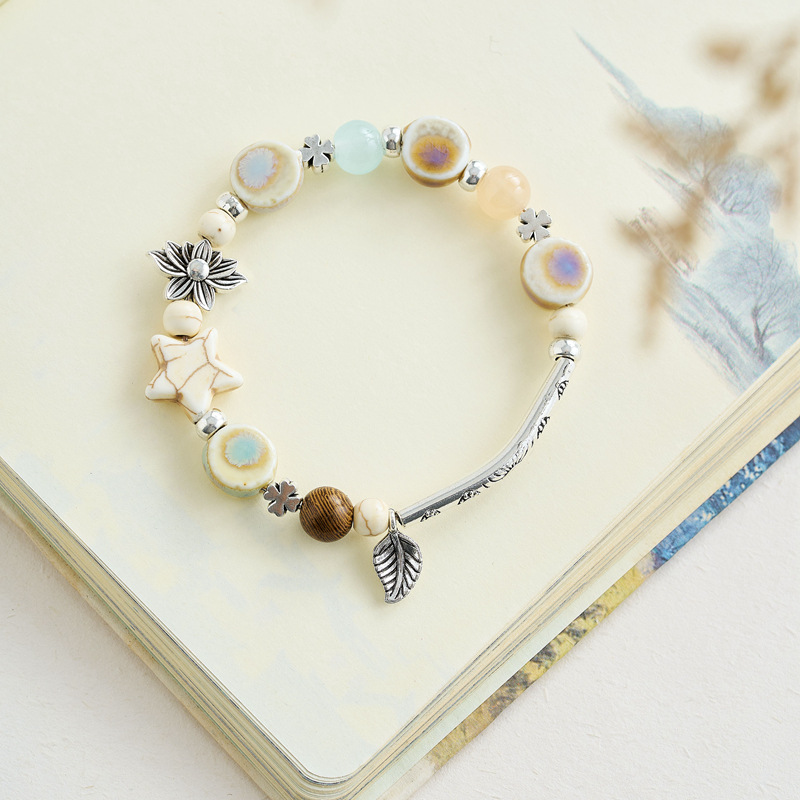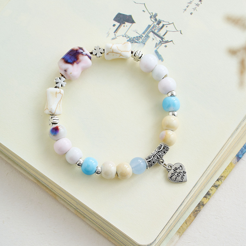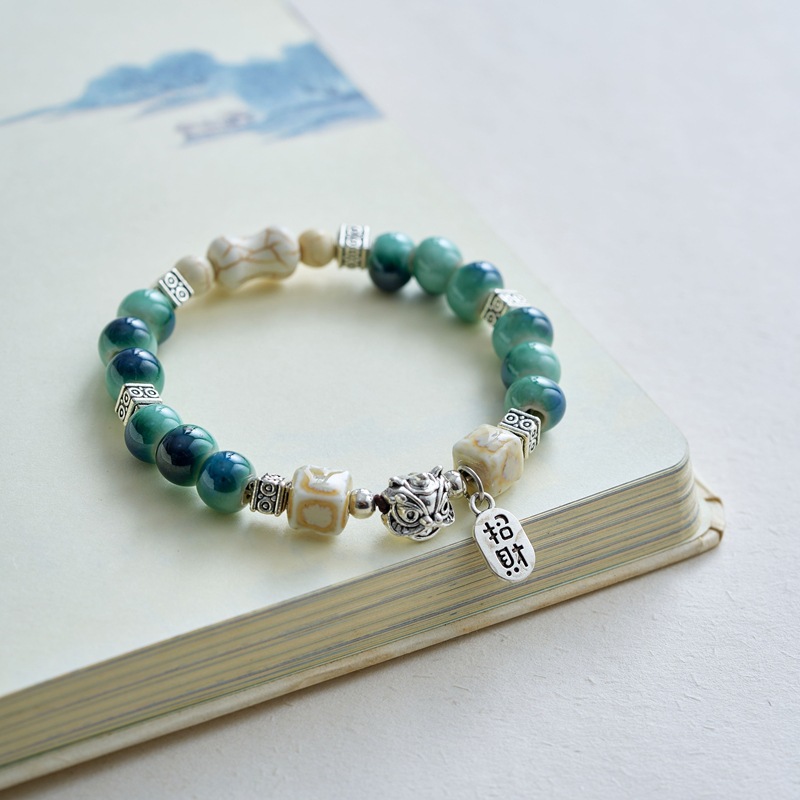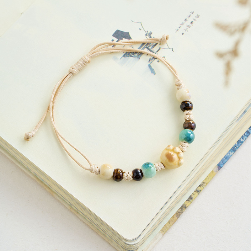 小清新手串新中式天然石手链陶瓷简约学生女礼物品摆摊货源原创