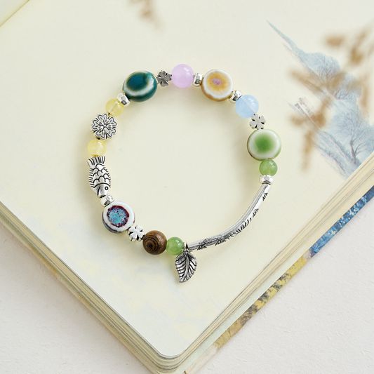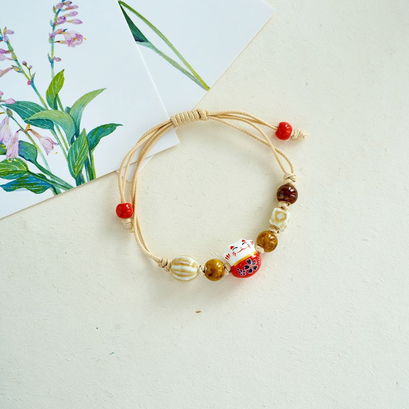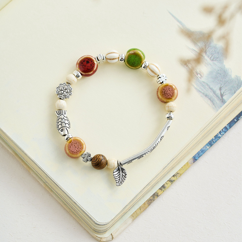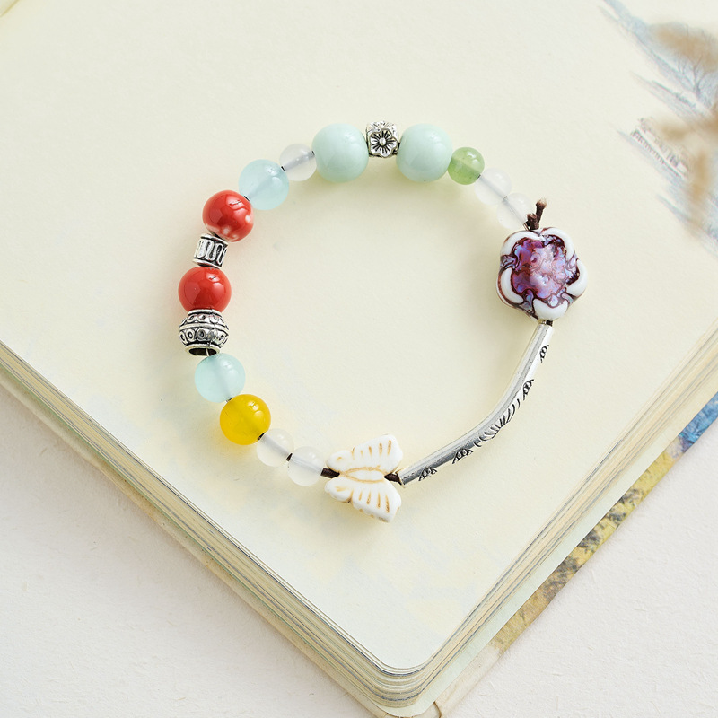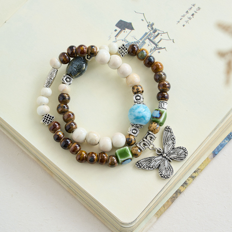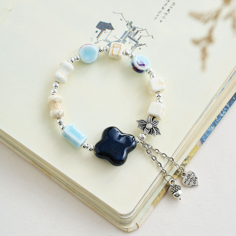 小清新手串新中式天然石手链陶瓷简约学生女礼物品摆摊货源原创