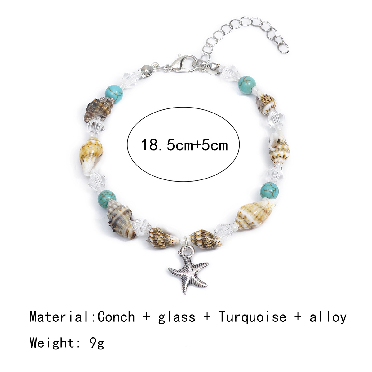 外贸流行饰品 海螺米珠绿松石手链 沙滩海星吊坠贝壳水晶珠手环
