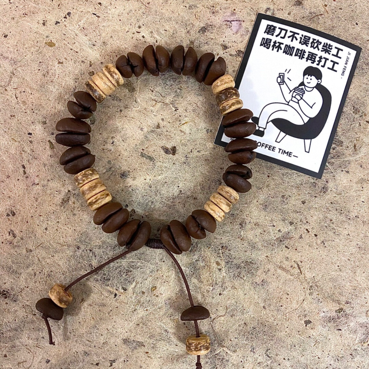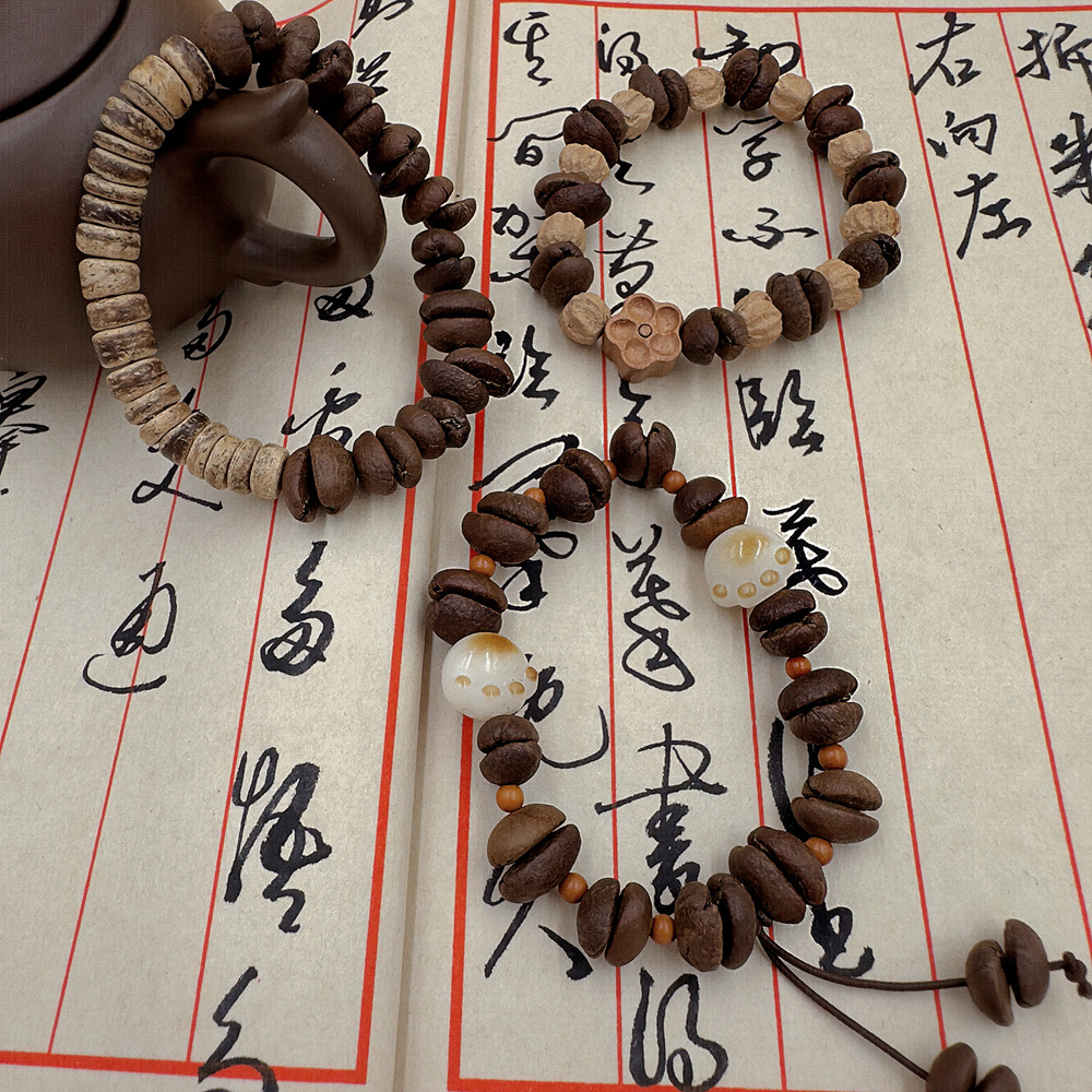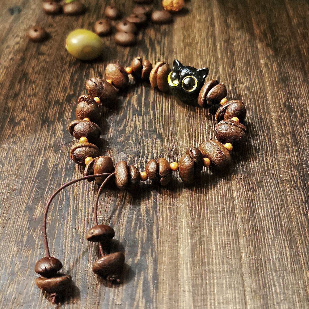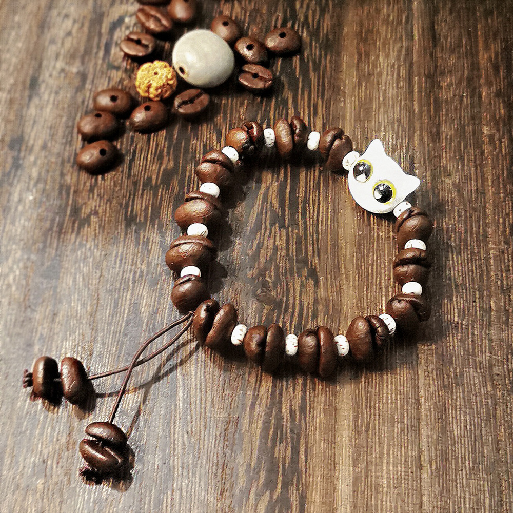 手工天然(真咖啡豆)手串新中式经典菩提猫头咖啡味浓郁手链女式