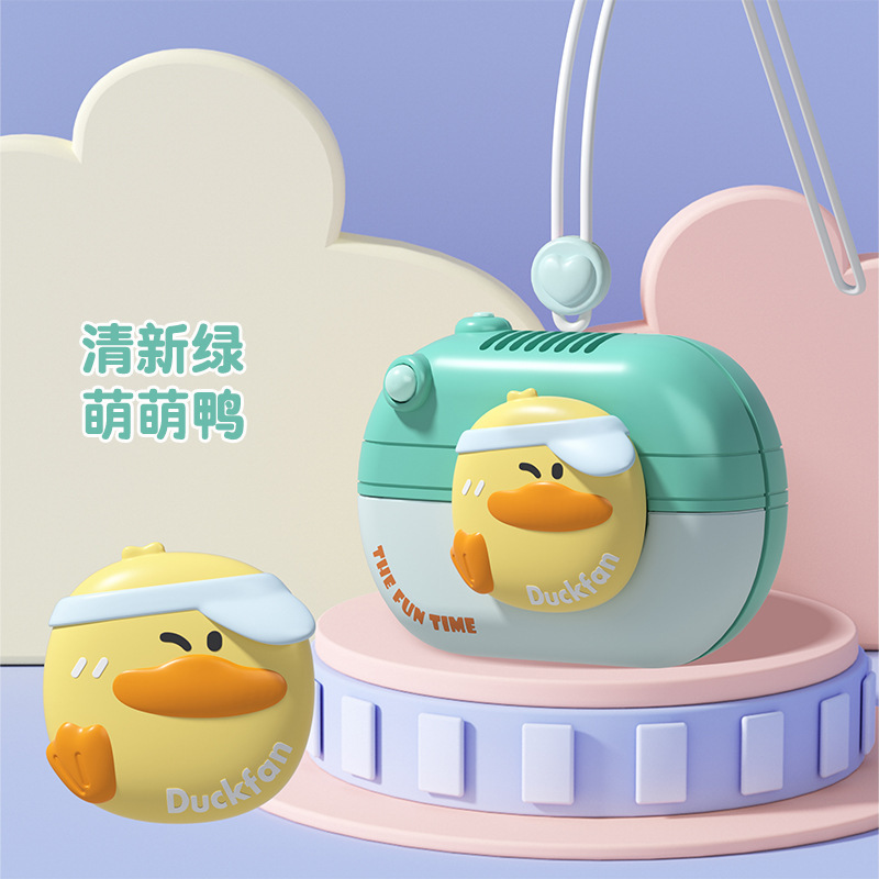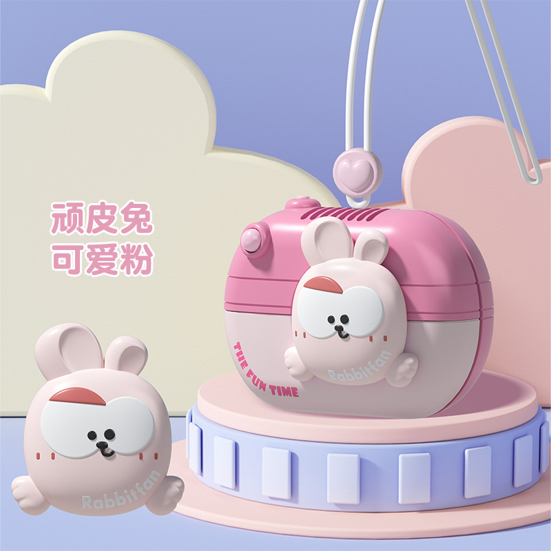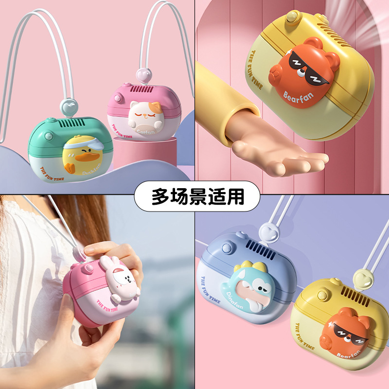 2025新款卡通无叶挂脖小风扇 长续航便携USB充电儿童安全挂颈风扇