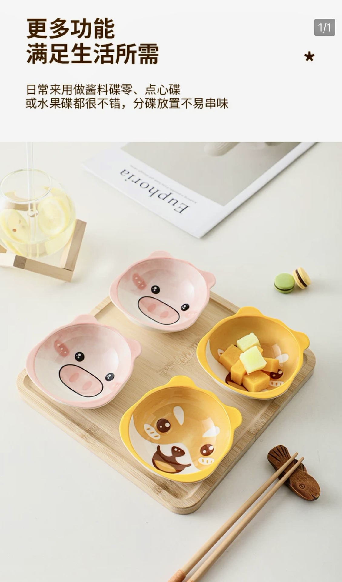 批发卡通釉下彩陶瓷家用火锅蘸料碟水饺醋料碟网红调料碟辣椒油碟