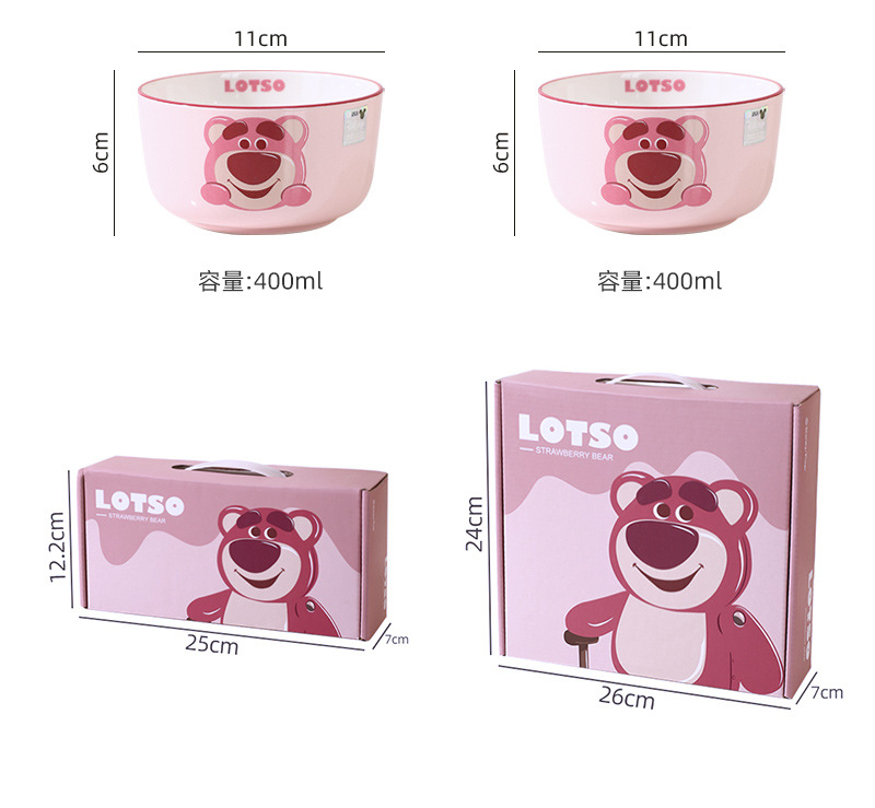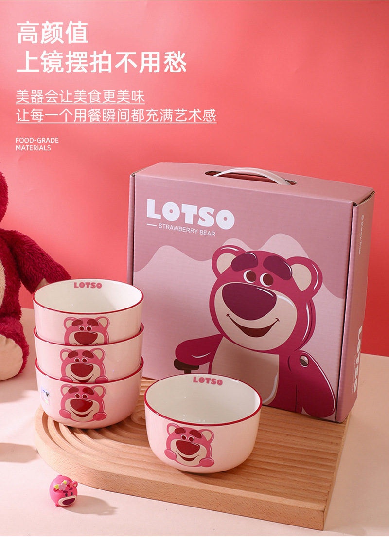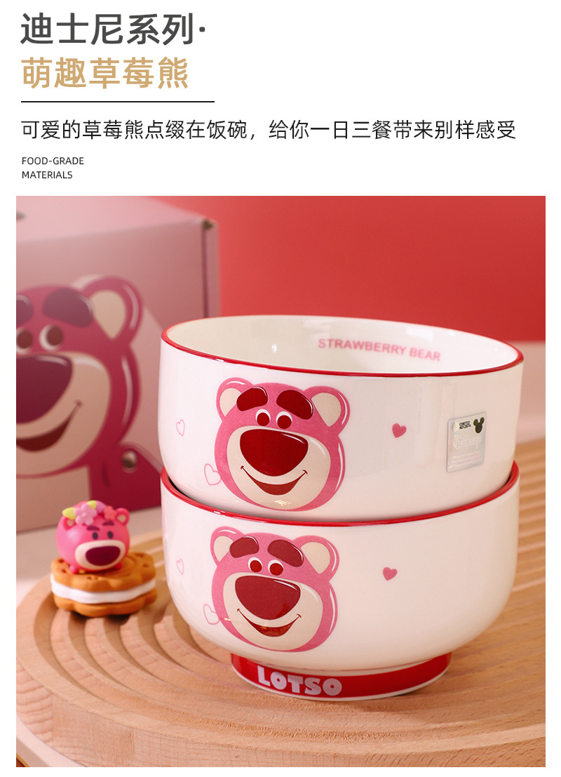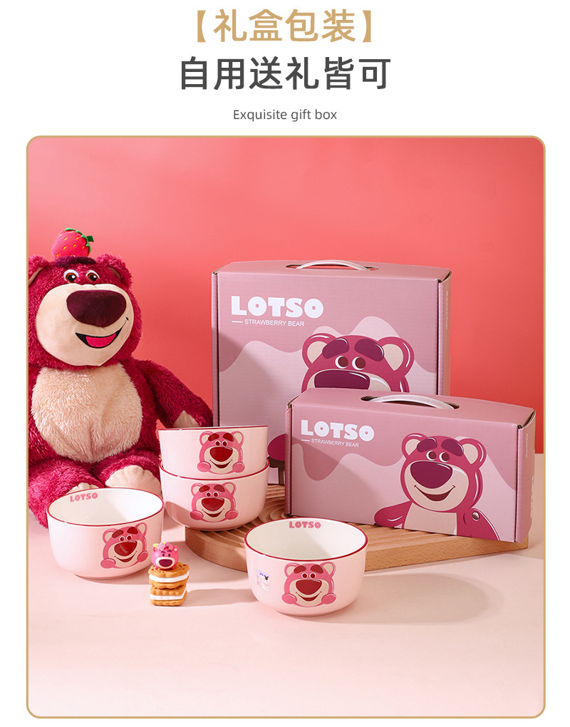 高颜值陶瓷碗礼盒装餐具套装可爱草莓熊家用吃饭碗卡通节日伴手礼