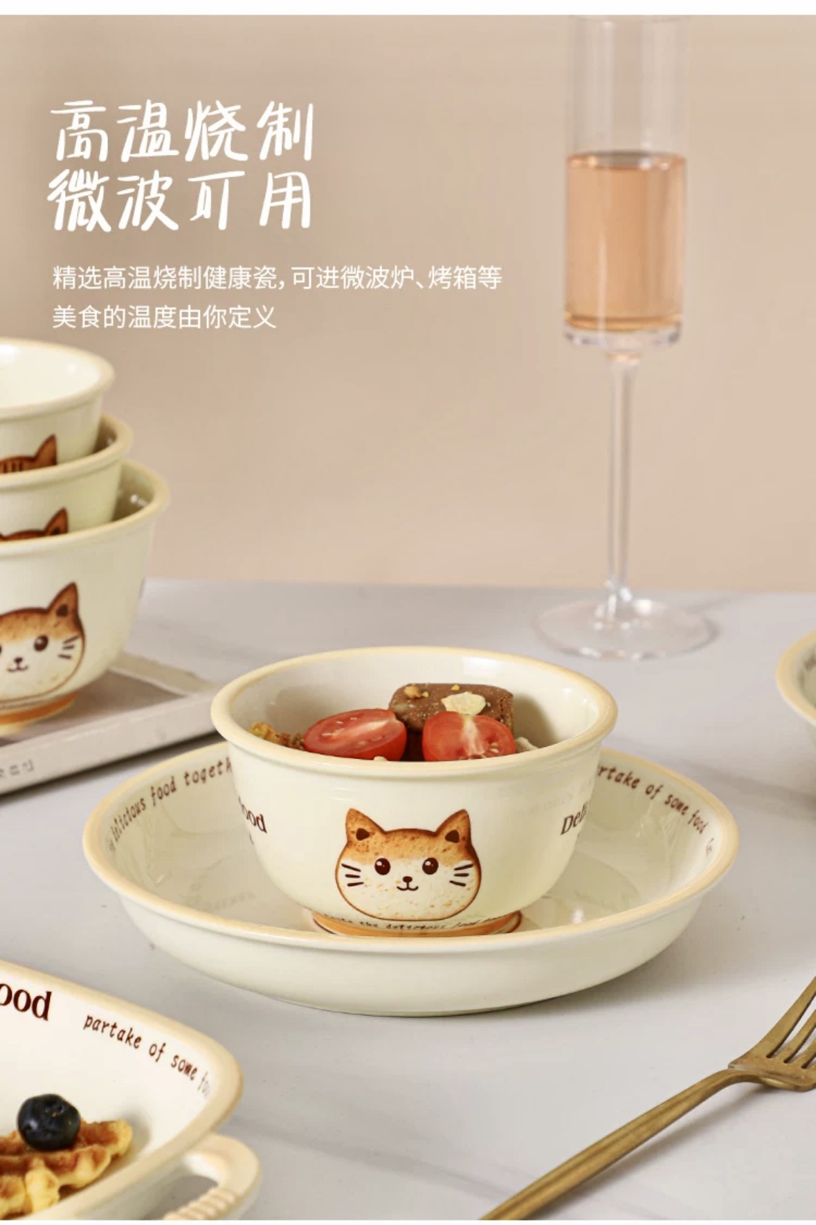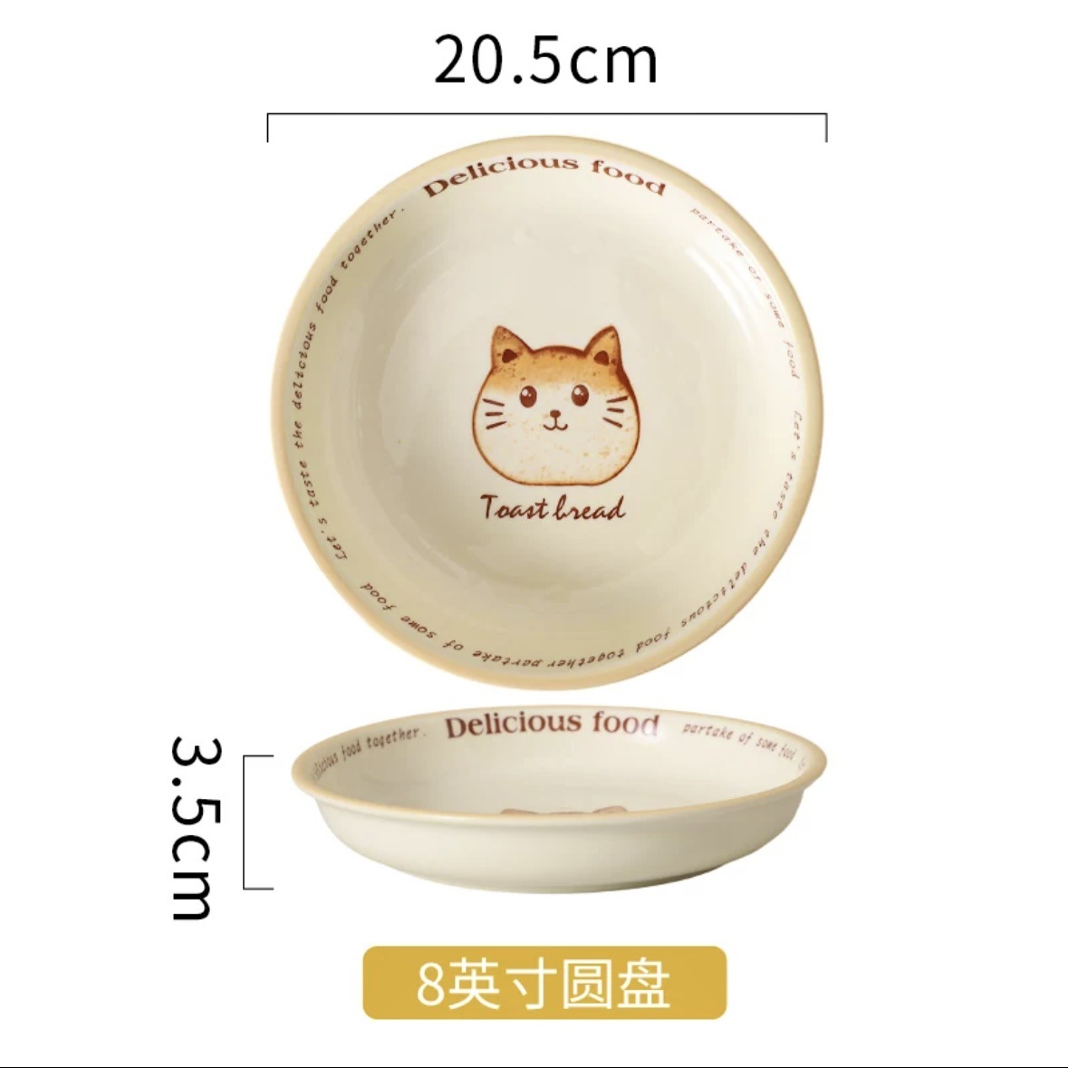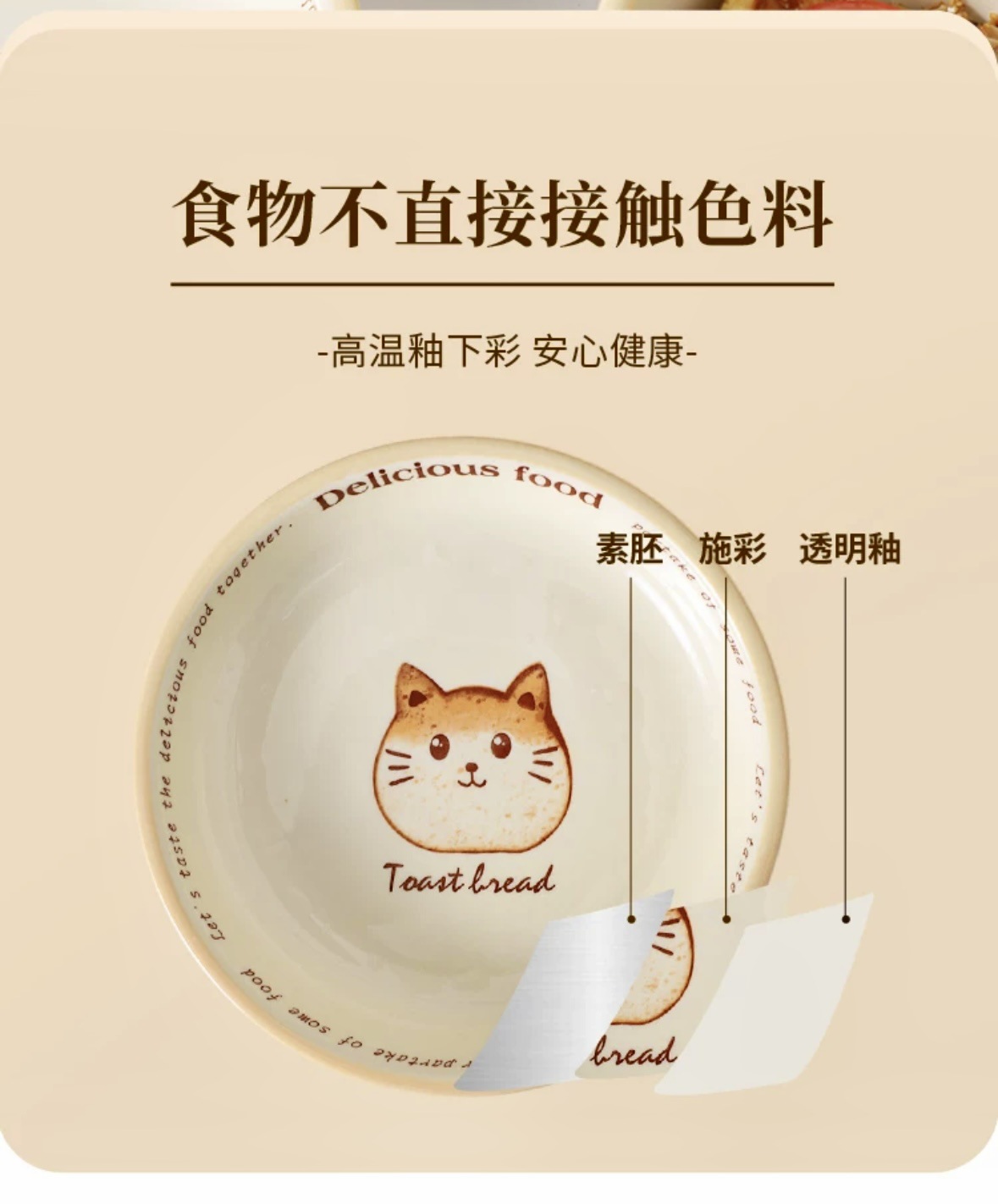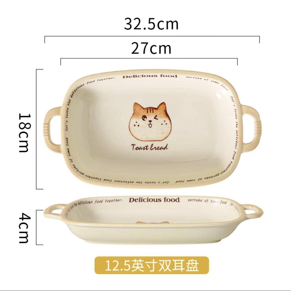 批发吐司猫釉下彩油风卡通盘子家用餐盘陶瓷米饭碗面碗防烫双耳盘