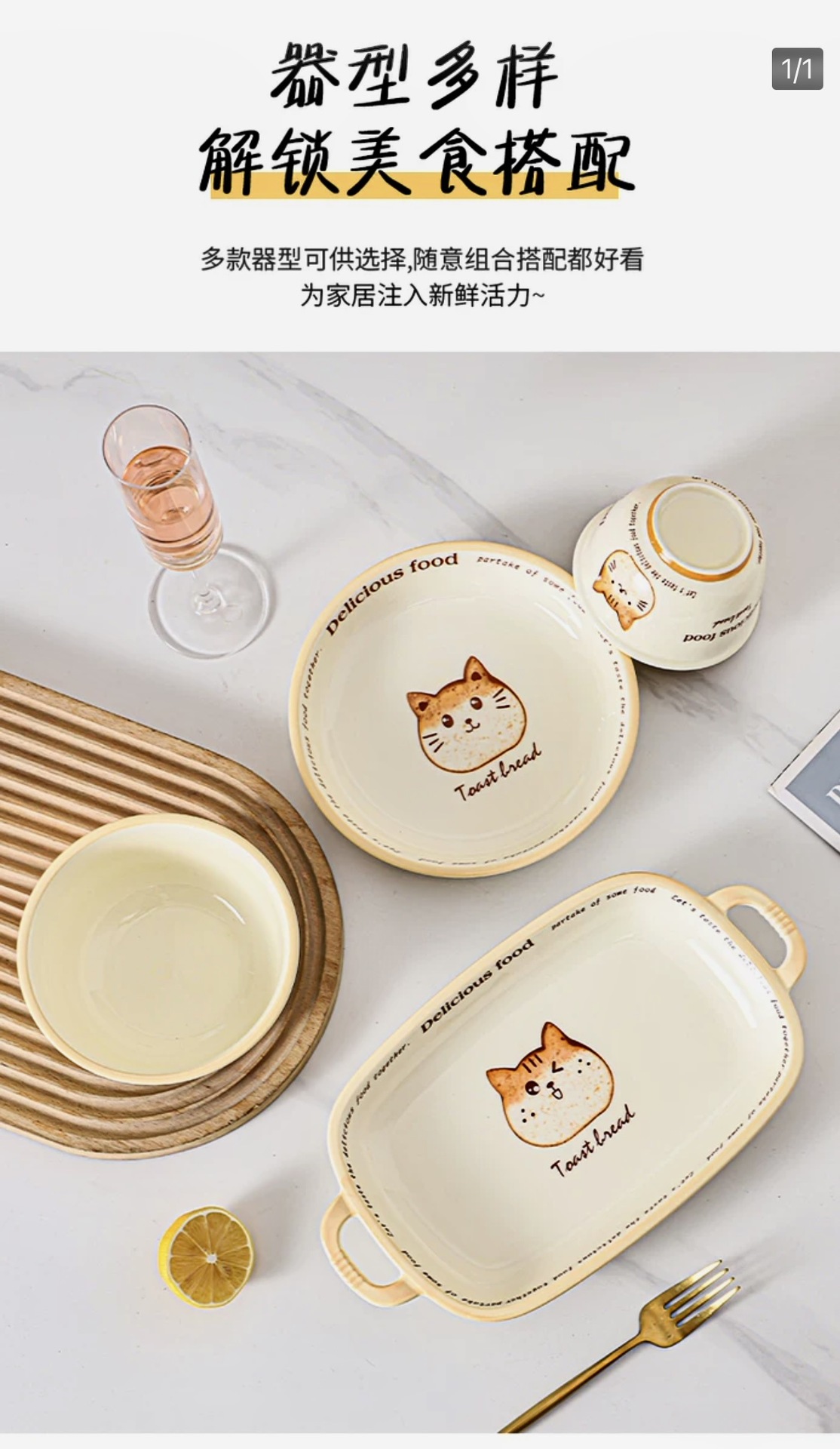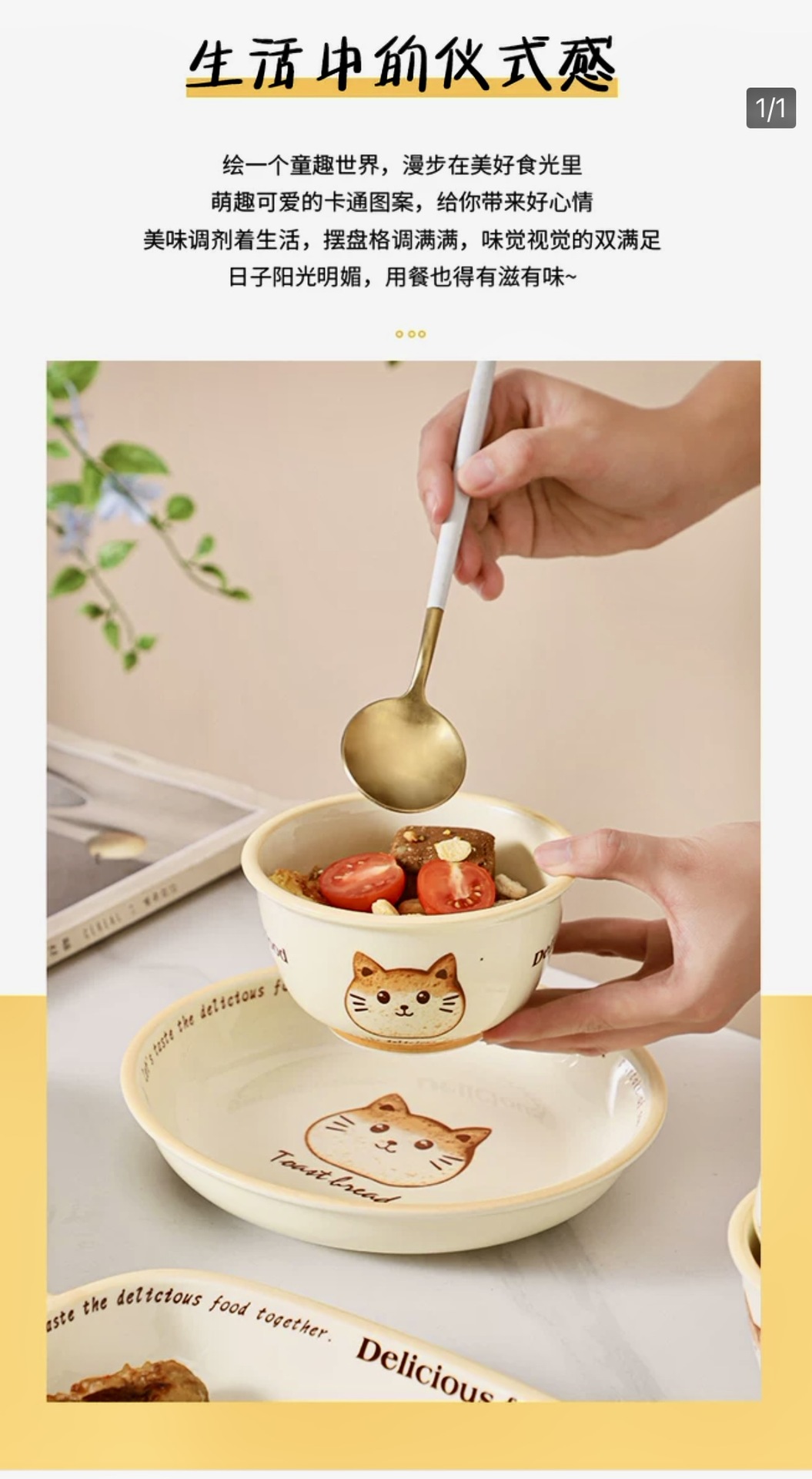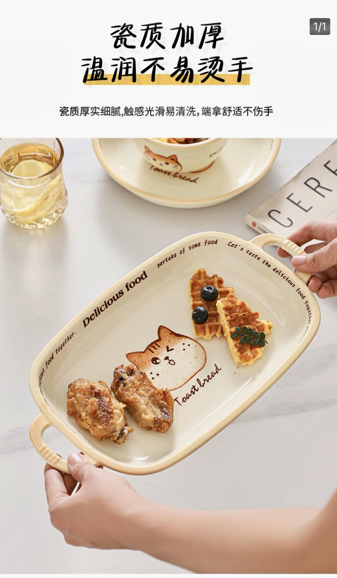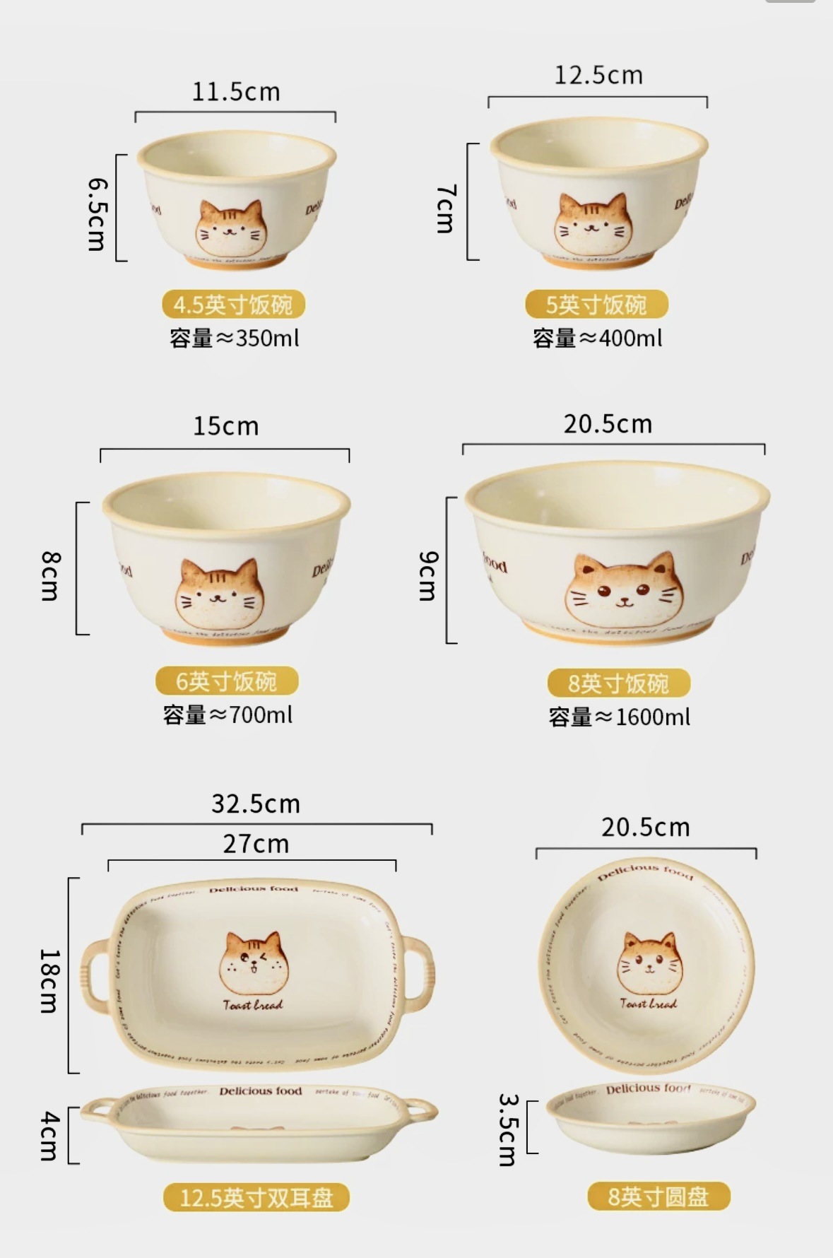 批发吐司猫釉下彩油风卡通盘子家用餐盘陶瓷米饭碗面碗防烫双耳盘