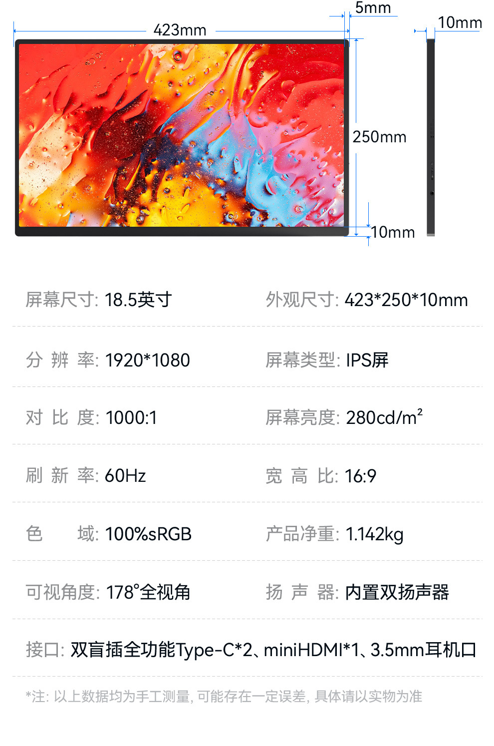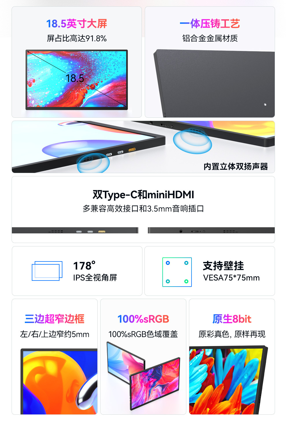 18.5寸/16寸/15.6HDMI高清4K触摸便携显示器1080P手机电脑扩展PS5