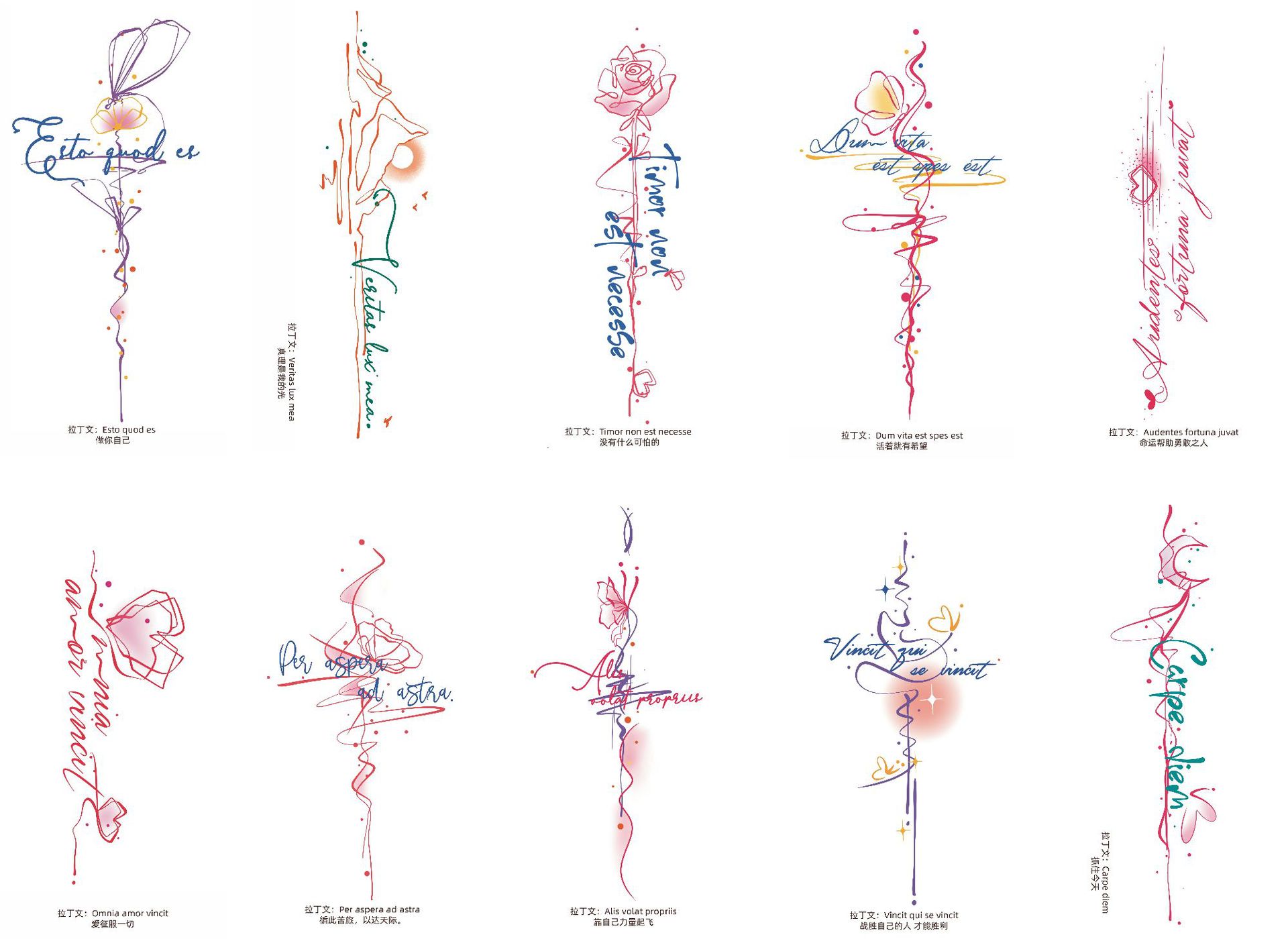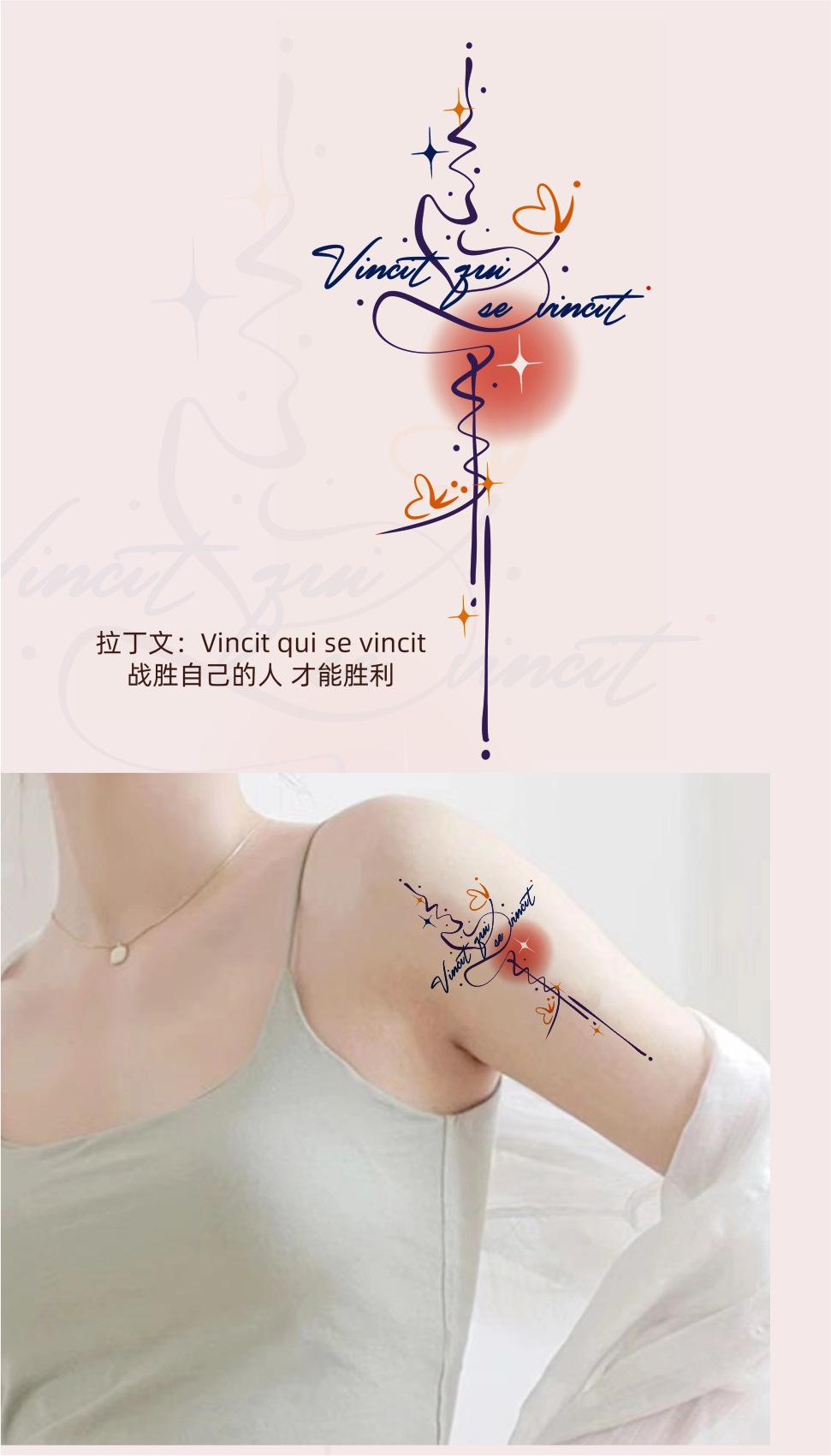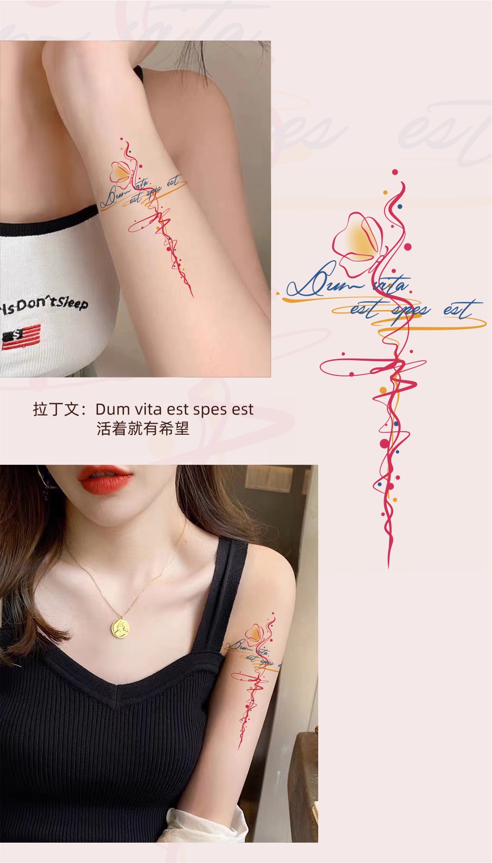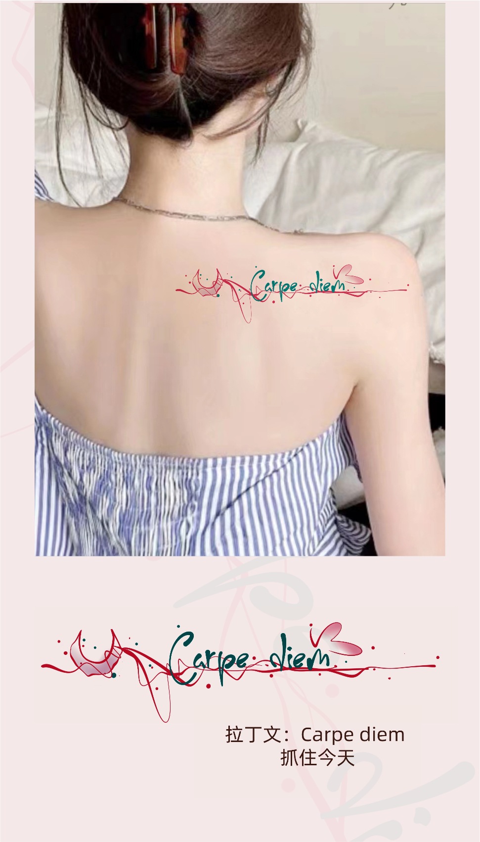 跨境热卖拉丁语纹身贴高级感ins风性感女英文手臂锁骨臂环文身贴