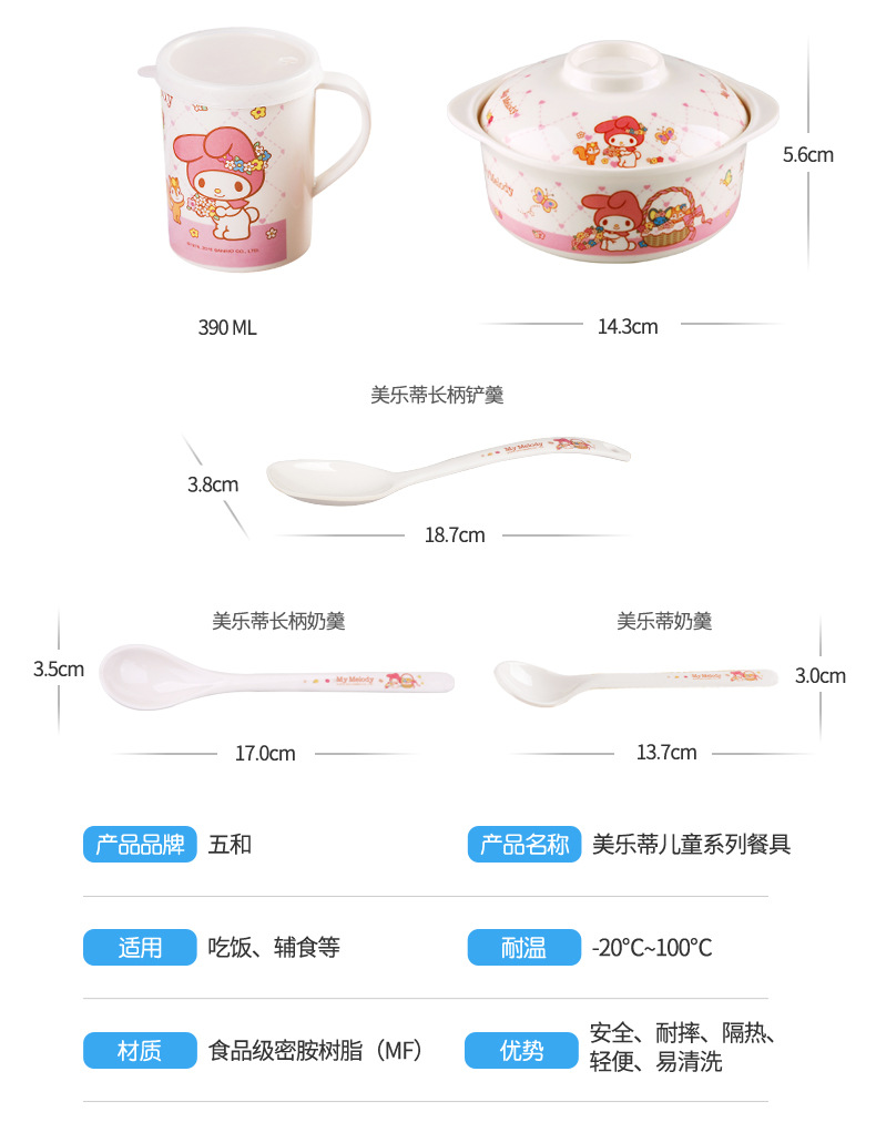 五和美乐蒂儿童餐具女孩专用可爱卡通婴儿辅食碗密胺防烫水杯餐盘
