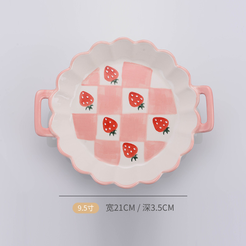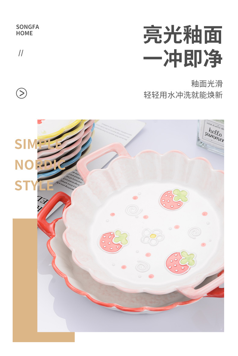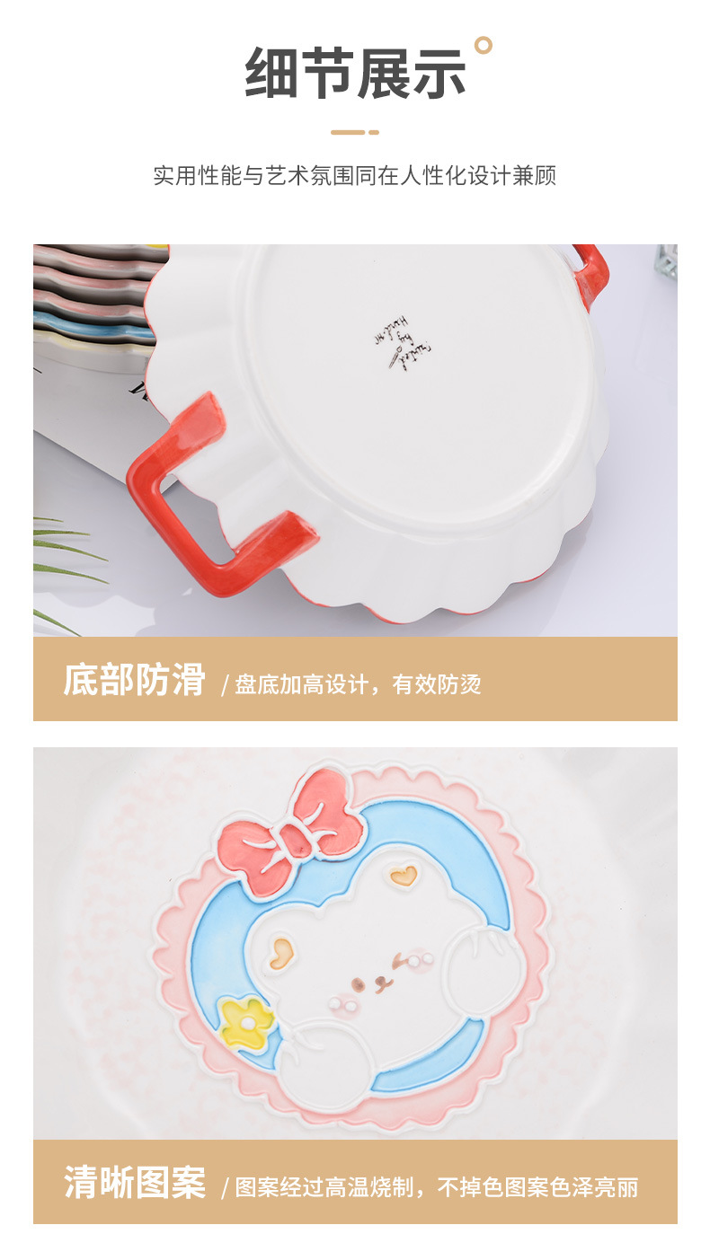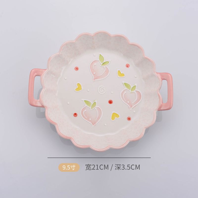 批发陶瓷手绘花边盘立体双耳餐盘家用菜盘意面盘高颜值可爱水果盘