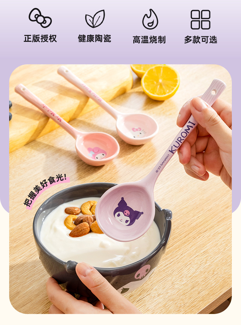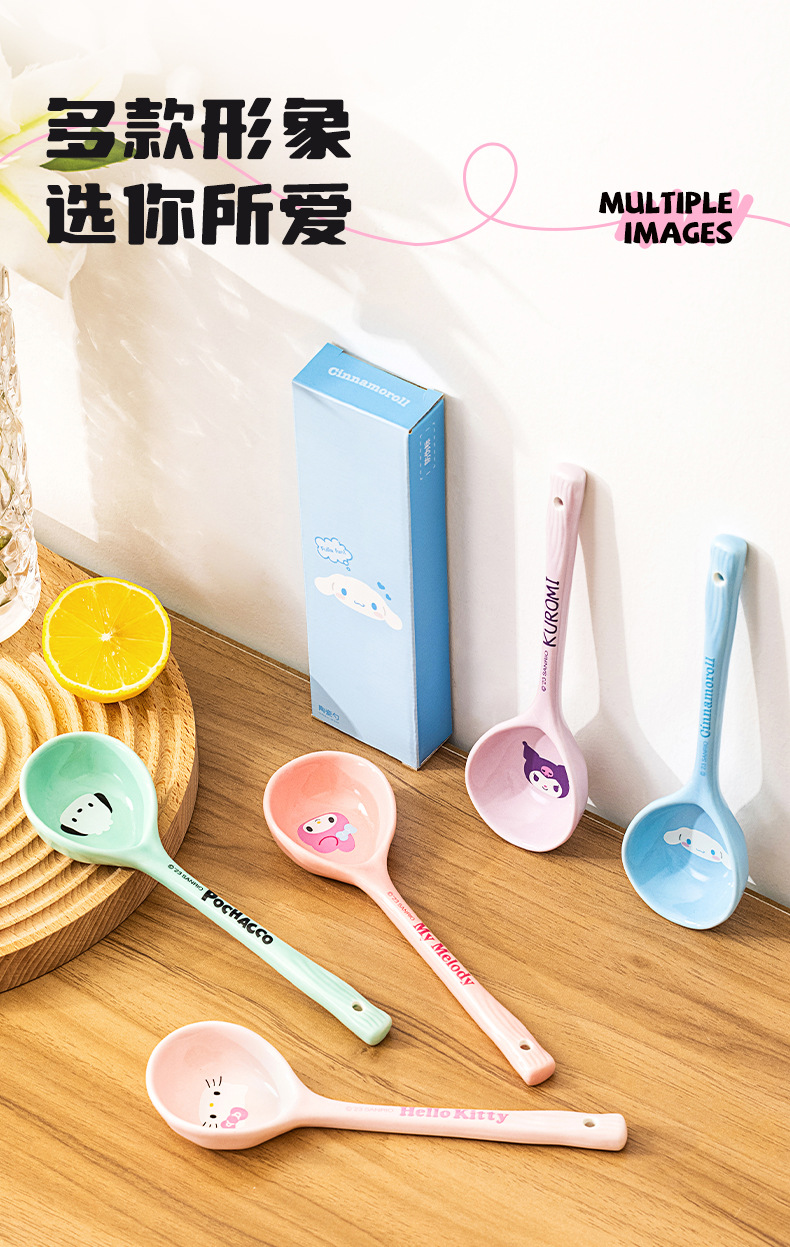三丽鸥卡通陶瓷勺子家用盛汤长柄大汤勺高颜值可爱汤匙个性大调羹