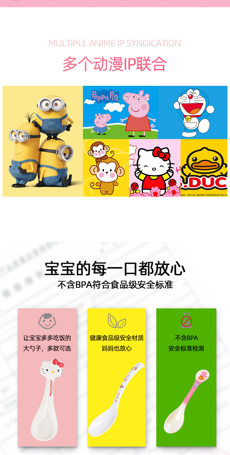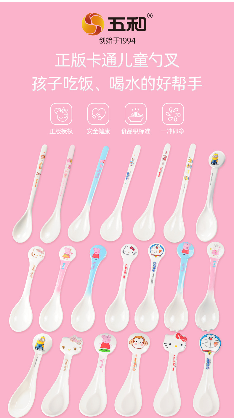 五和密胺食品级宝宝小勺训练吃饭勺婴儿辅食卡通勺儿童勺子
