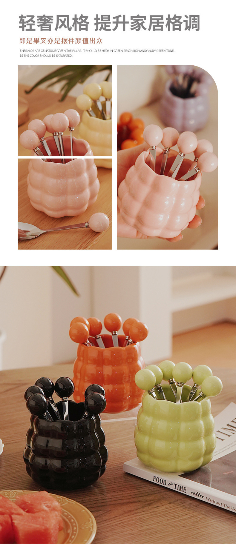 批发奶油风陶瓷珍珠果叉子罐套装高颜值家居装饰好物多种用途