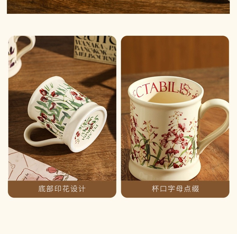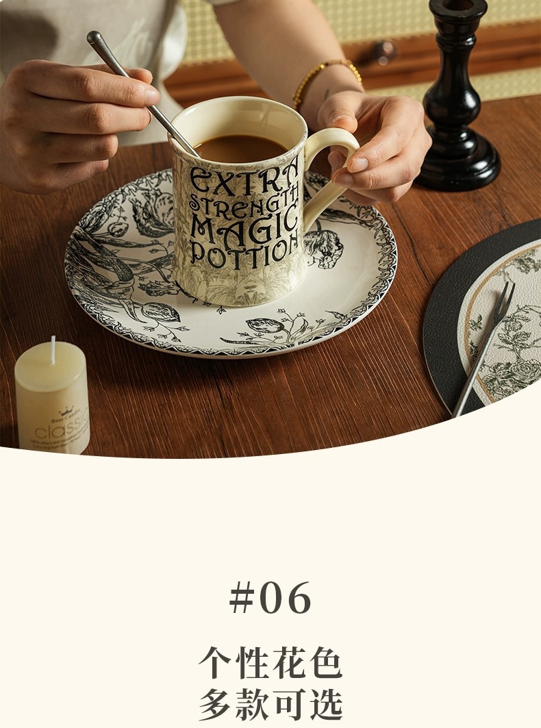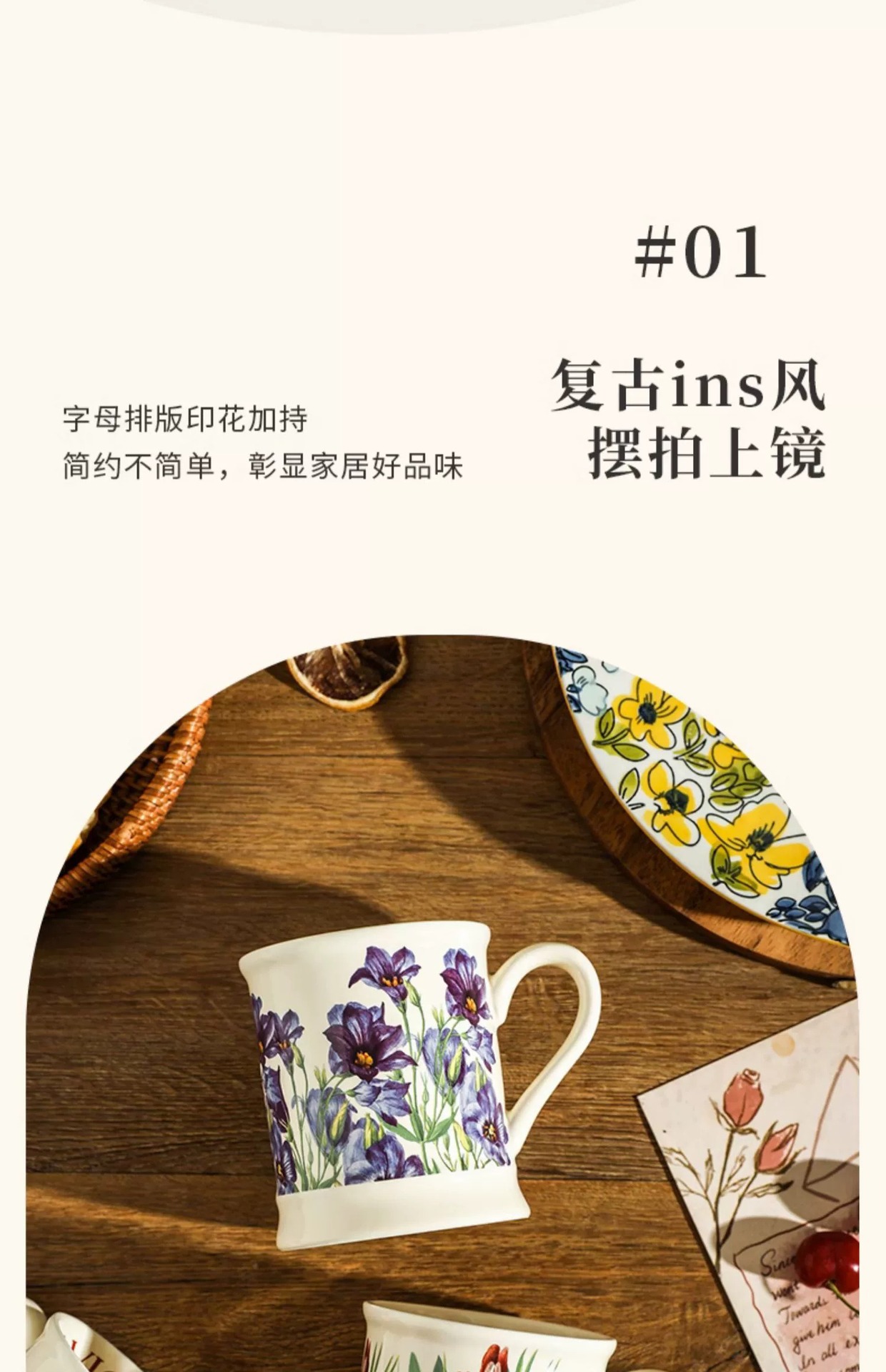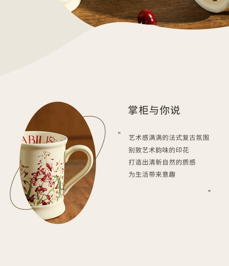 咖啡杯舍里法式复古高颜值马克杯小众办公室水杯高级感陶瓷早餐杯