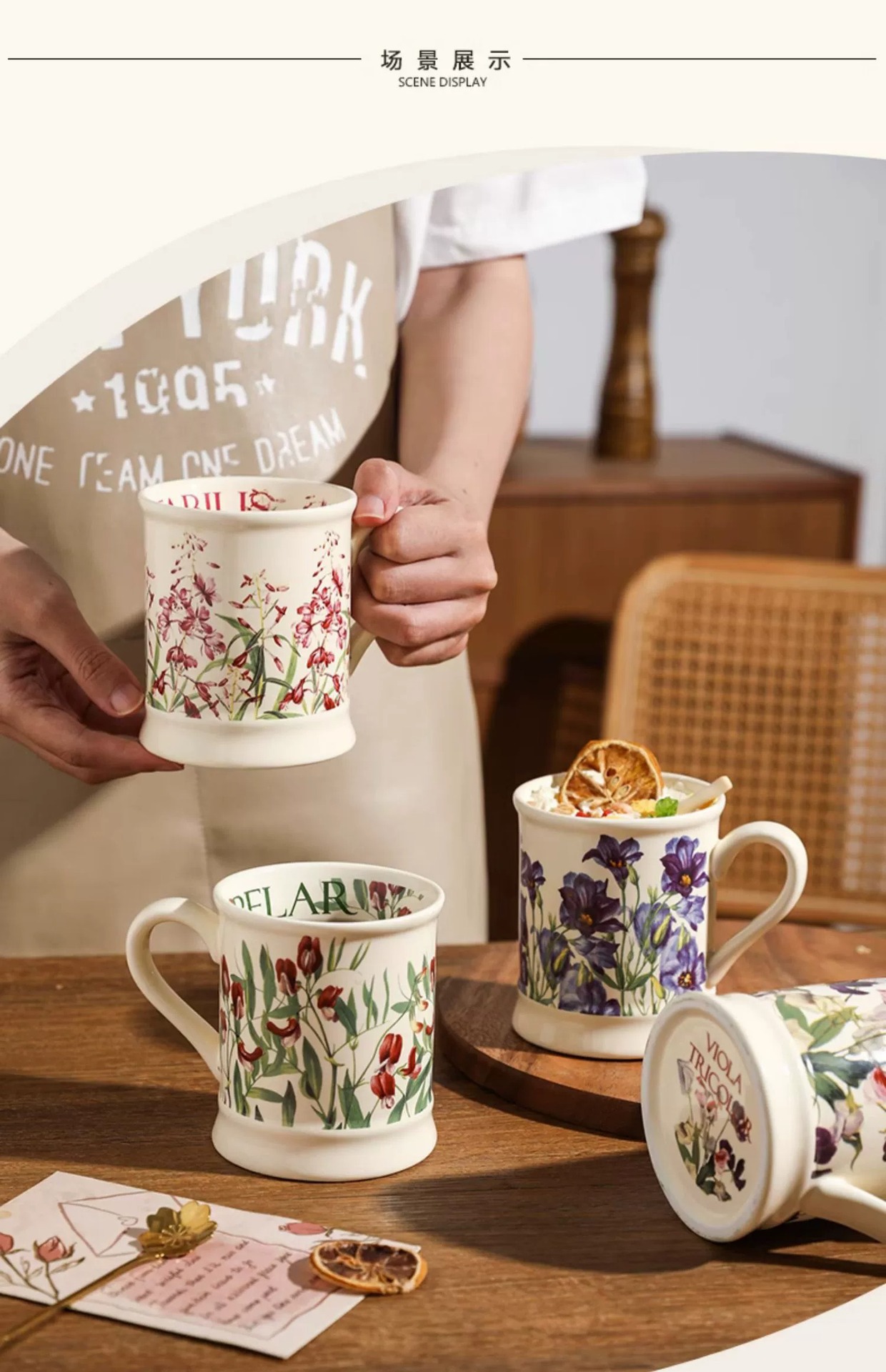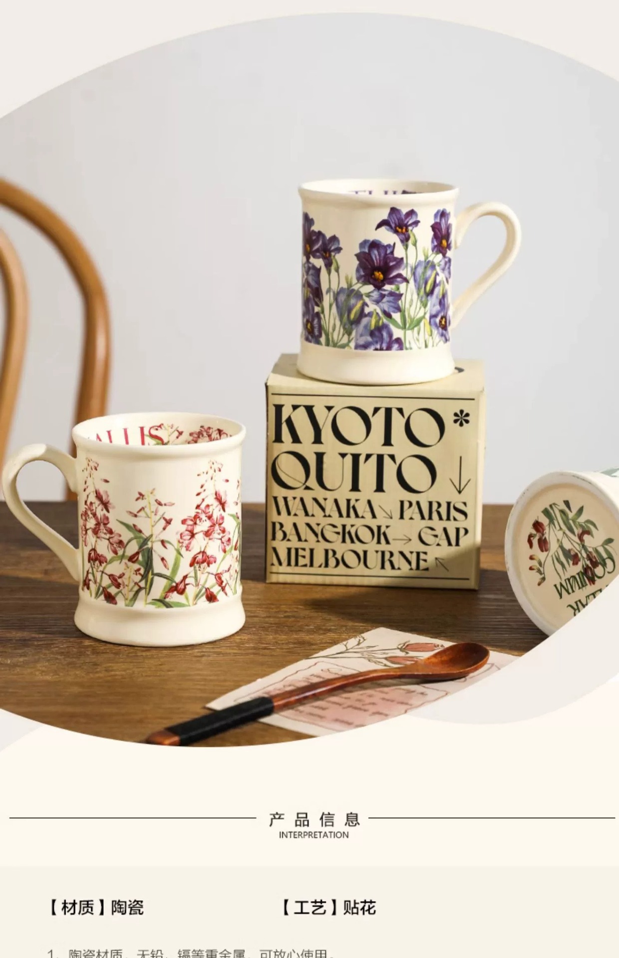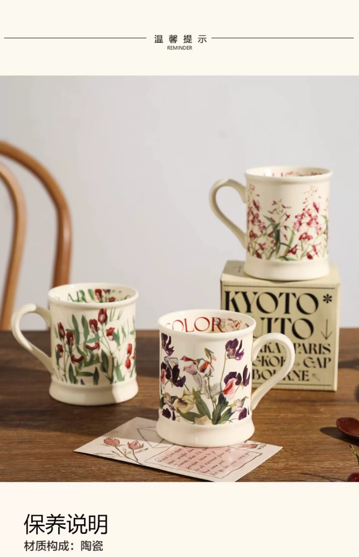 咖啡杯舍里法式复古高颜值马克杯小众办公室水杯高级感陶瓷早餐杯