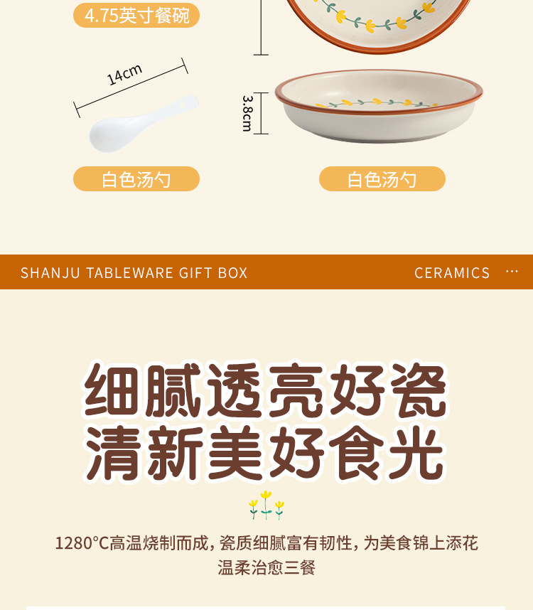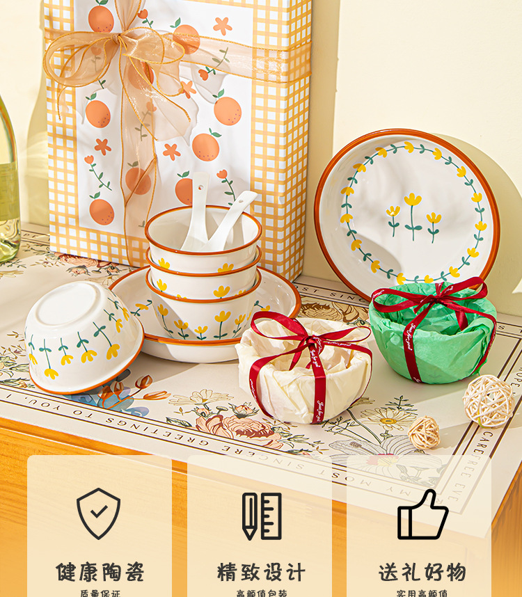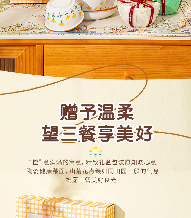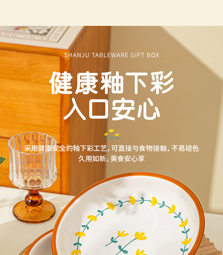 陶瓷釉下彩礼物山菊花陶瓷碗餐具乔迁礼品碗商务活动礼品批发