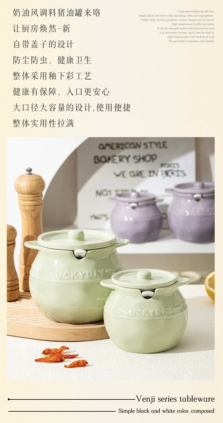 批发陶瓷猪油罐耐高温家用调味罐调料瓶罐厨房盐罐油泼辣子辣椒罐