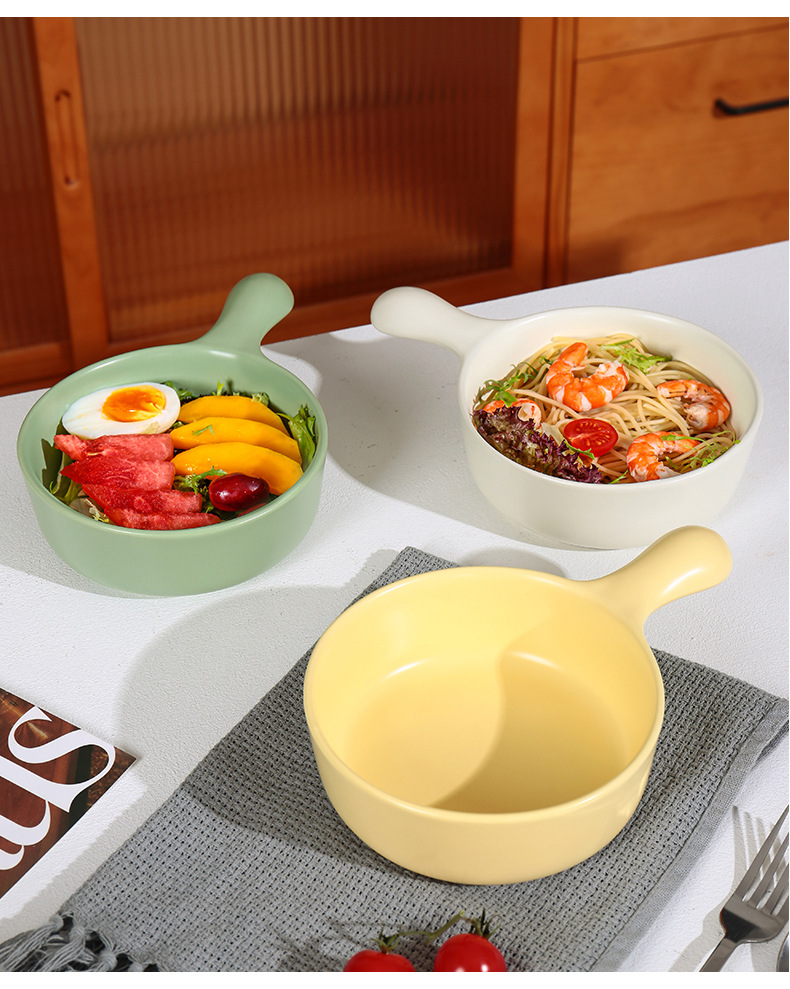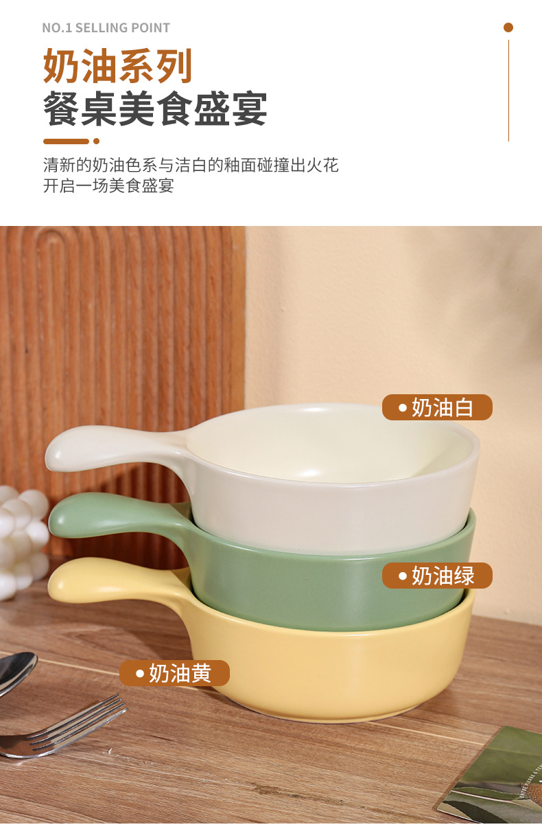 批发手柄碗陶瓷奶油哑光ins风螺蛳粉泡面汤碗家用沙拉焗饭碗餐具