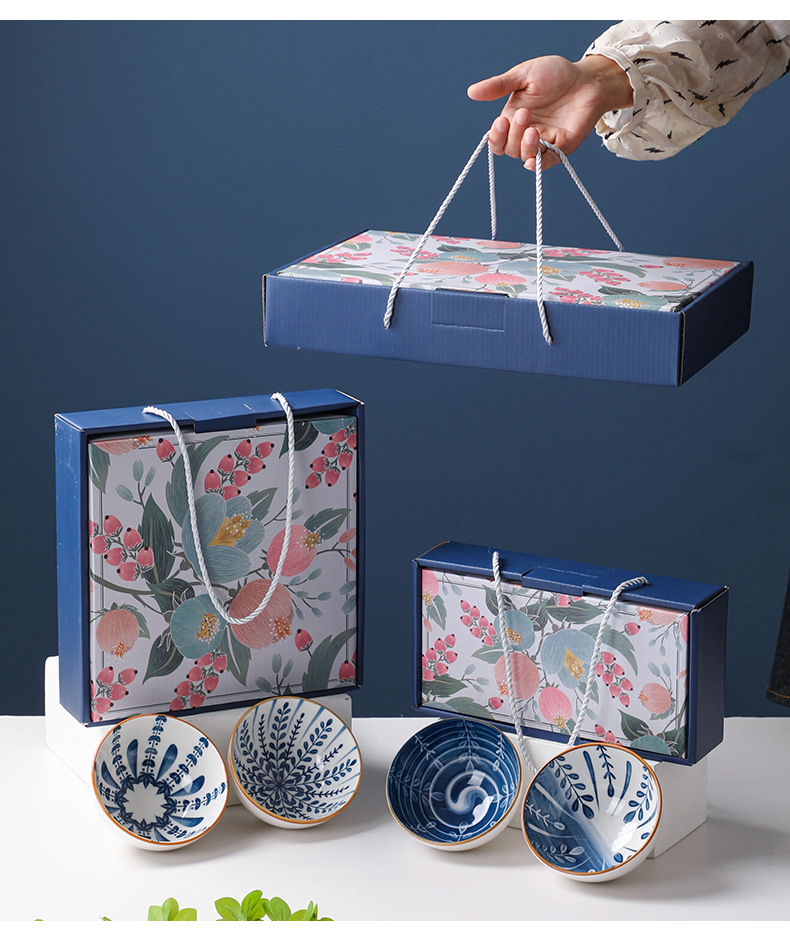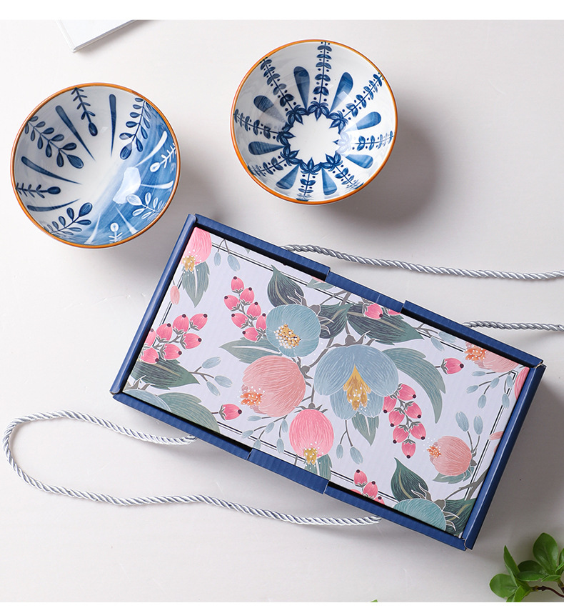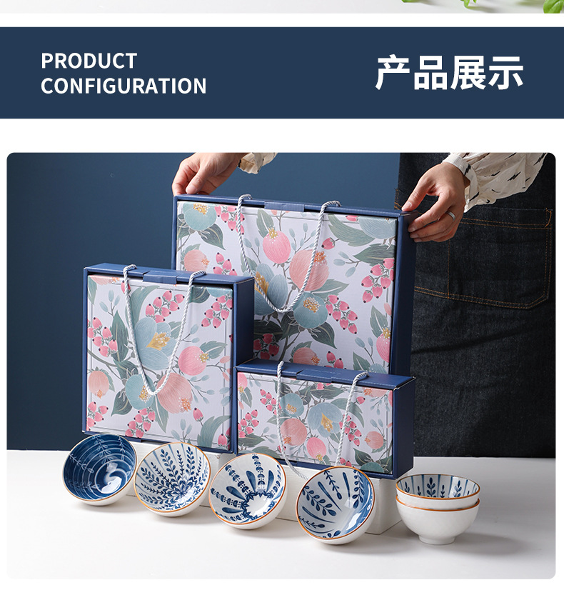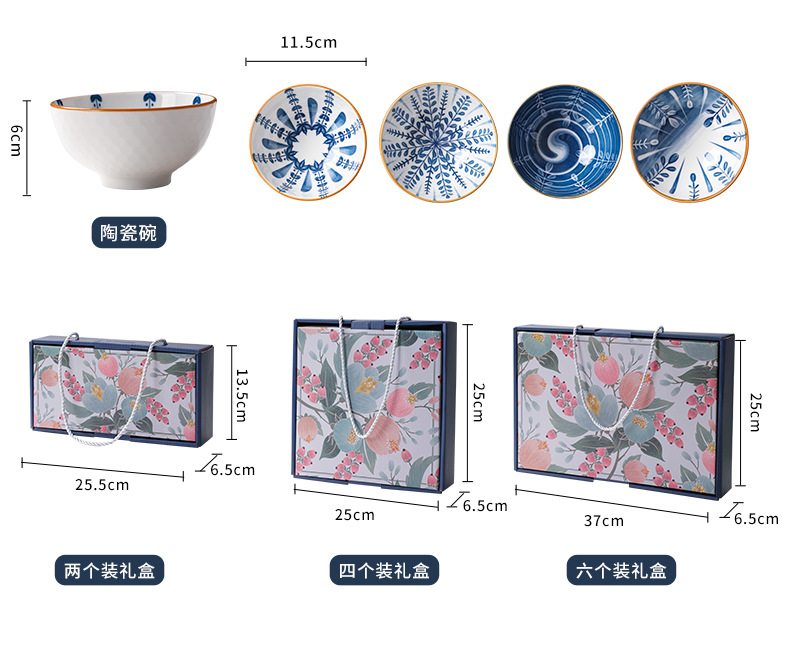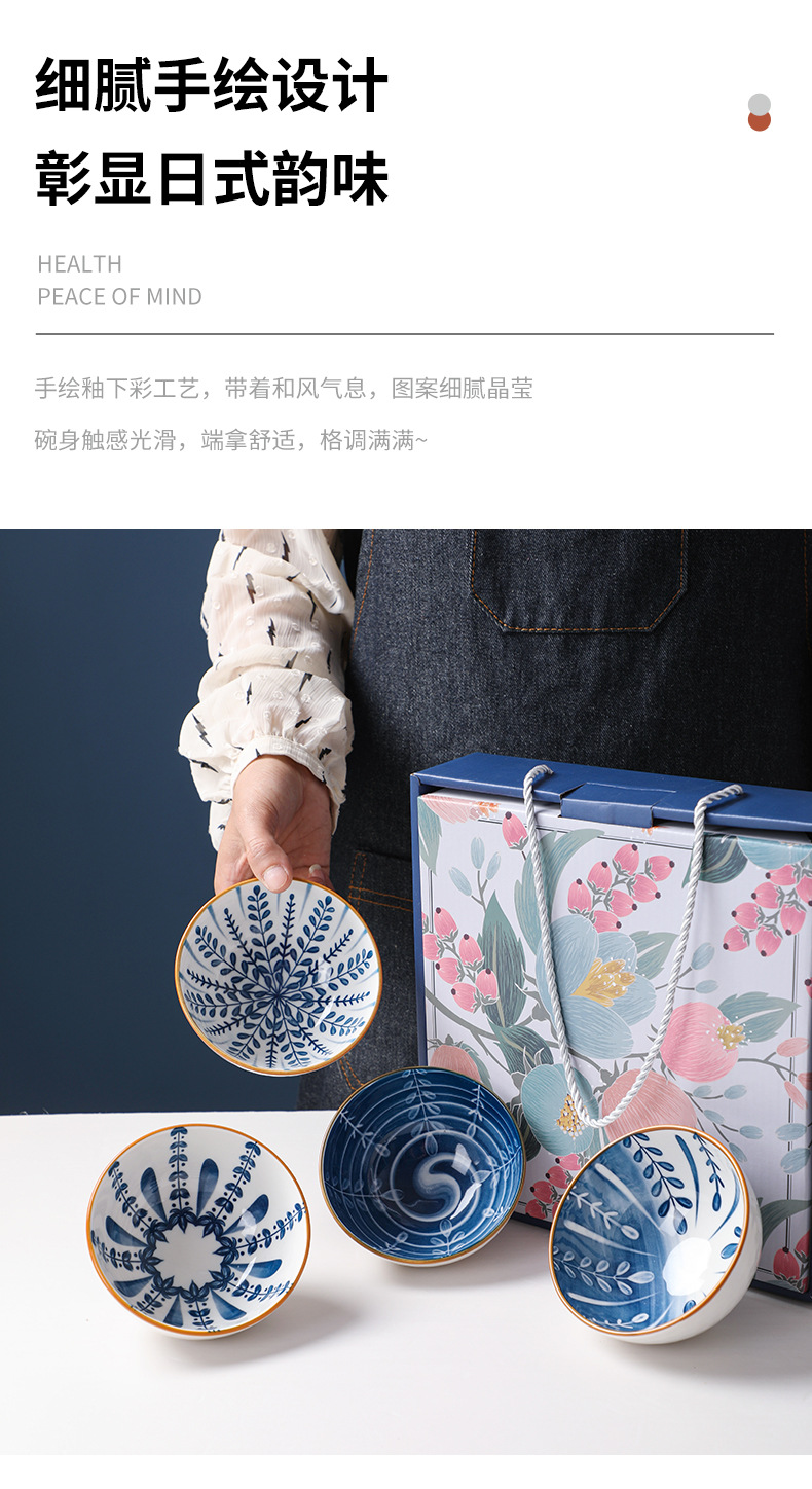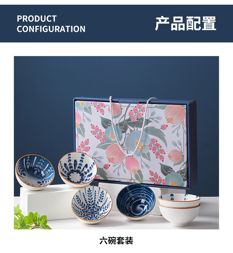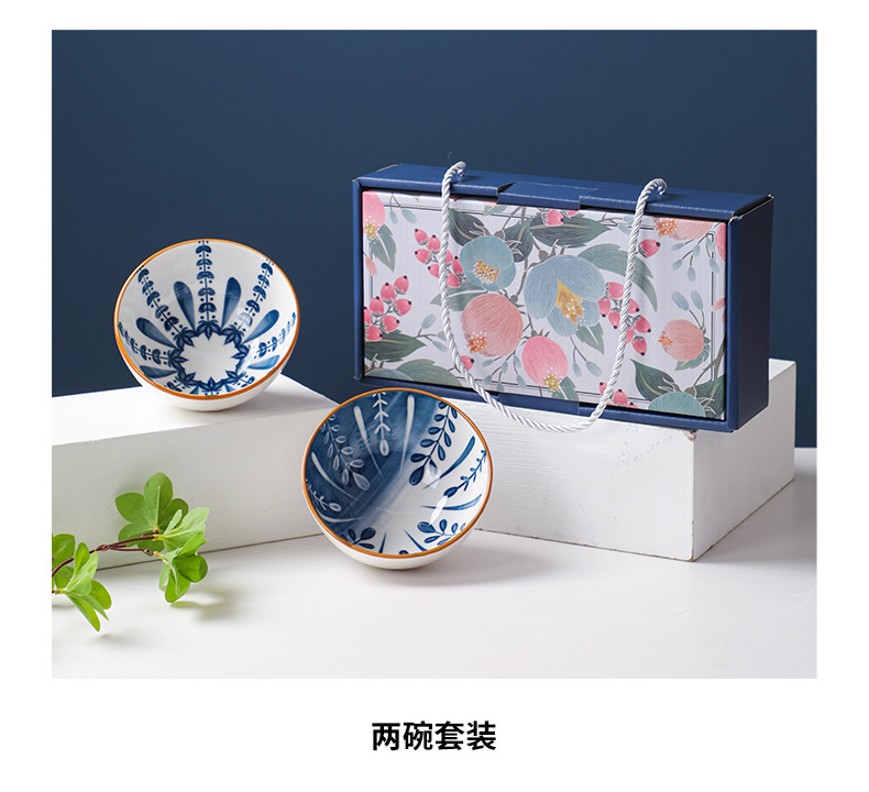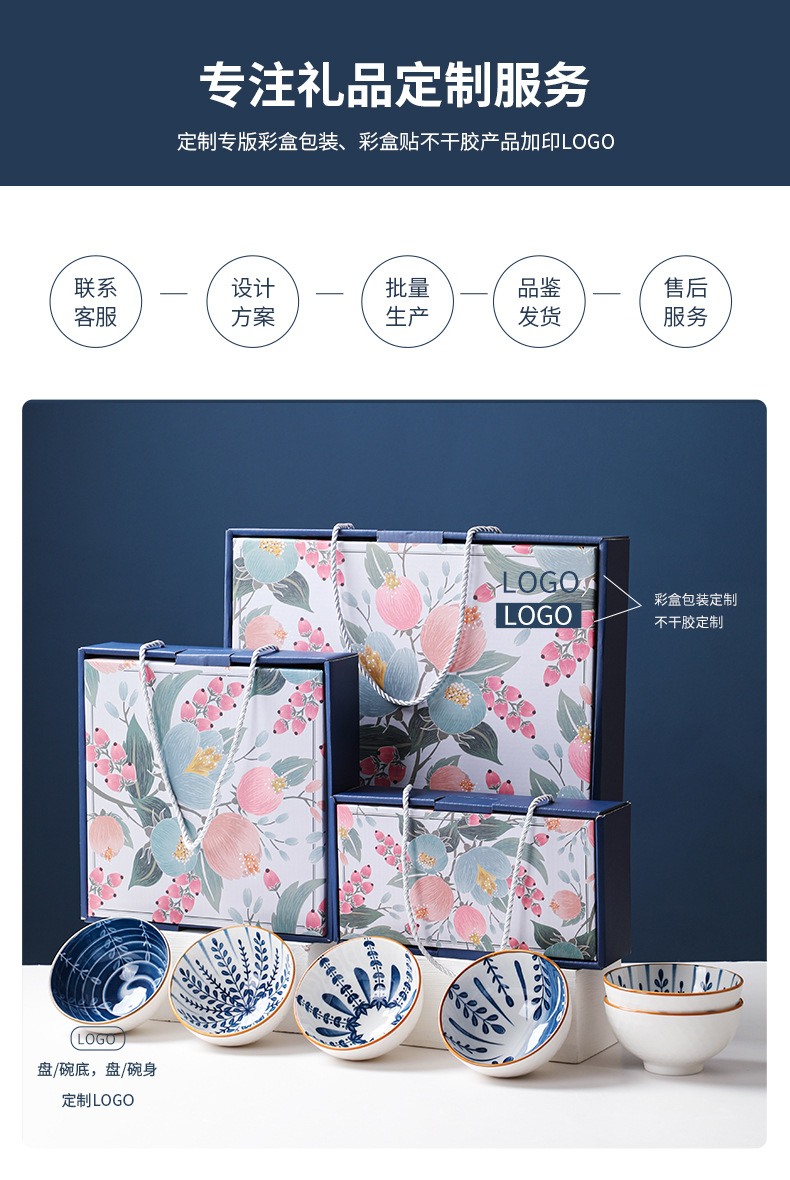 跨境日式陶瓷碗盘餐具套装青花瓷碗保险公司礼品社区团购