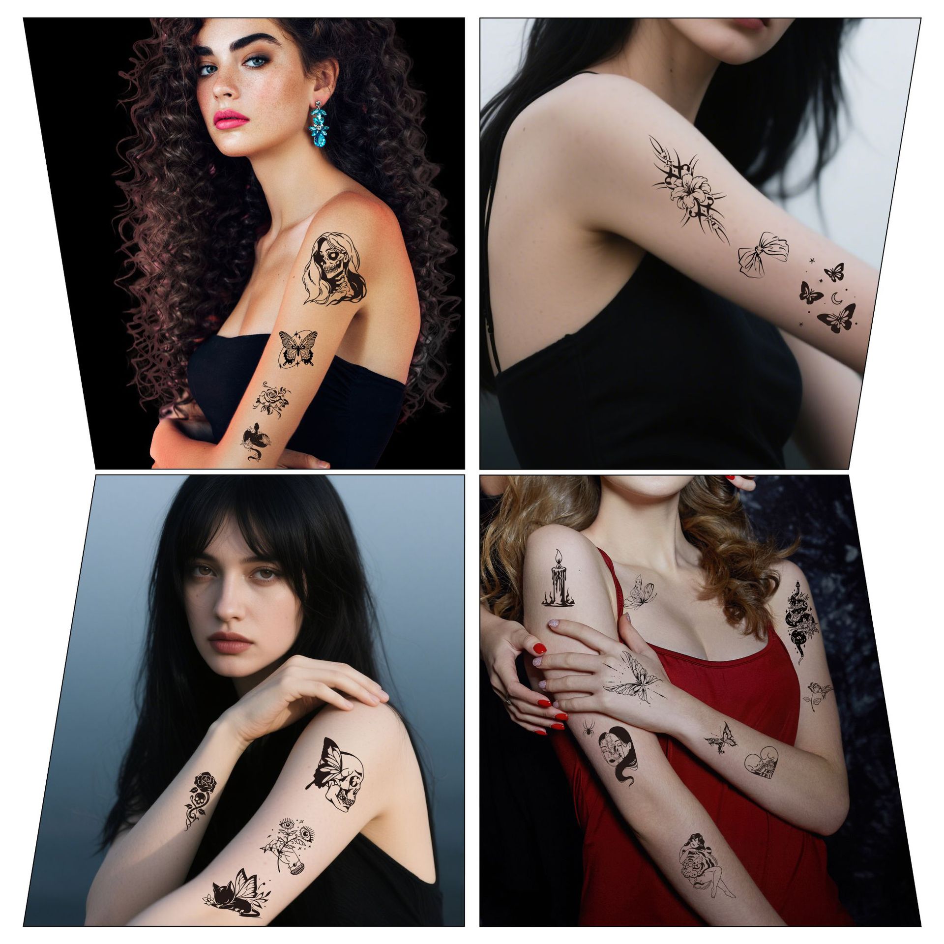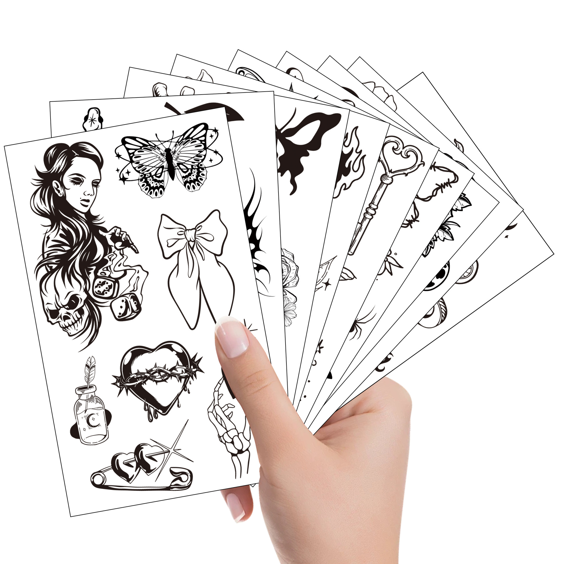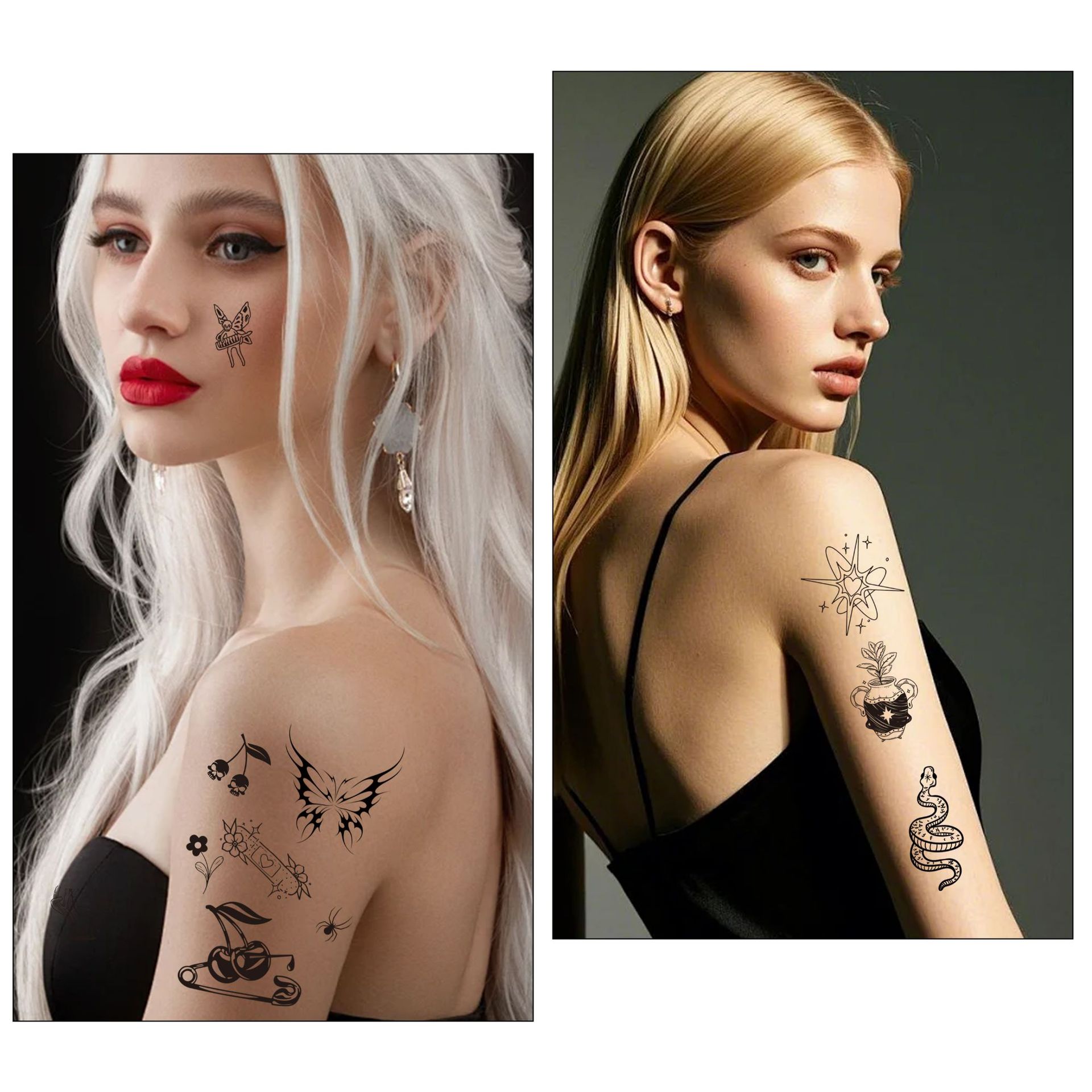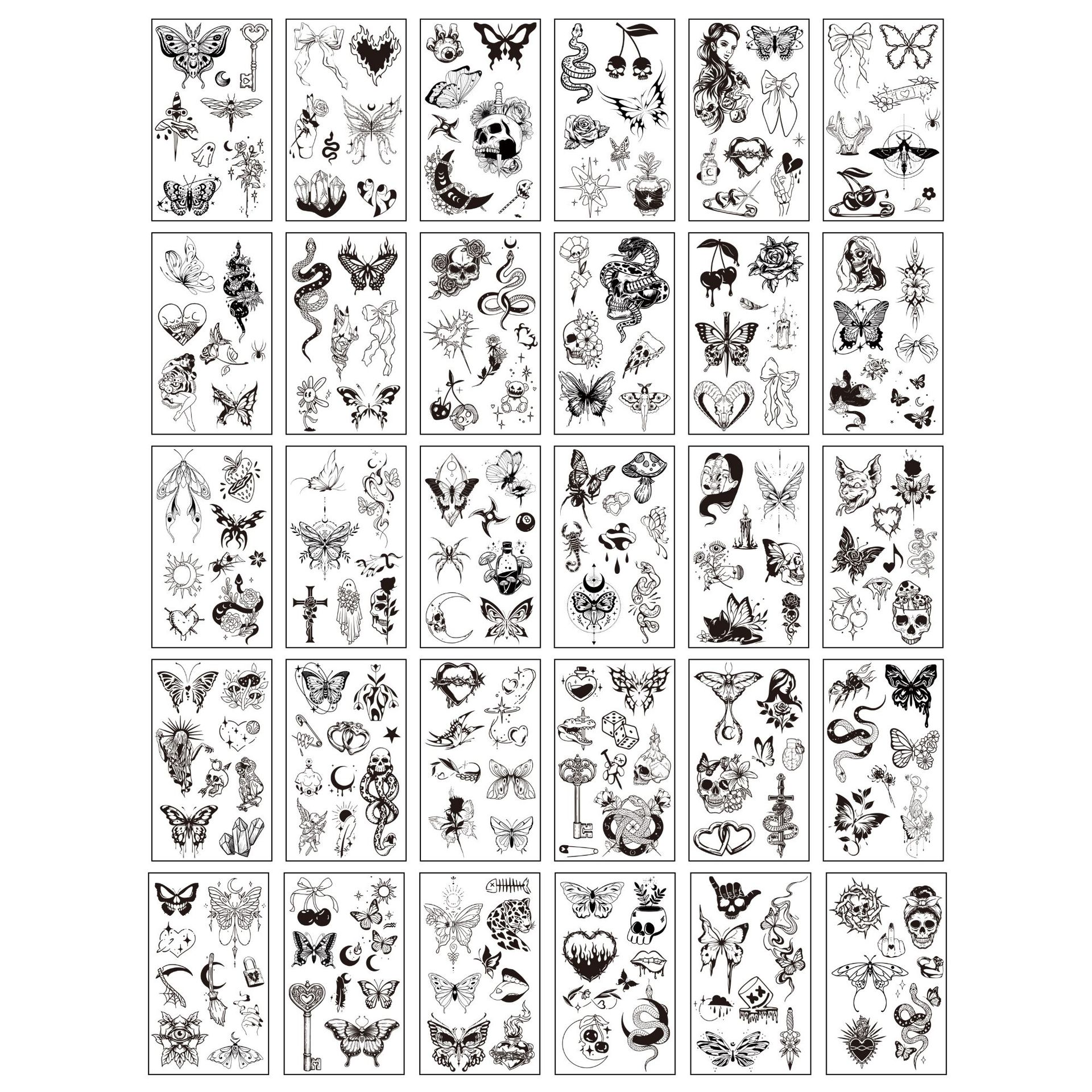 跨境新款小清新纹身贴高级感ins蝴蝶花蛇黑白性感女仿真纹身贴纸