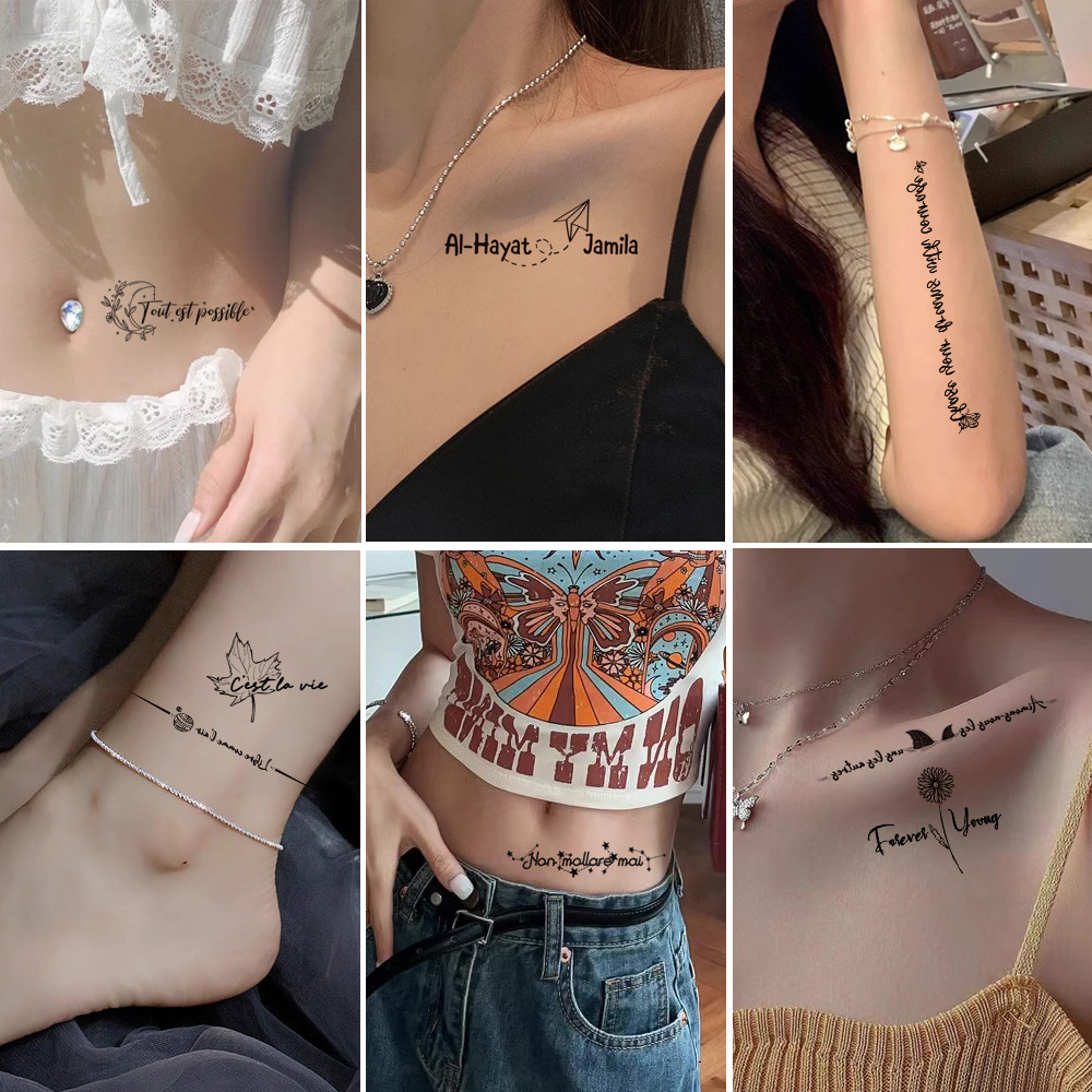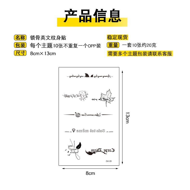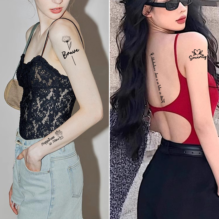 跨境小清新励志英文字母纹身贴高级感ins性感锁骨花臂网红纹身贴