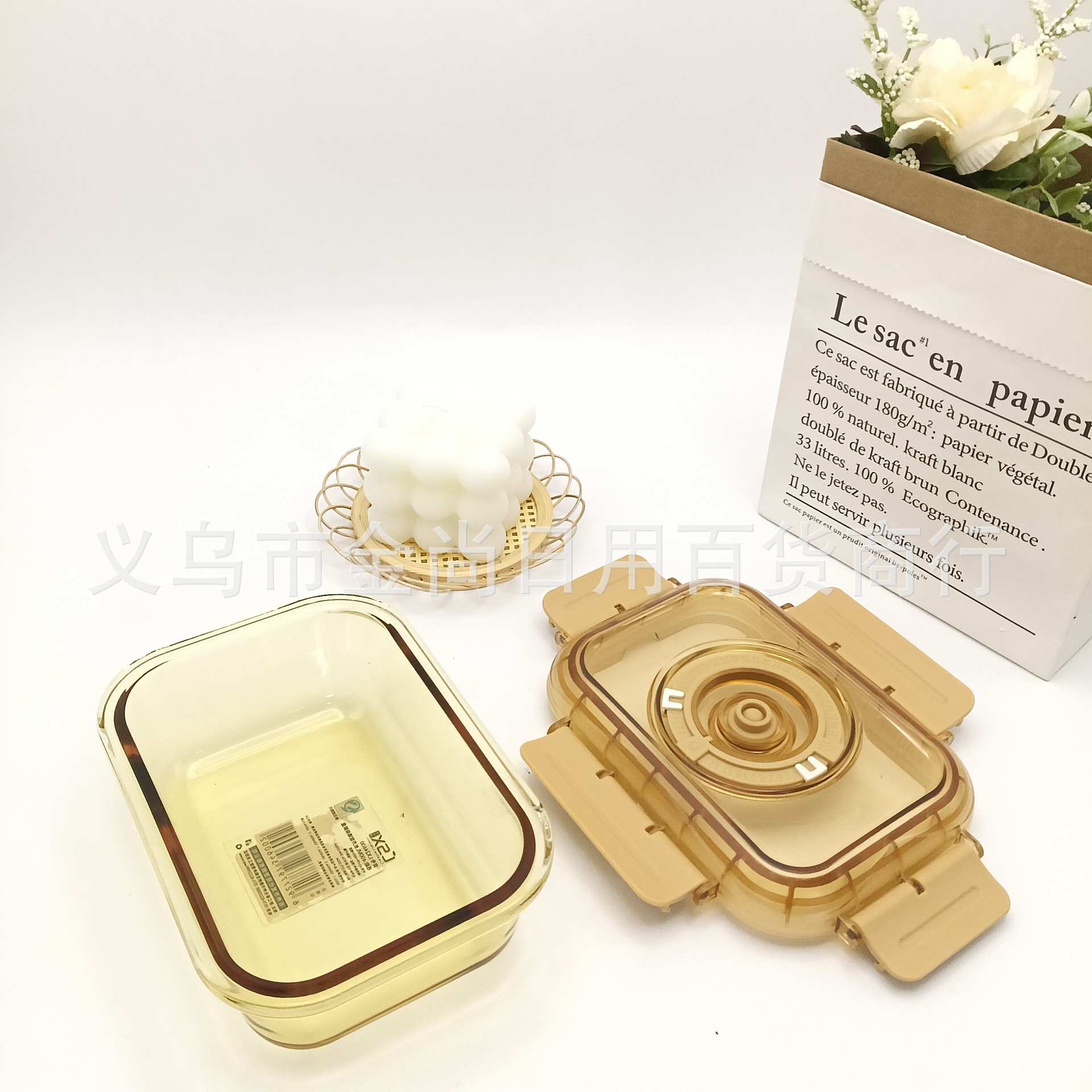 跨境热销茶色冰箱玻璃盒食品级保鲜盒真空收纳盒可微波加热饭盒保