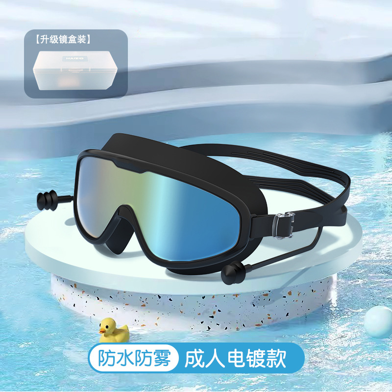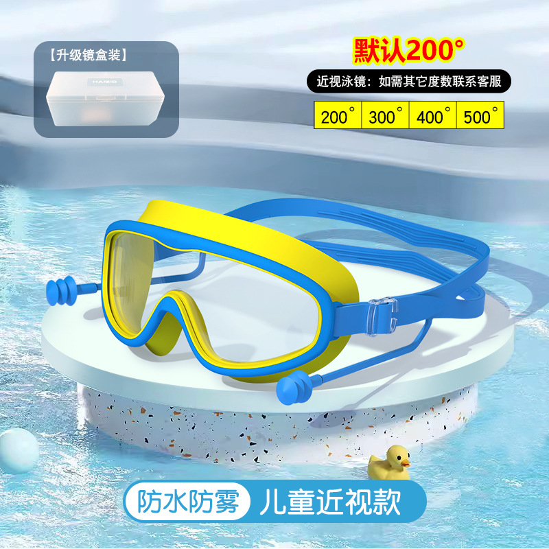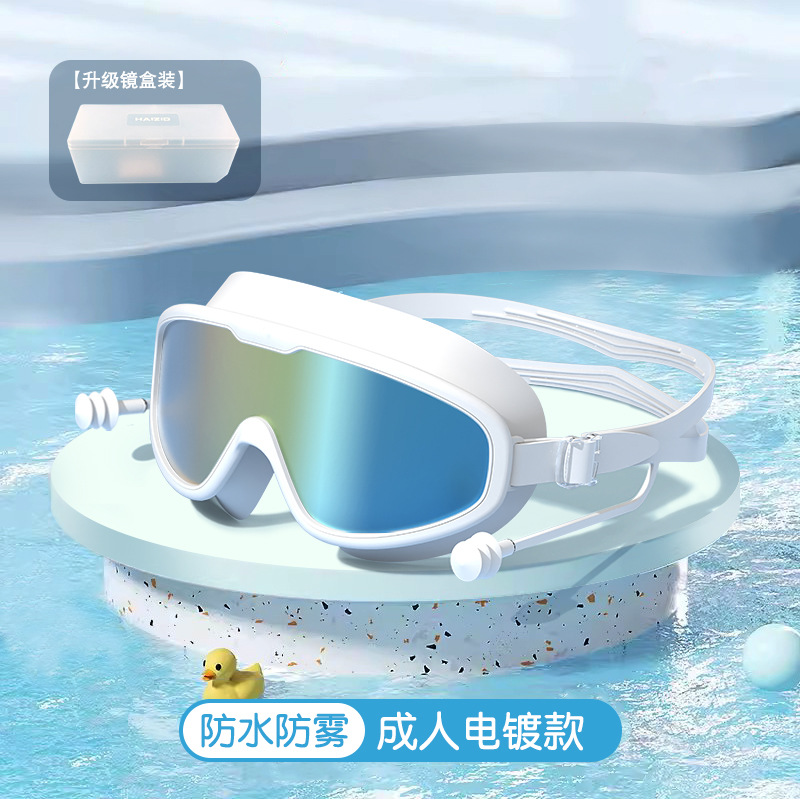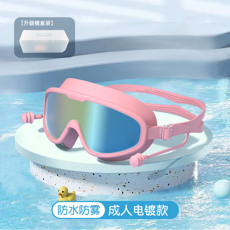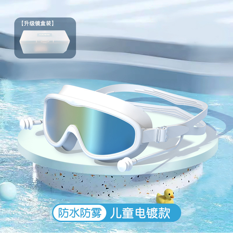 儿童泳镜防水防雾高清透明连体耳塞大框护目镜成人通用游泳镜批发