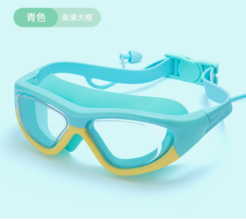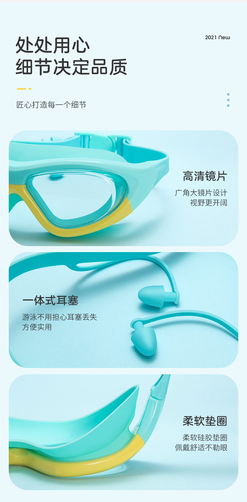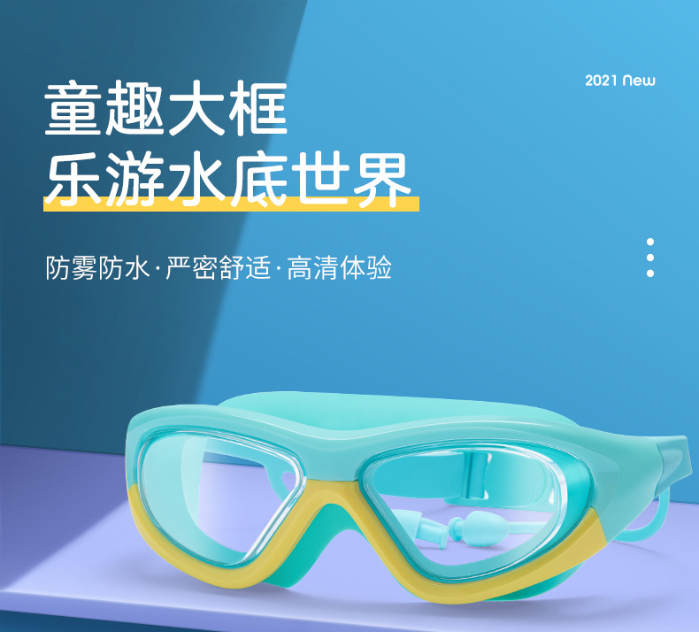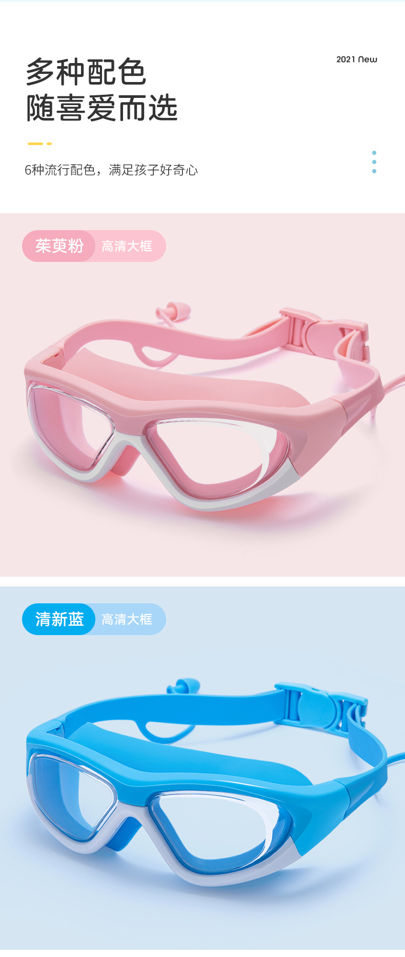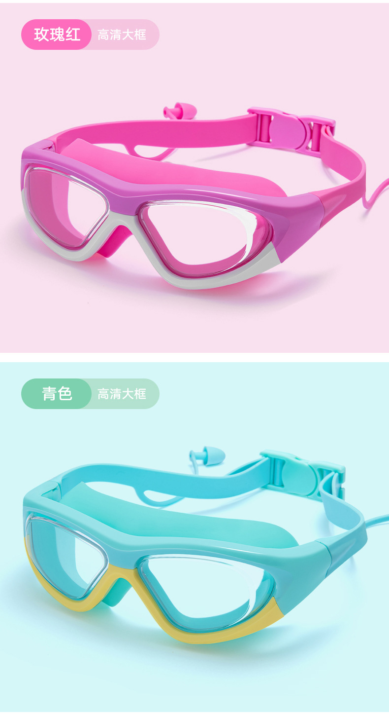儿童泳镜批发防水防雾泳镜儿童大框游泳眼镜硅胶连体耳塞泳镜工厂