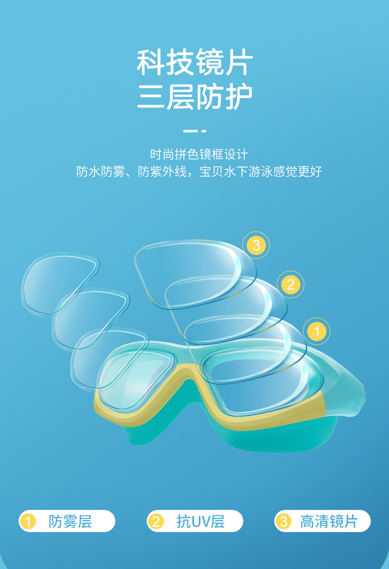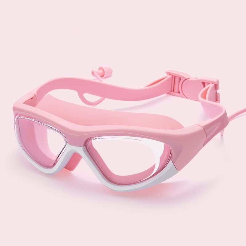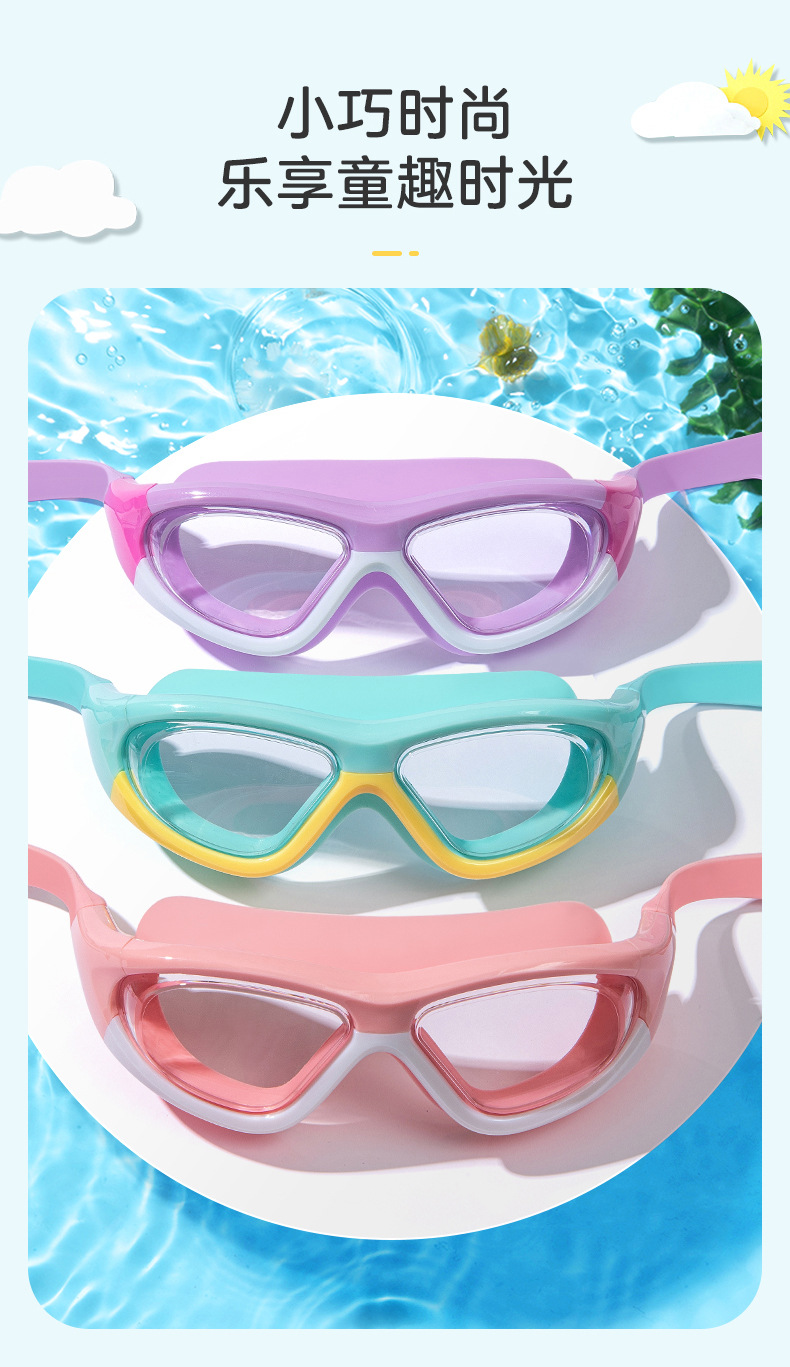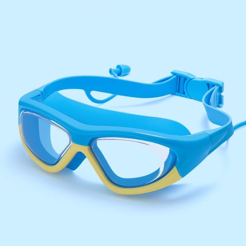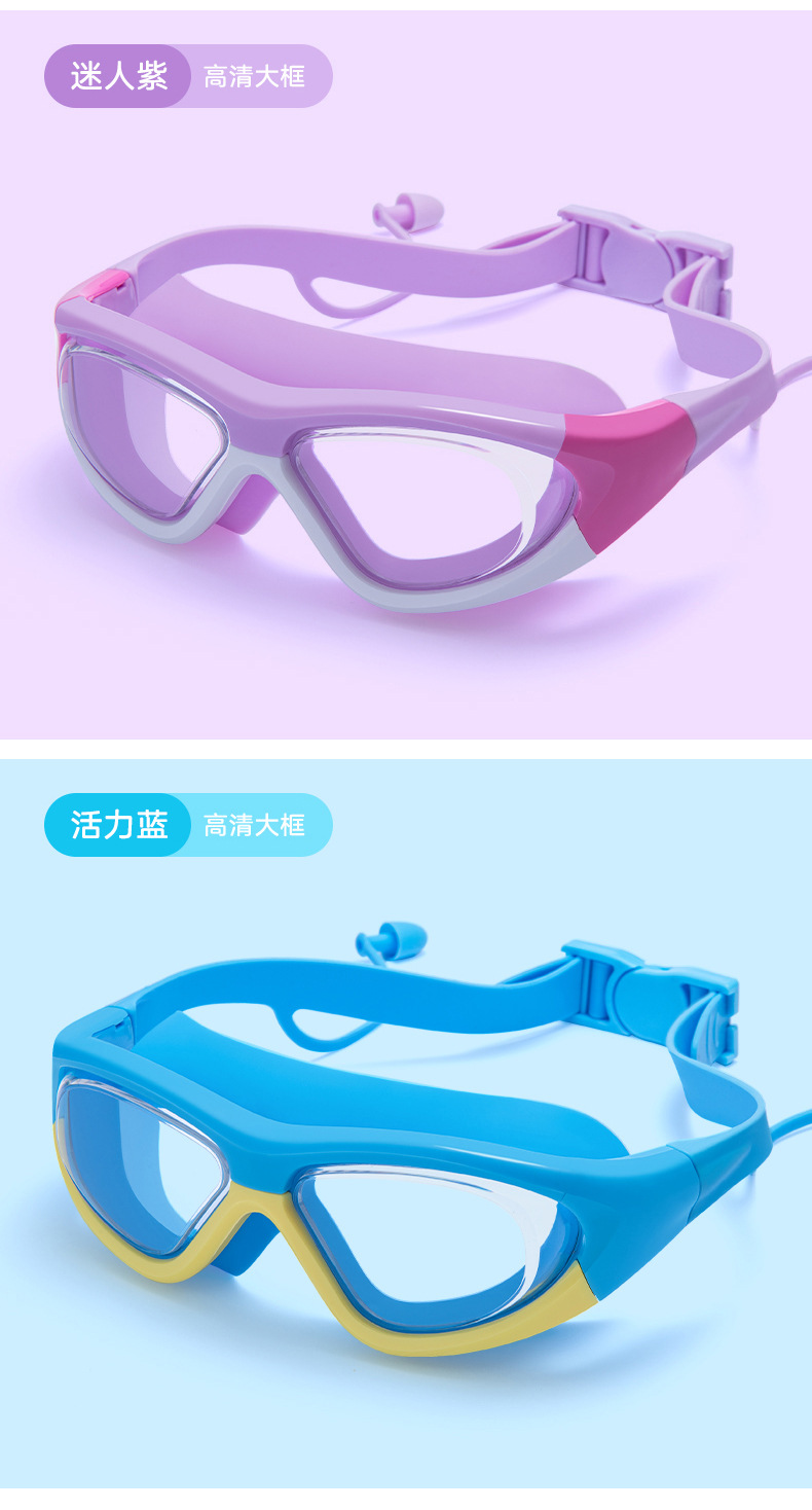 儿童泳镜批发防水防雾泳镜儿童大框游泳眼镜硅胶连体耳塞泳镜工厂