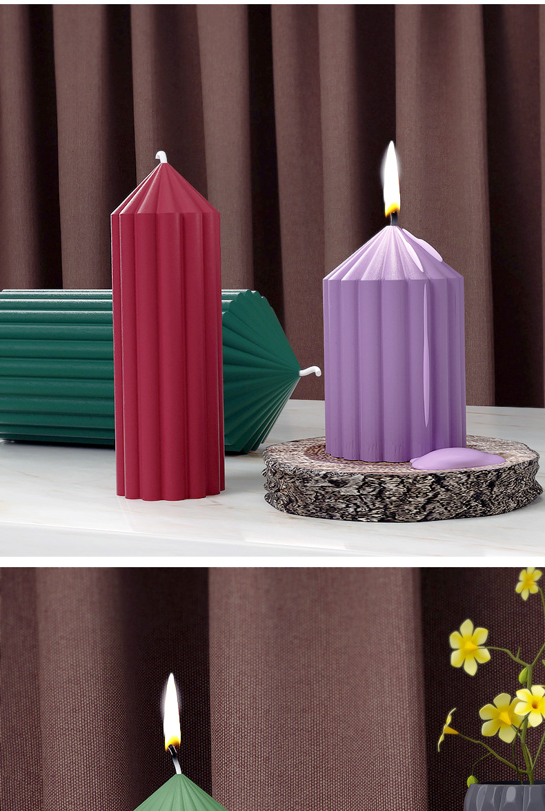 diy水晶滴胶树脂蜡烛磨条纹圆柱形镜面椎体蜡烛摆台饰品硅胶模具
