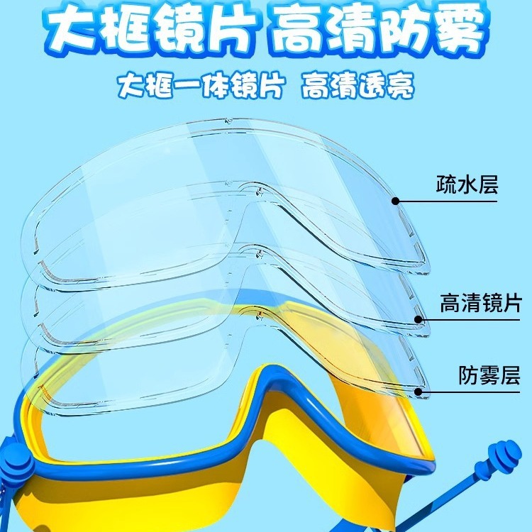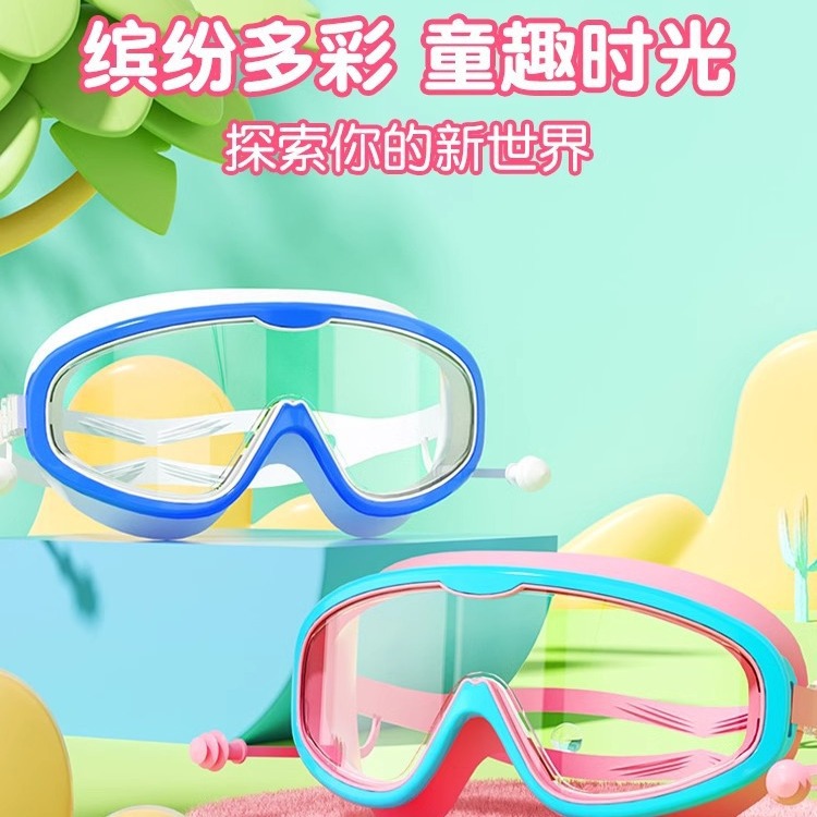 成人大框泳镜防水防雾高清游泳眼镜连体耳塞硅胶儿童游泳镜批发