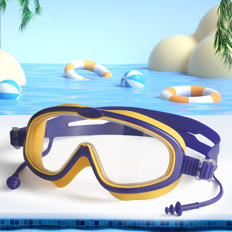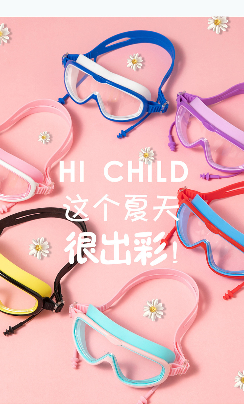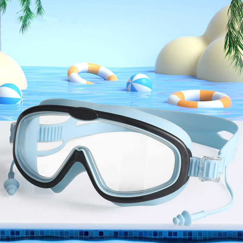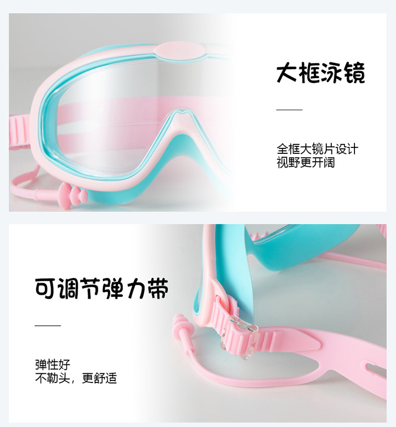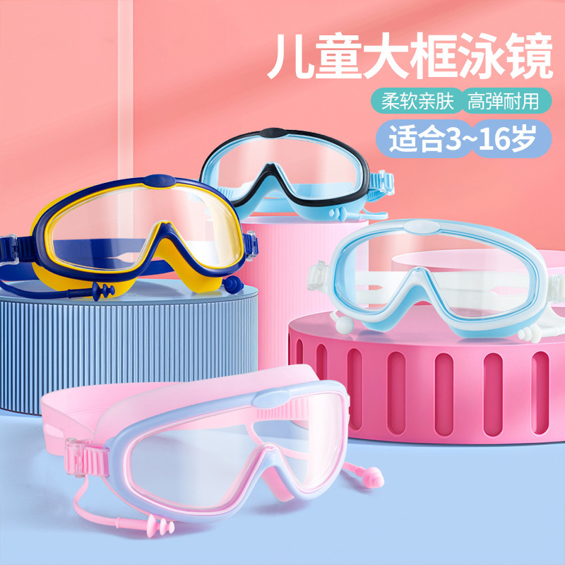 大框泳镜防水防雾高清游泳眼镜带耳塞儿童游泳镜成人外贸定作代发