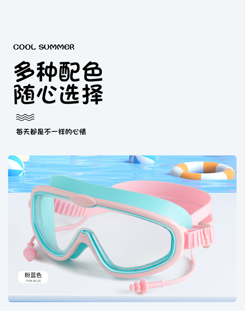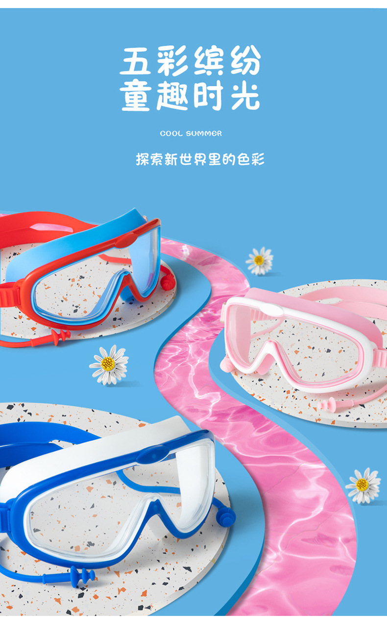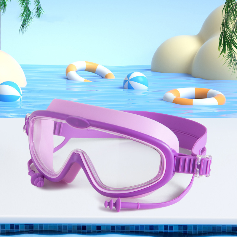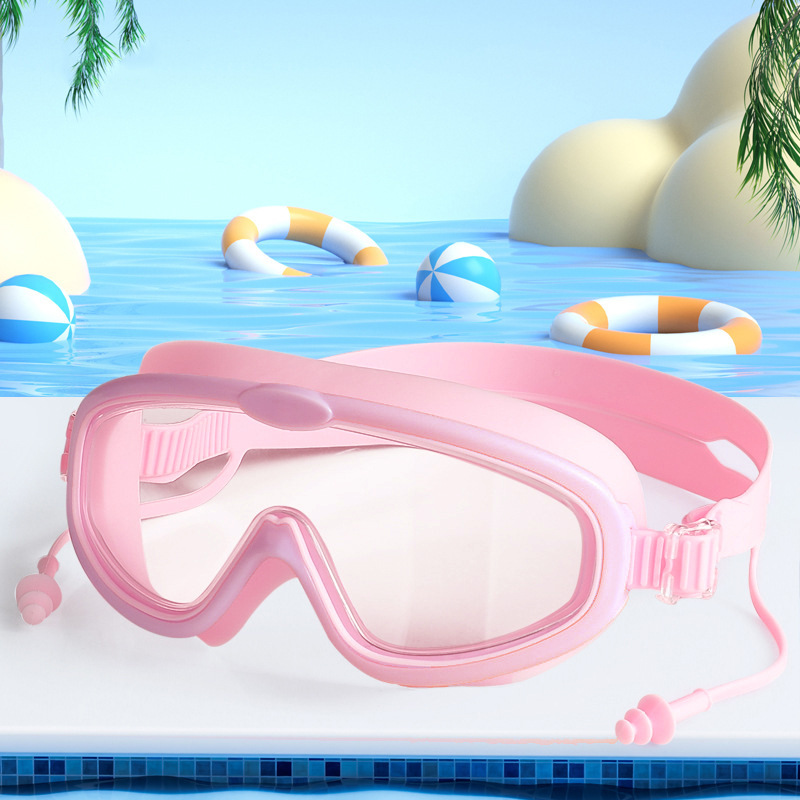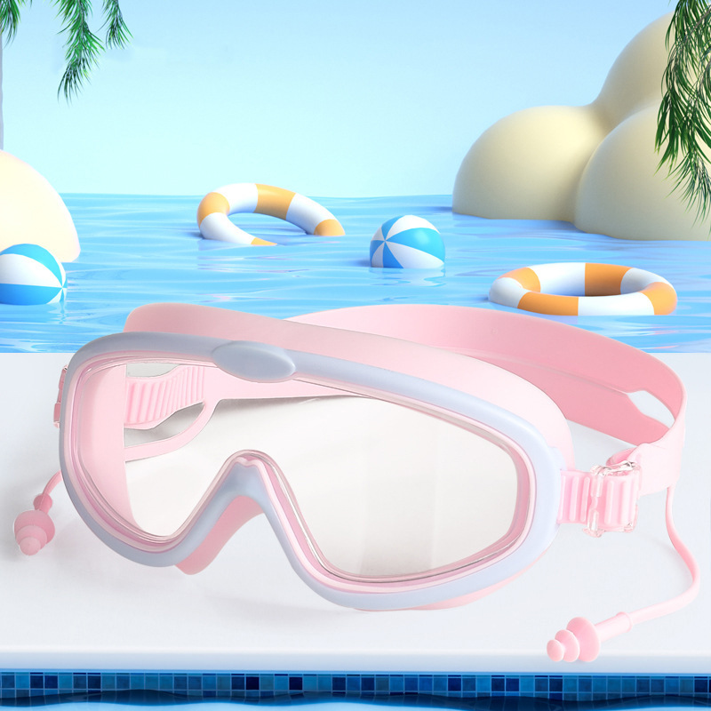大框泳镜防水防雾高清游泳眼镜带耳塞儿童游泳镜成人外贸定作代发