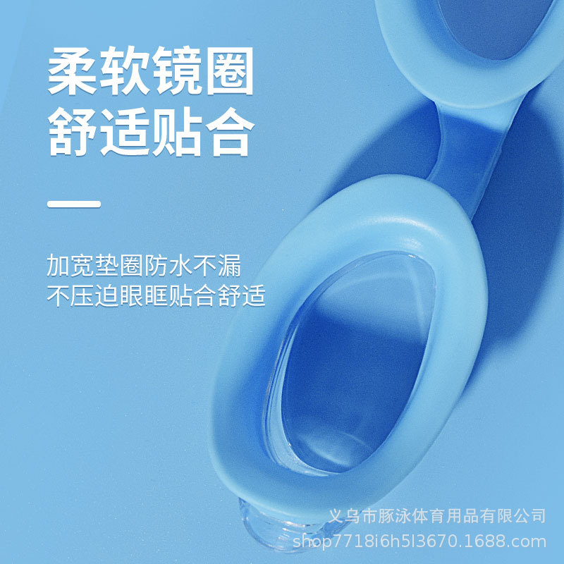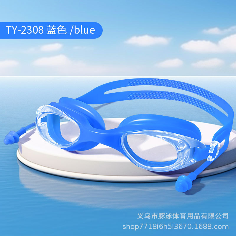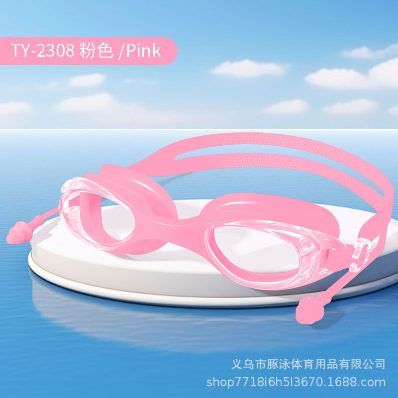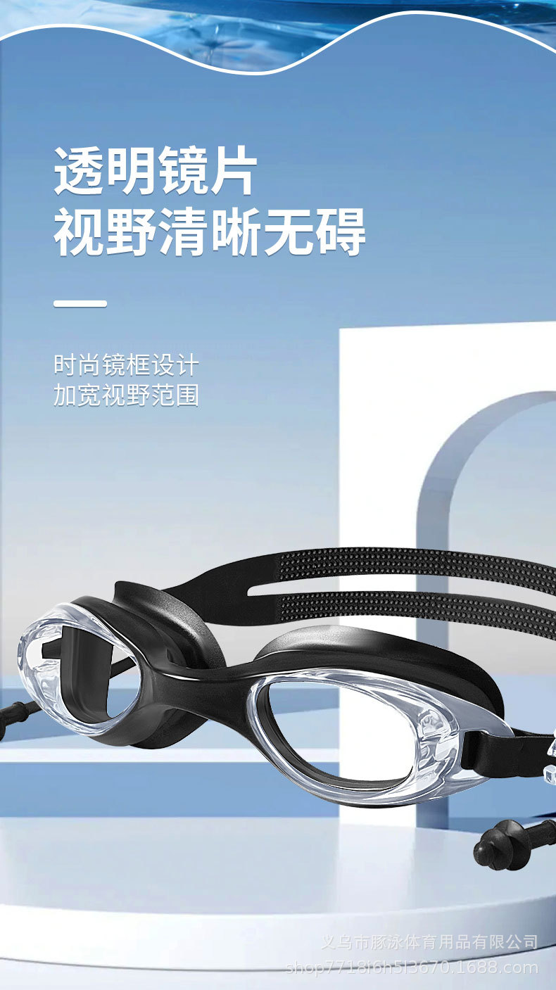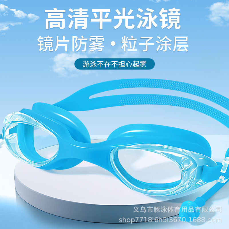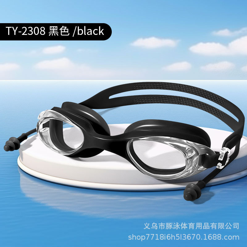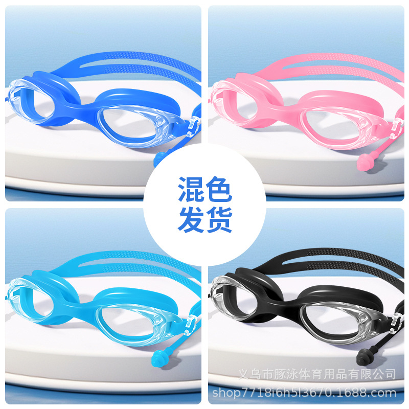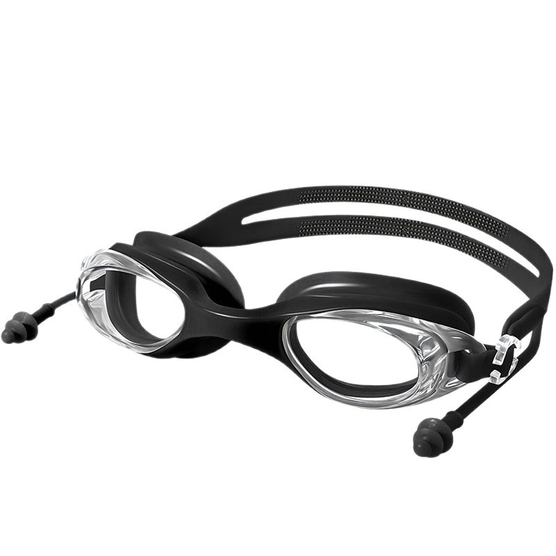 儿童泳镜高清平光游泳镜男女通用一体式耳塞防水盒装黑色护目镜