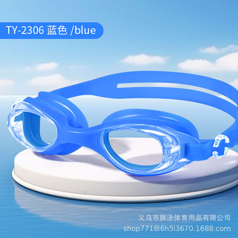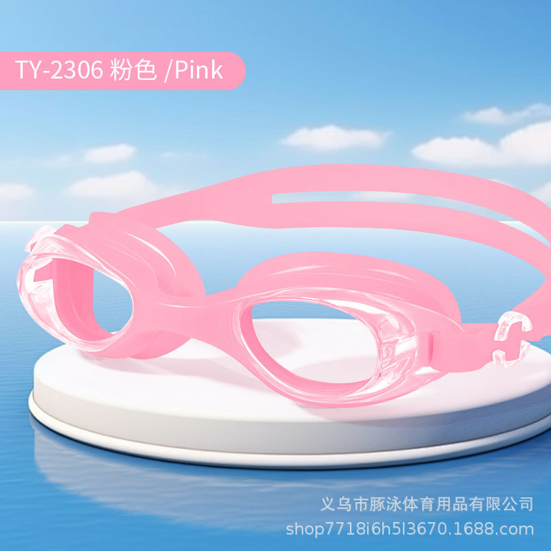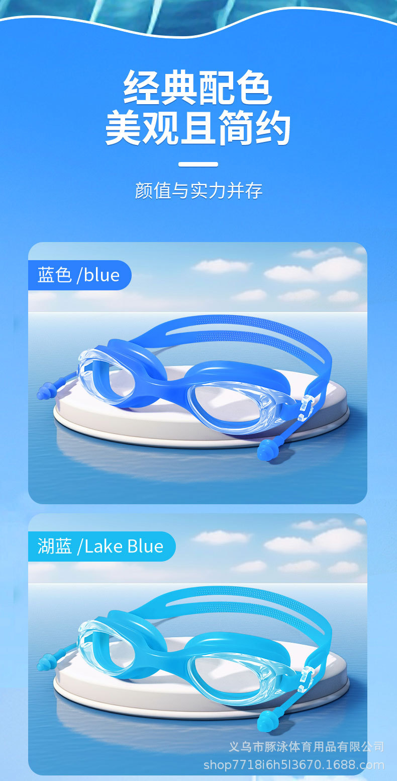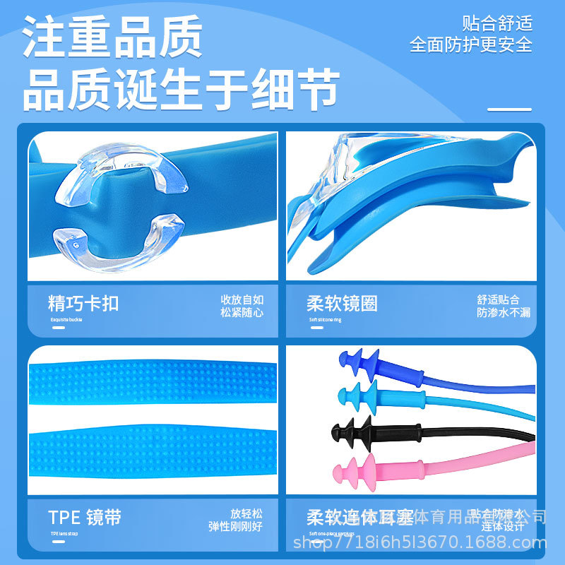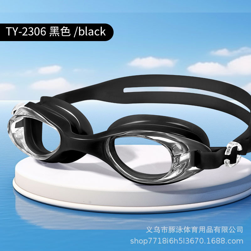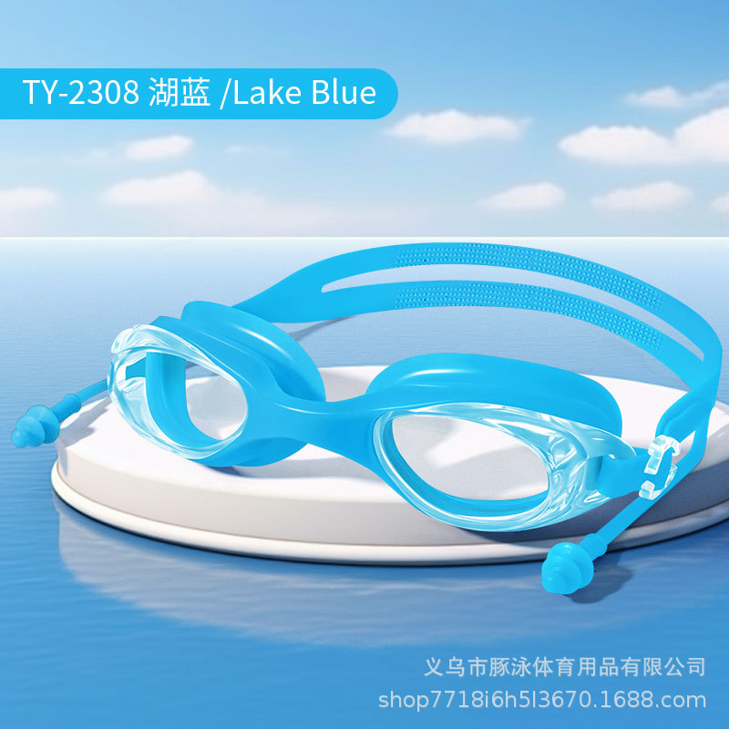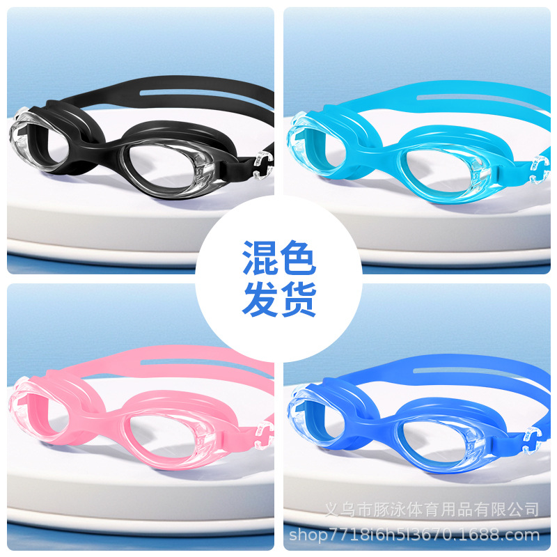 儿童泳镜高清平光游泳镜男女通用一体式耳塞防水盒装黑色护目镜