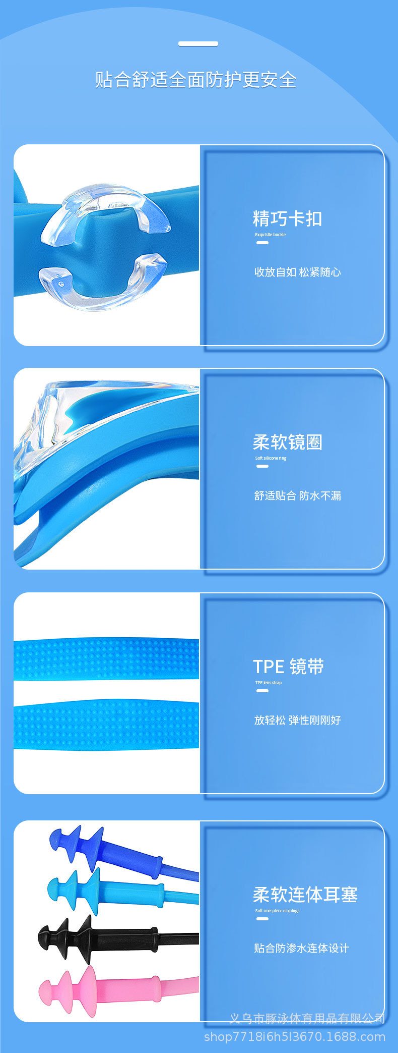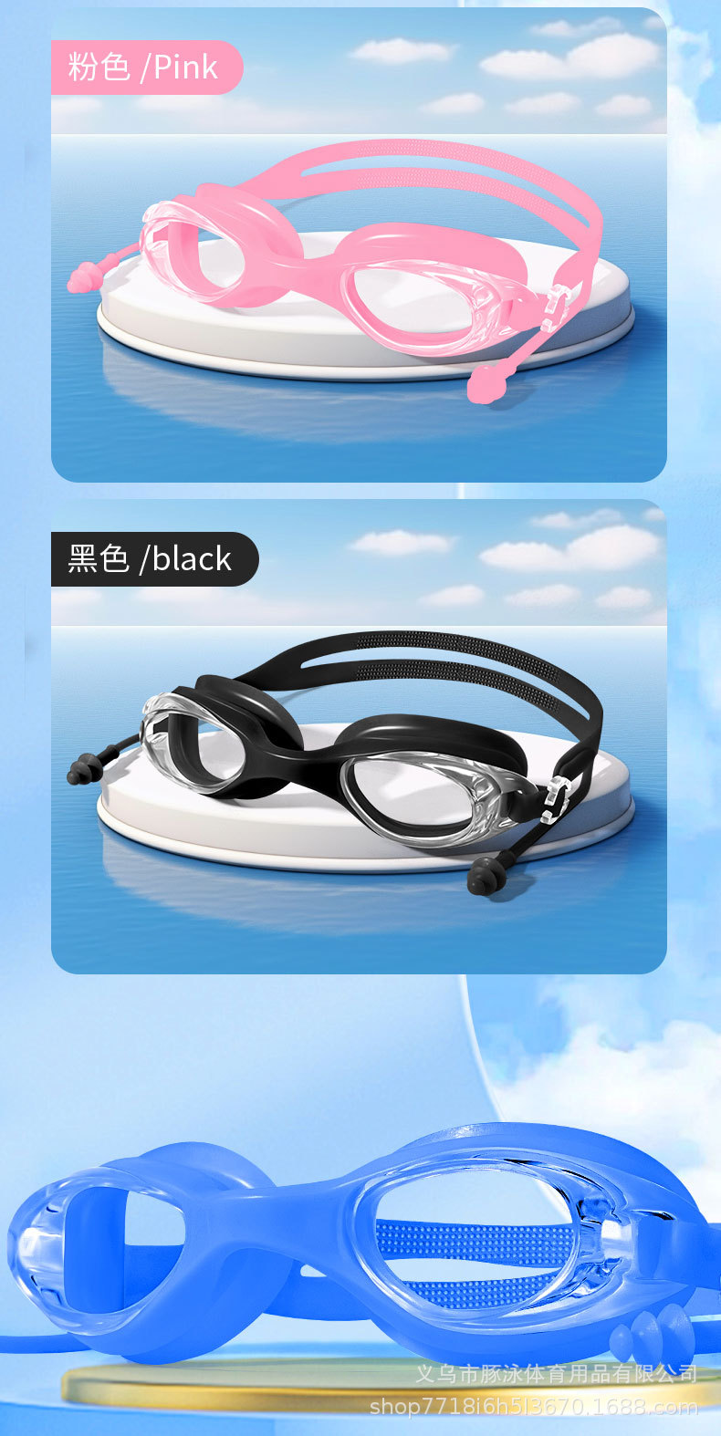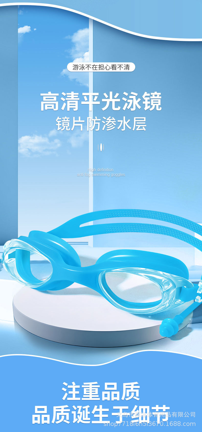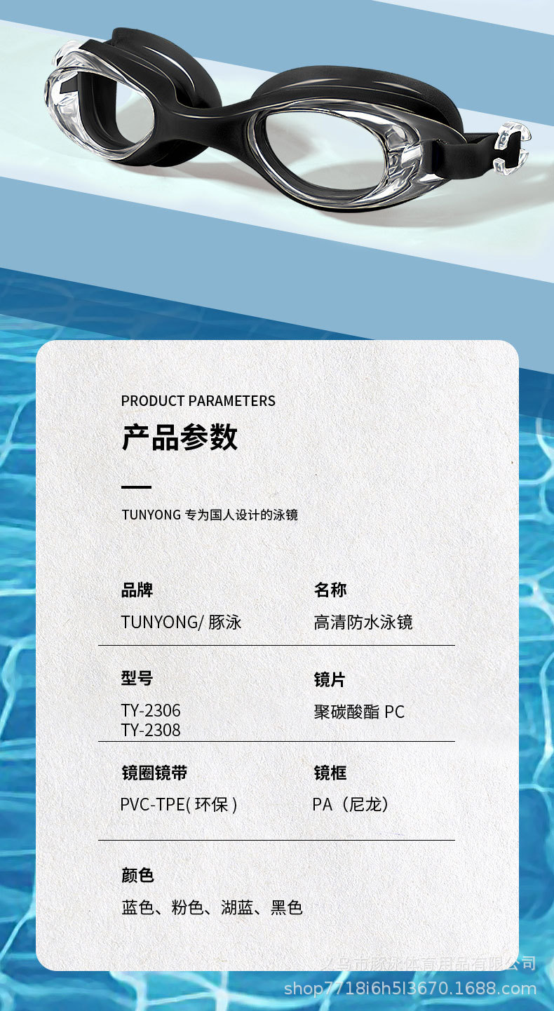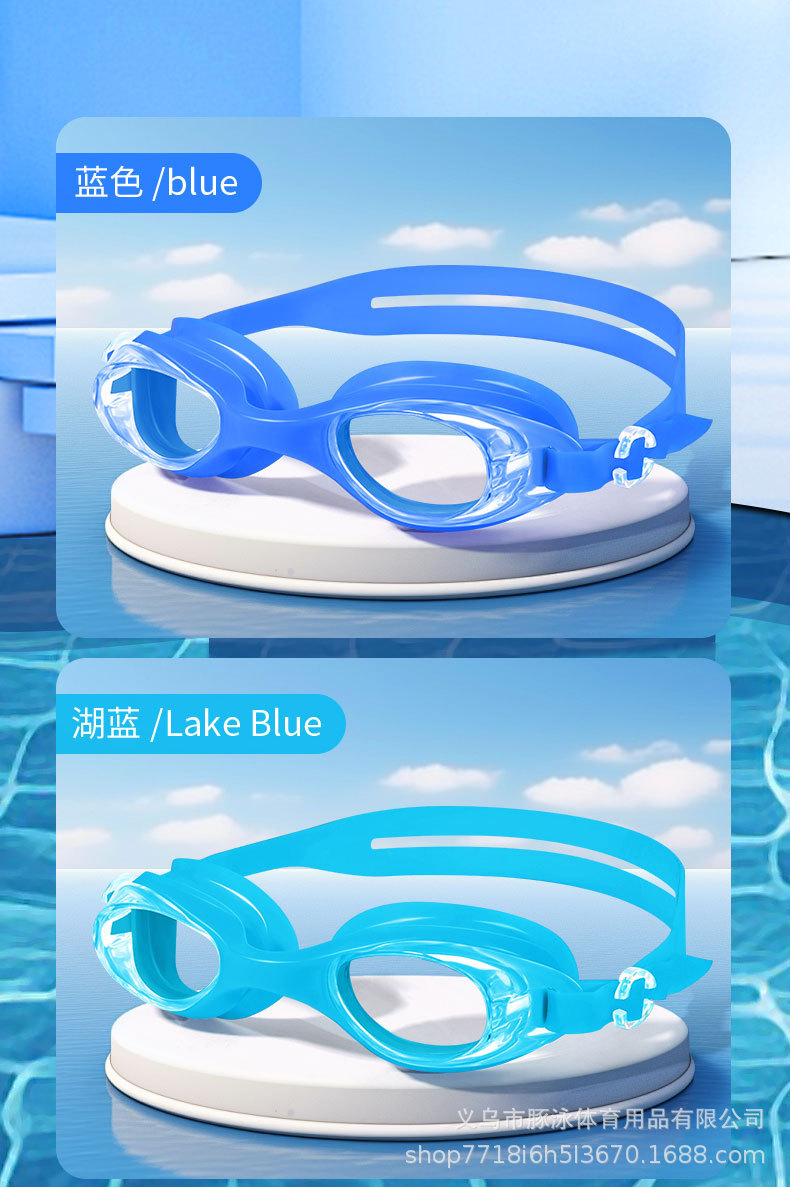 儿童泳镜高清平光游泳镜男女通用一体式耳塞防水盒装黑色护目镜