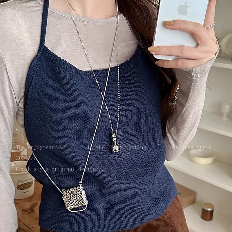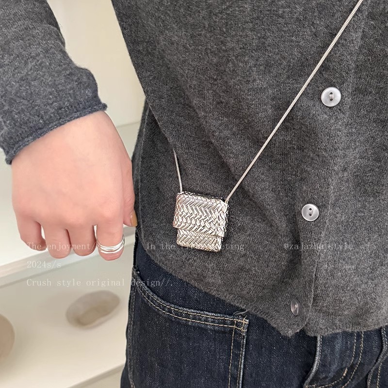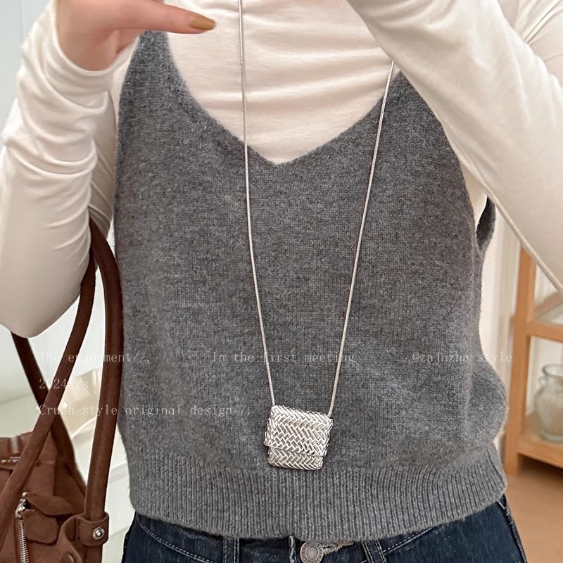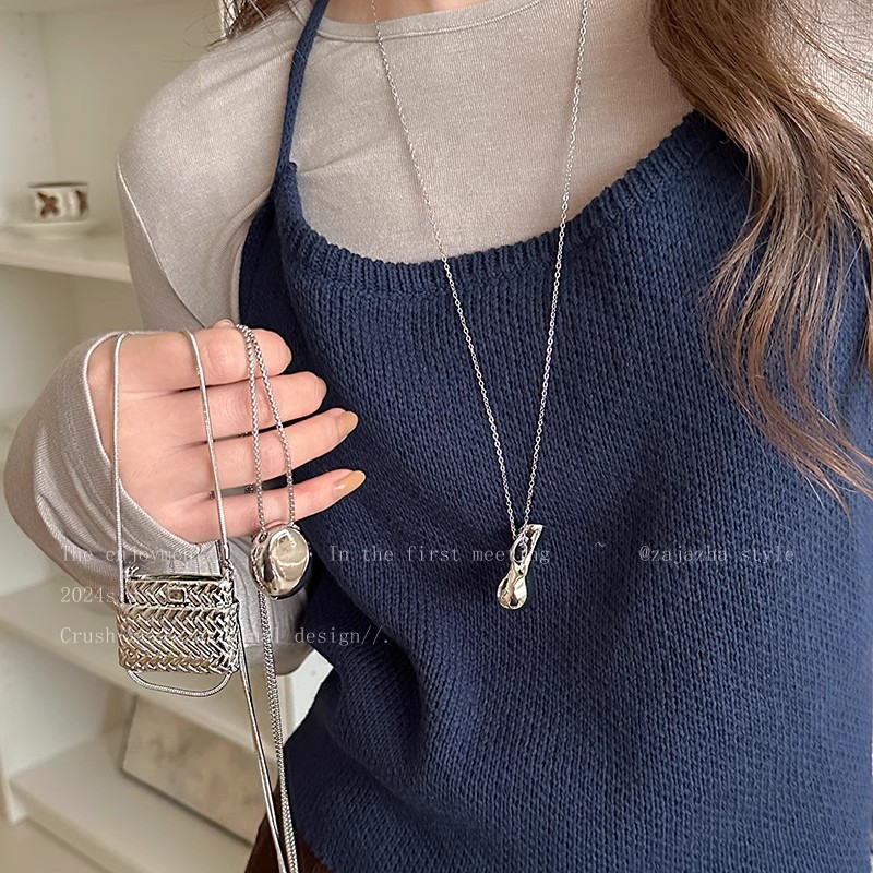金属冷淡风包包吊坠项链时尚气质长款毛衣链秋冬小众高级感项饰女