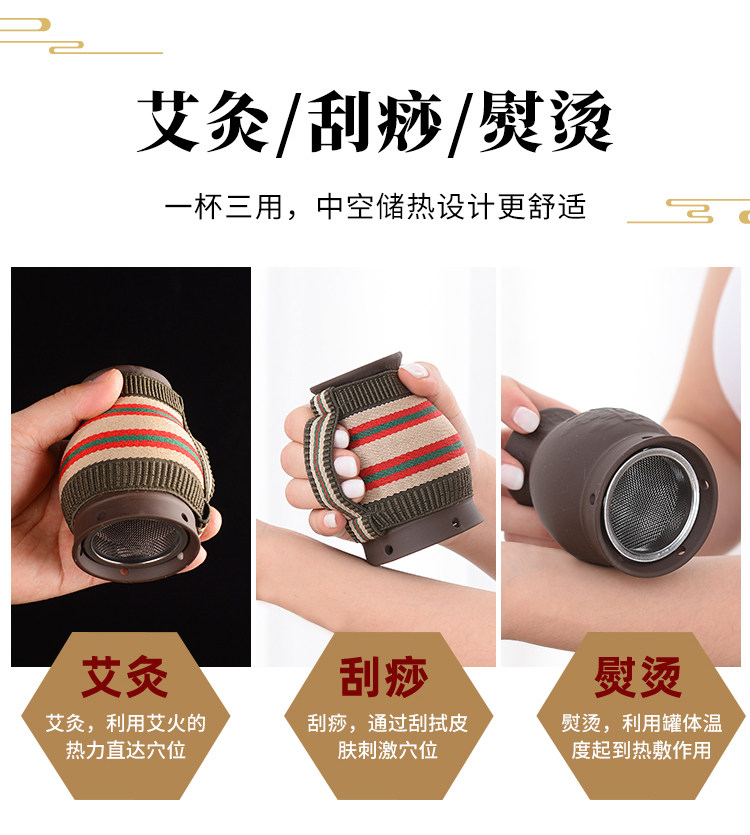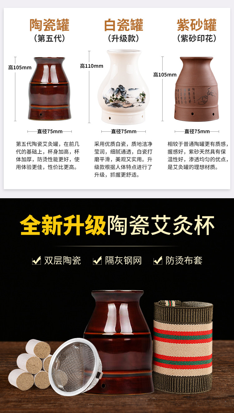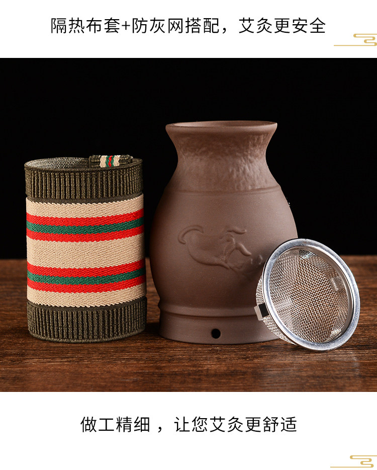 艾灸罐陶瓷盒随身灸家用刮痧杯中医馆工具仪紫砂无烟柱筒艾炙器具