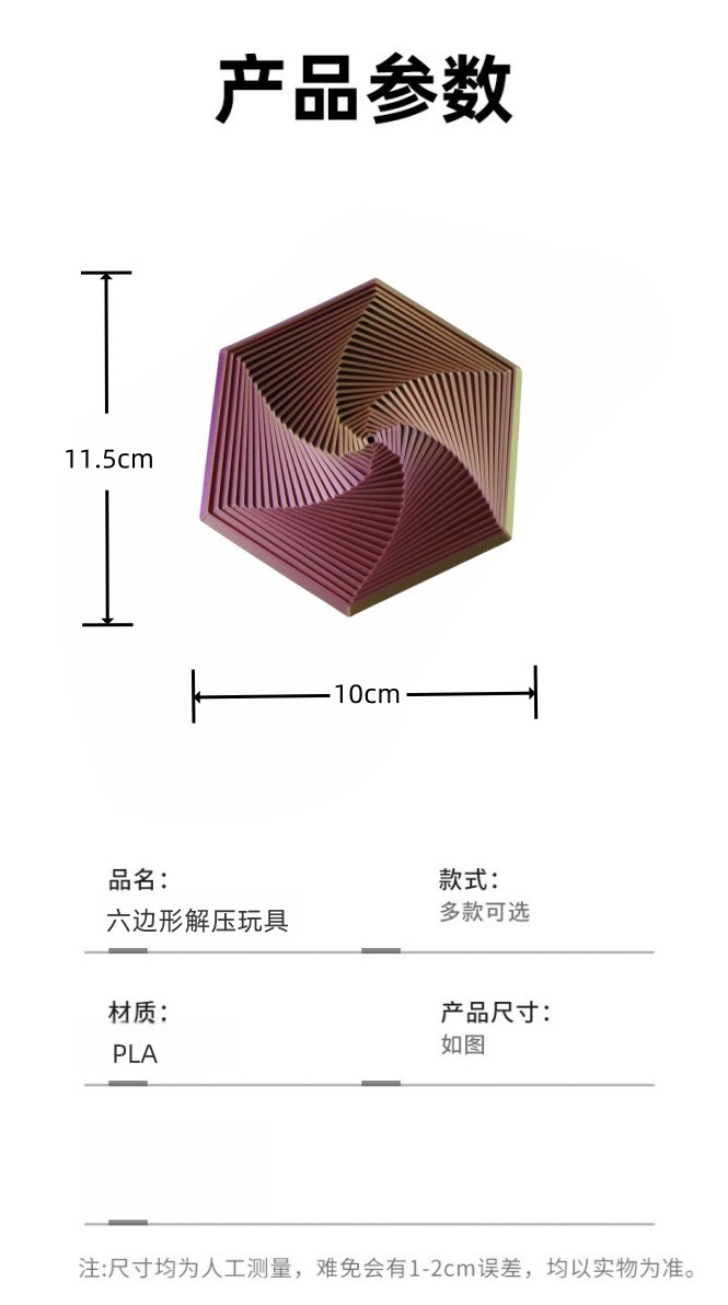 跨境3D打印六边形解压神器萝卜塔Fractal Fidget Hexagon创意潮玩