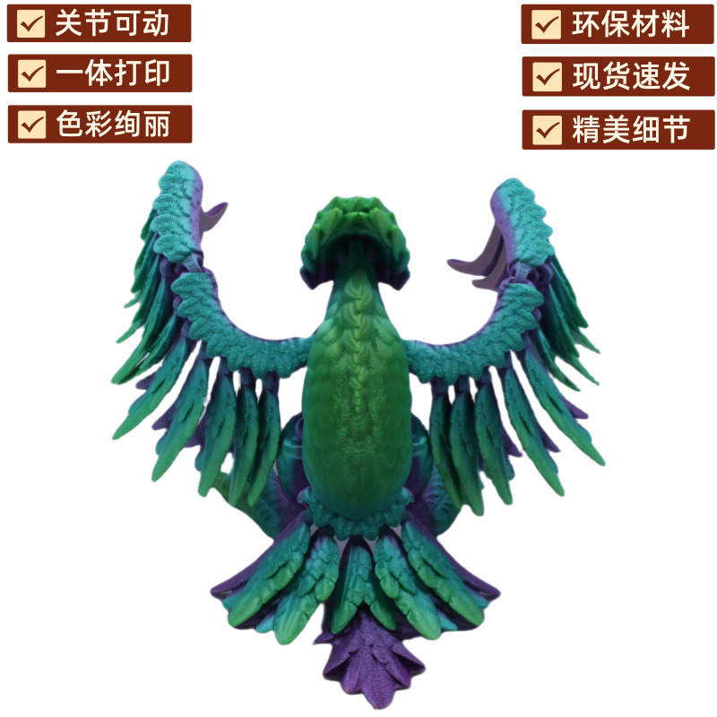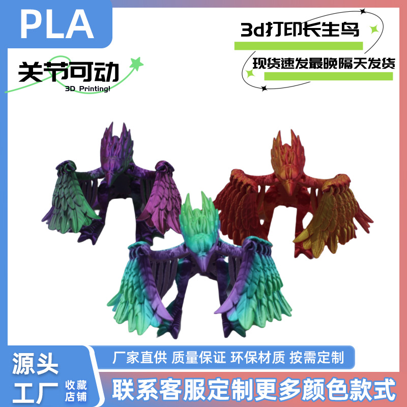 外贸跨境3D长生鸟凤凰可活动关节动物仿真摆件玩具礼品创意模型