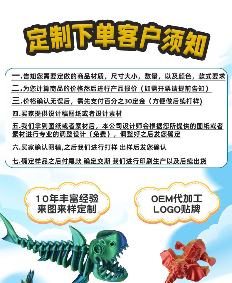 3d打印产品产能不高,会备少量现货,急单大单联系客服确定交货时间。爆款有时间限制,产品一经发货不接受退货,不接受因为产品滞销,链接被下架,没有通过审核发不了海外仓等任何原因退款退货,敬请悉知!