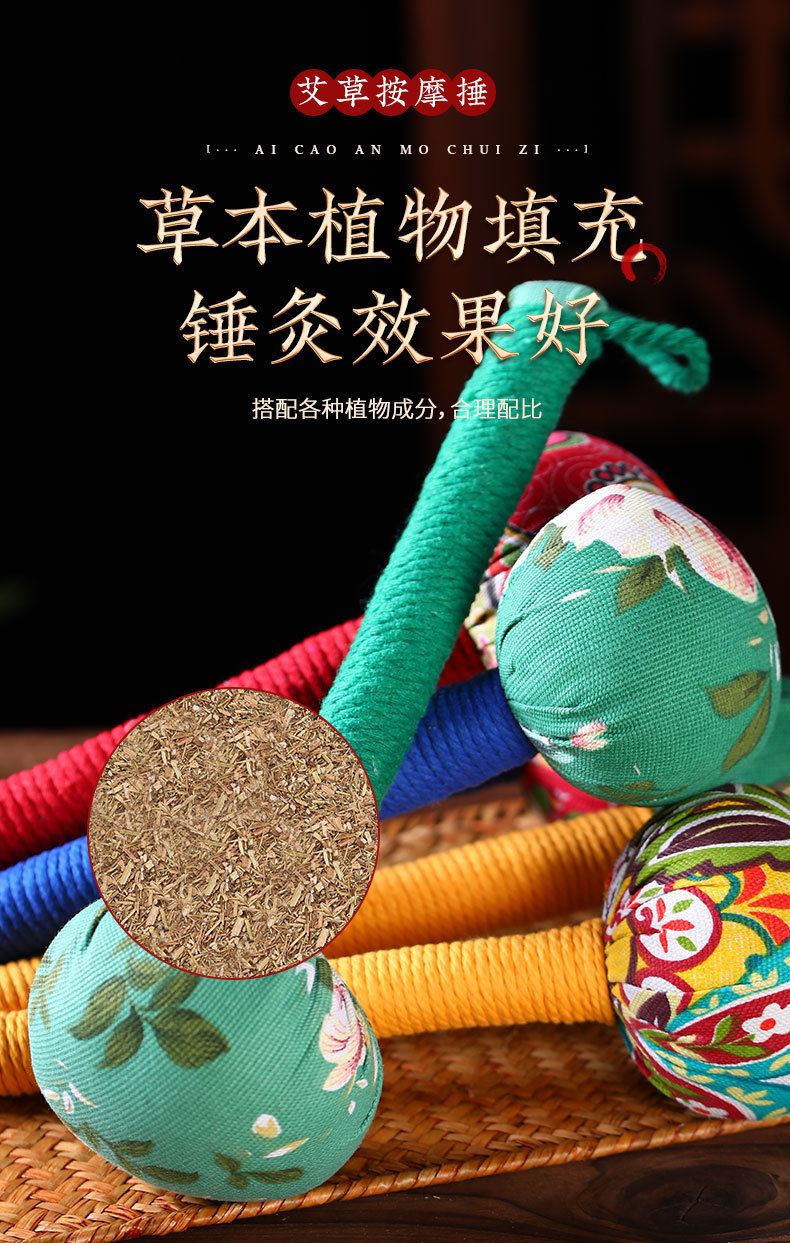 艾草锤五子经络按摩锤手持敲打背部决明子艾灸棒家用弹力养生锤